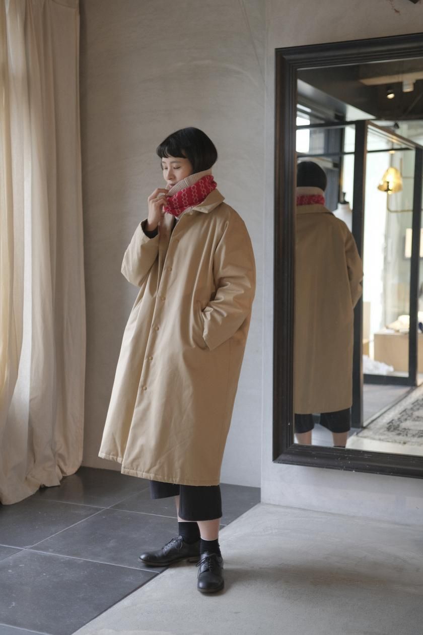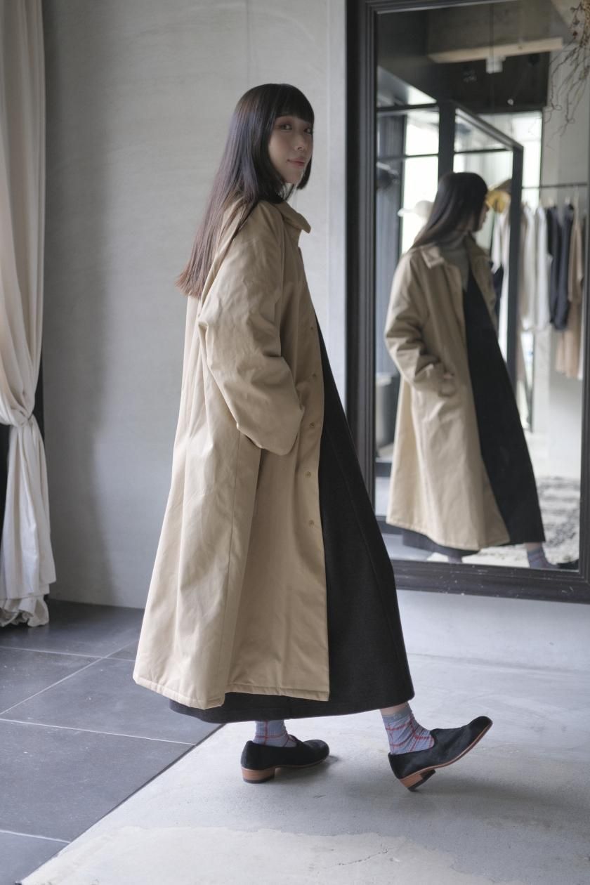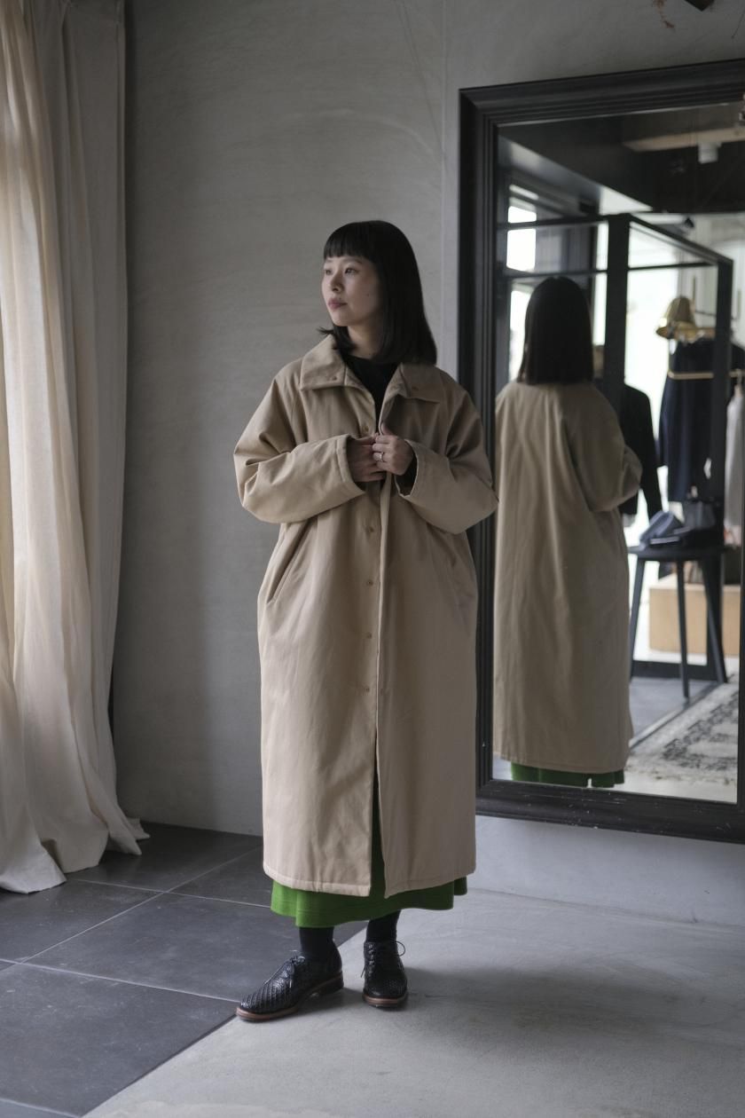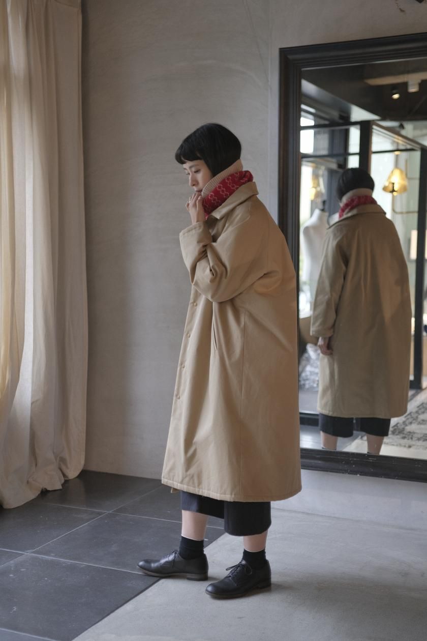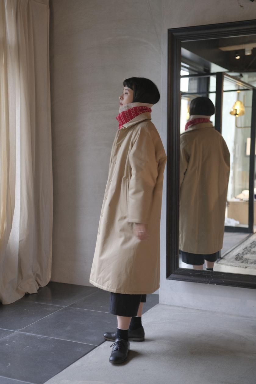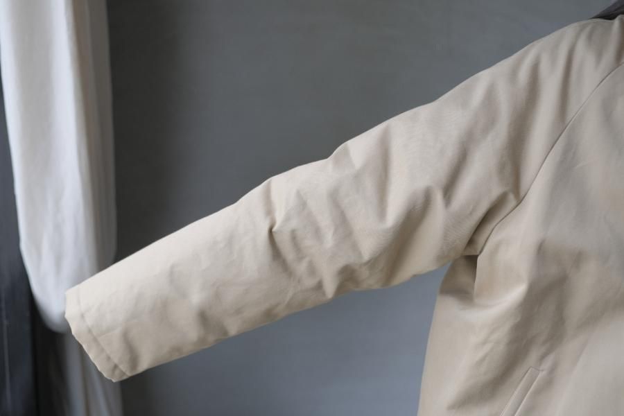 、表地を撥水加工が施された肉厚のツイルコットンに変更をして再登場します。より、あたたかく、より、軽く。そして、変わらないシルエットは、モードにも、カジュアルにも。さまざまなシーンで、さらに心地よく着ていただくことができるようになっています。