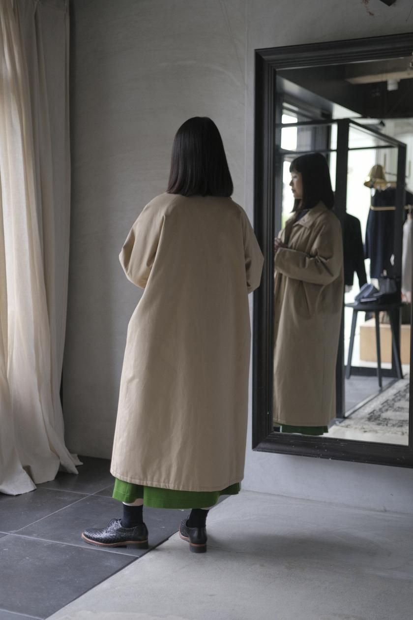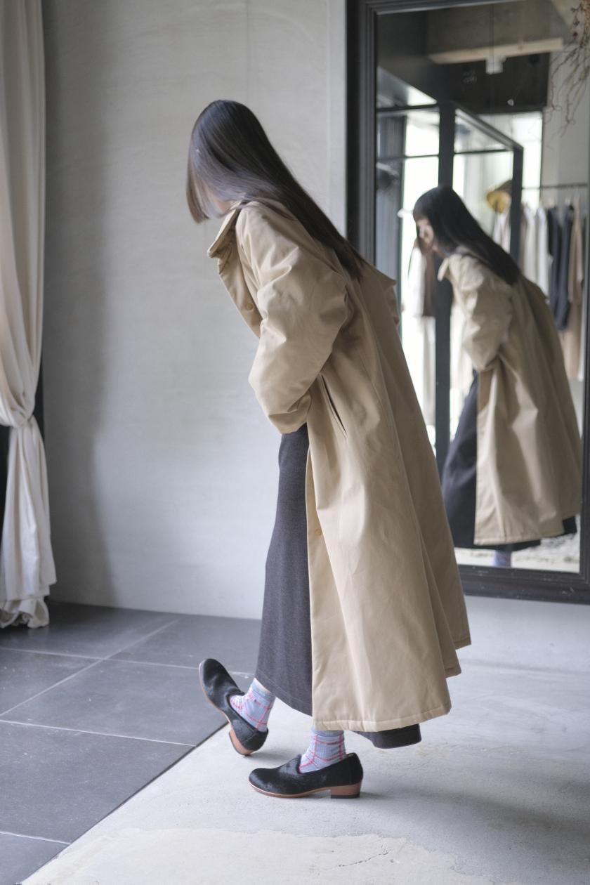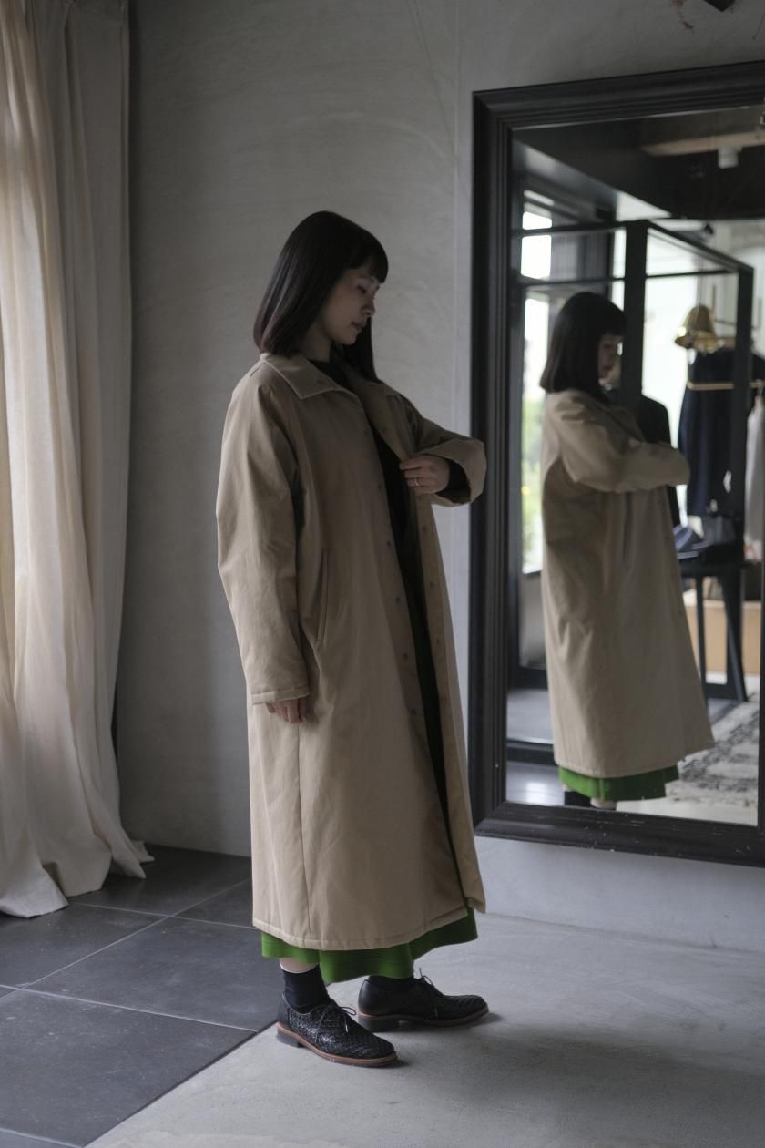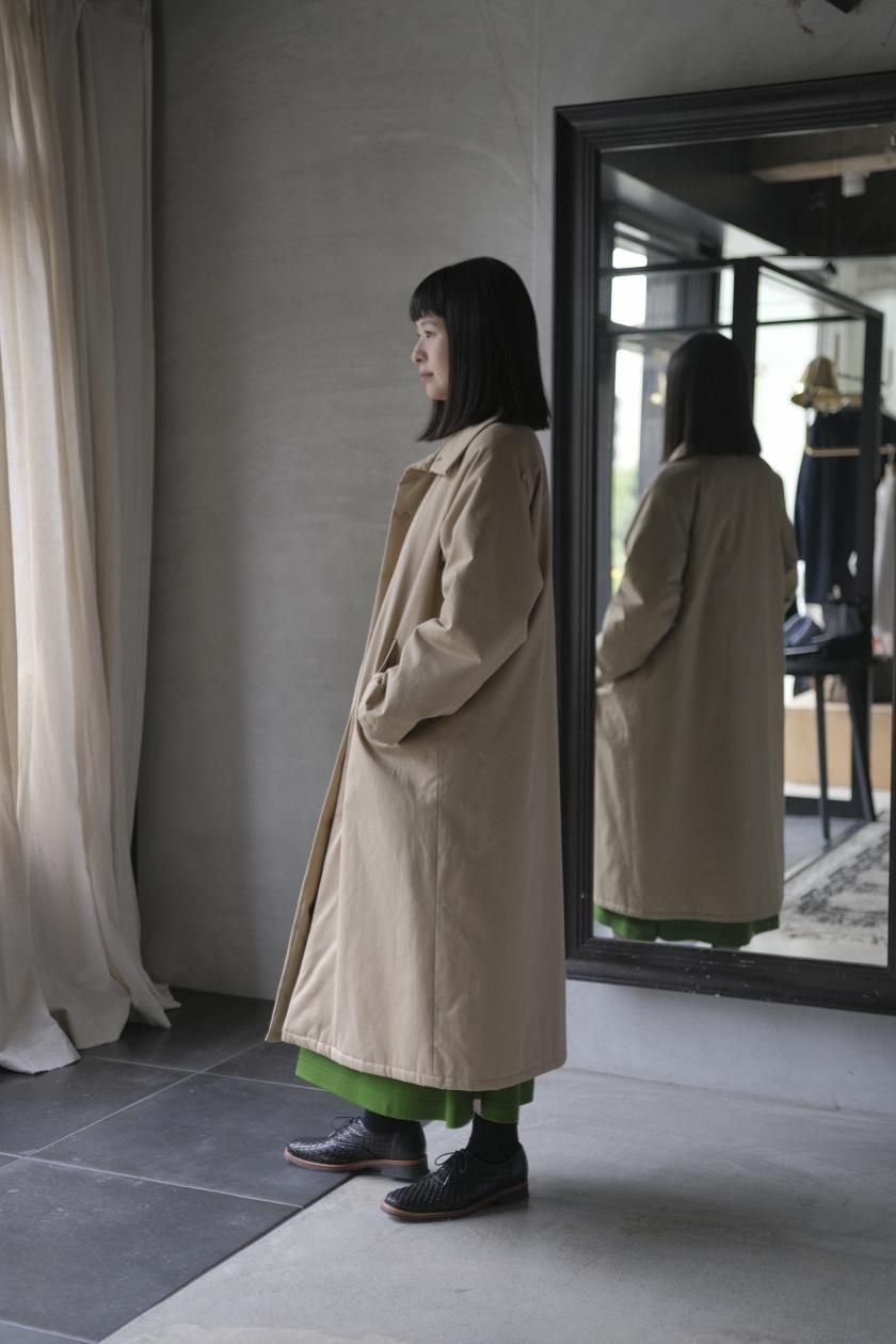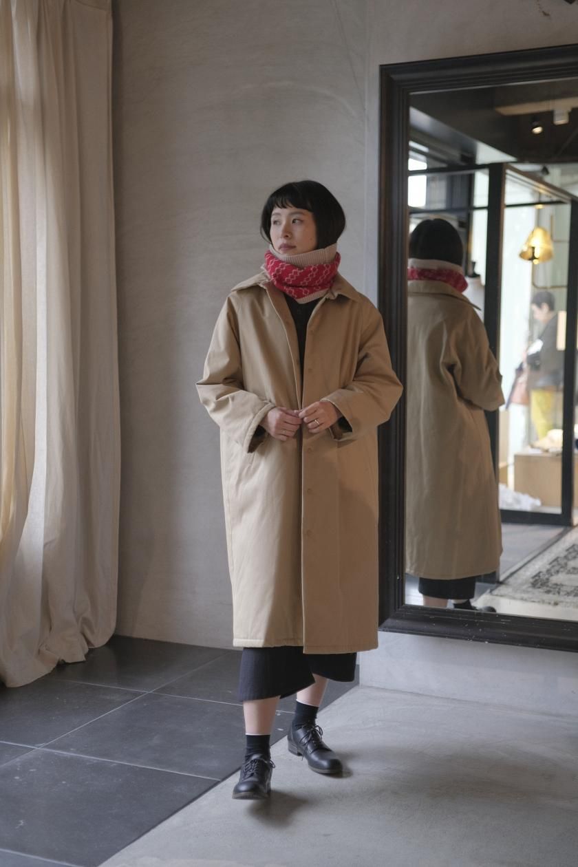 、表地を撥水加工が施された肉厚のツイルコットンに変更をして再登場します。より、あたたかく、より、軽く。そして、変わらないシルエットは、モードにも、カジュアルにも。さまざまなシーンで、さらに心地よく着ていただくことができるようになっています。