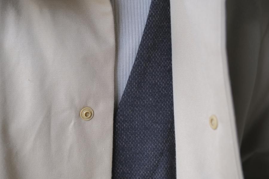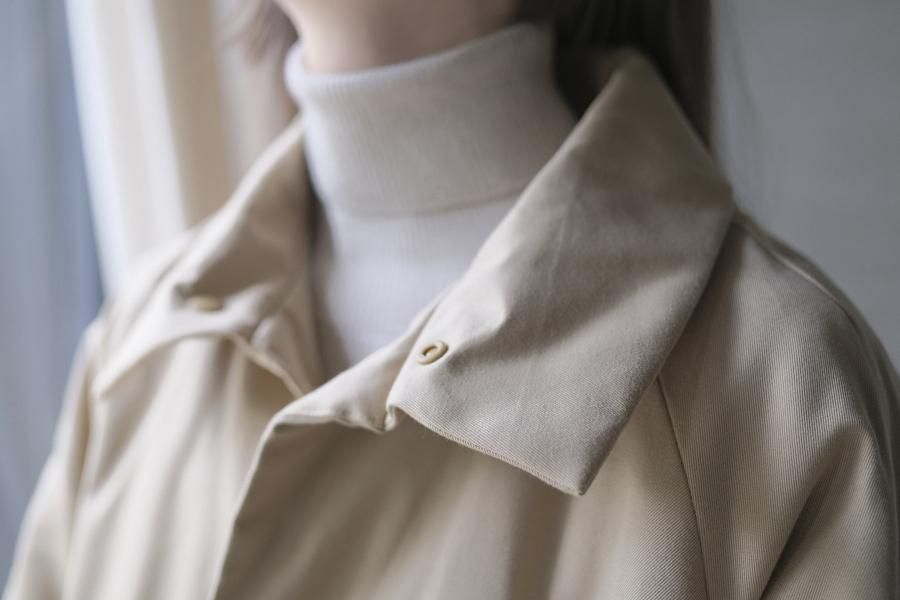 ・顎にかかるくらいのスタンドカラー。首裏にステッチを入れることによって立ちやすい衿になっています