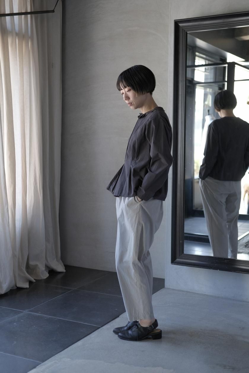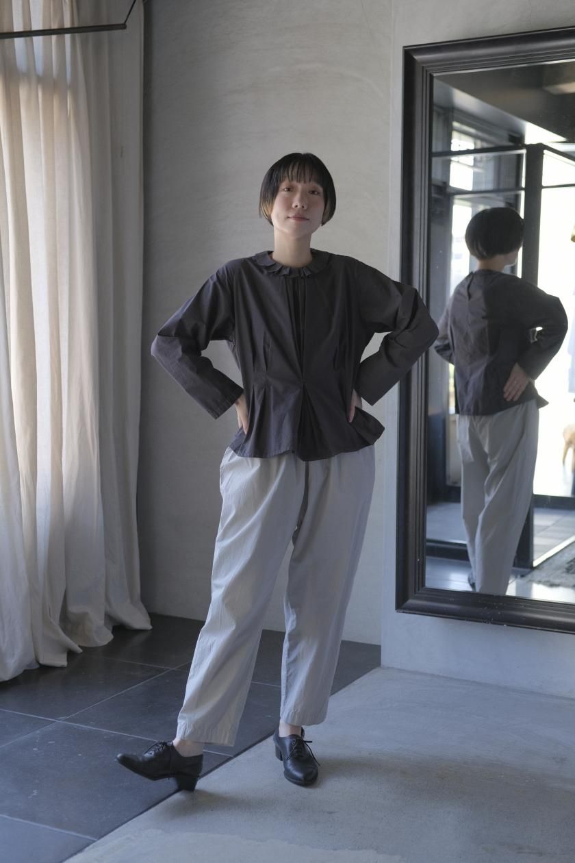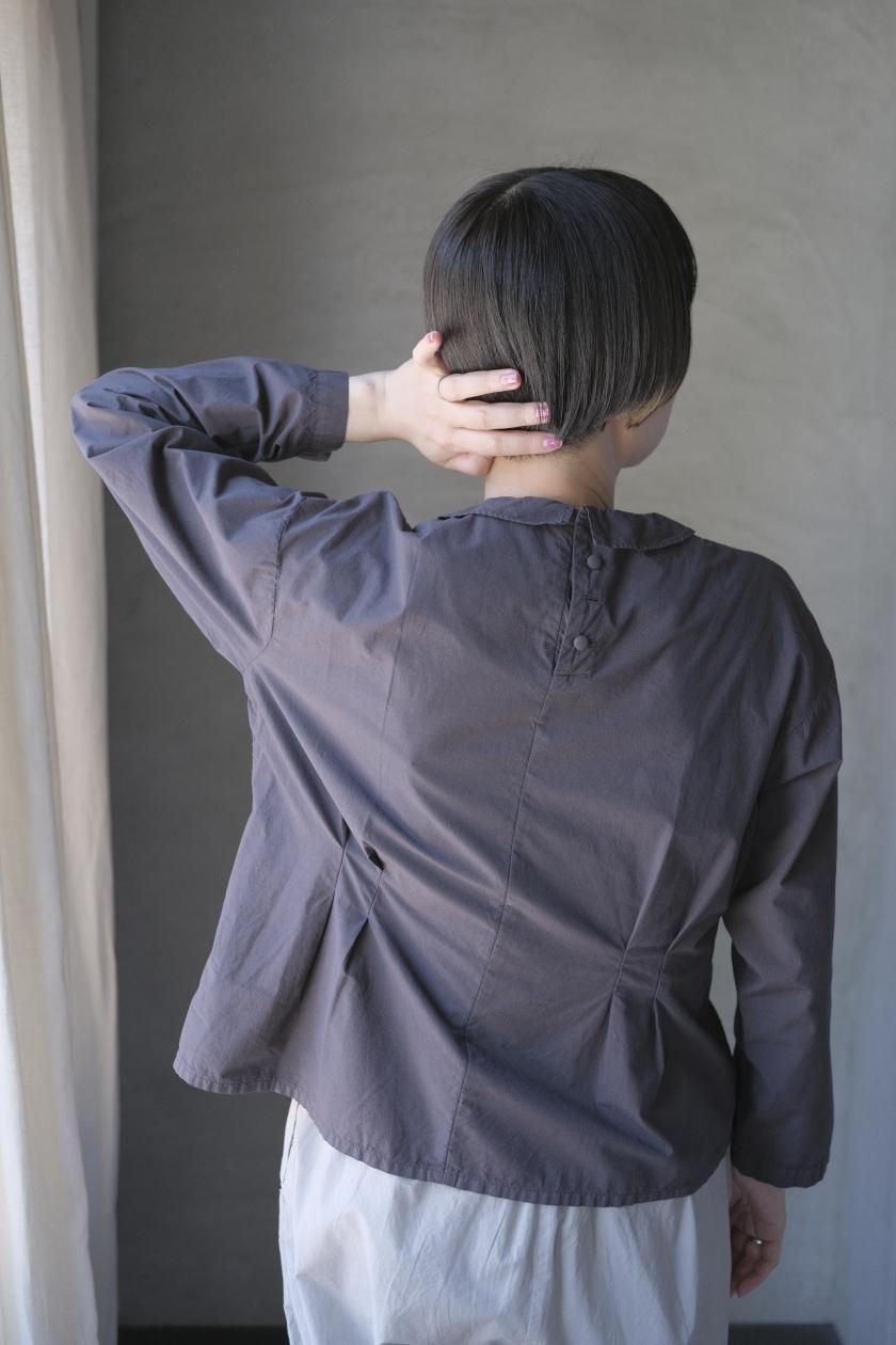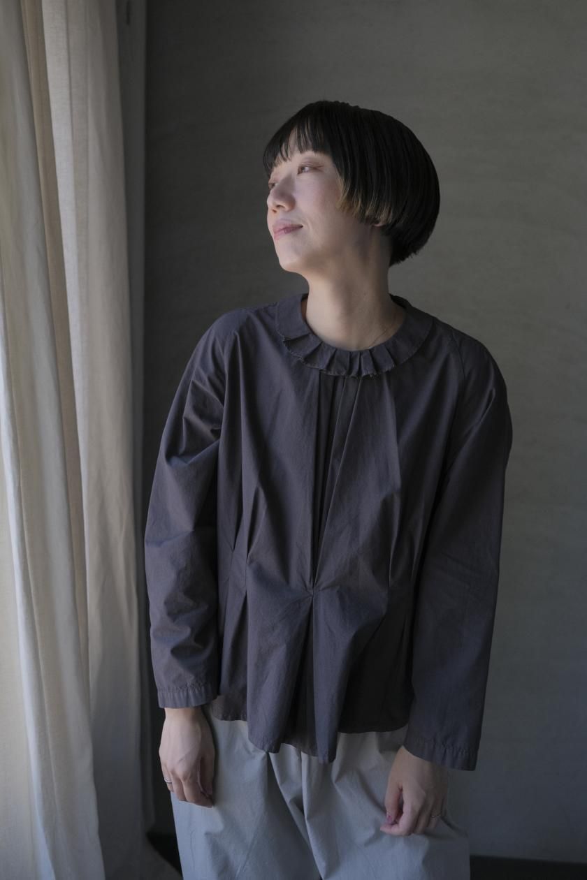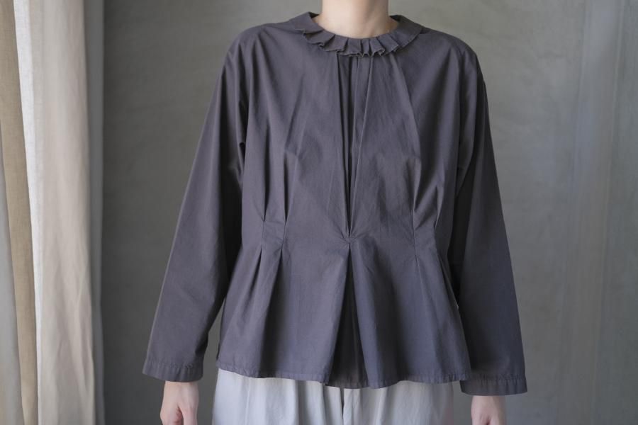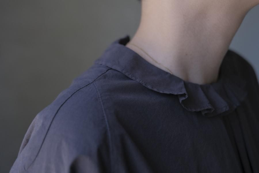 COSMIC WONDER / シルクコットンブロード クラシックフリルシャツ ( Sandalwood charcoal )