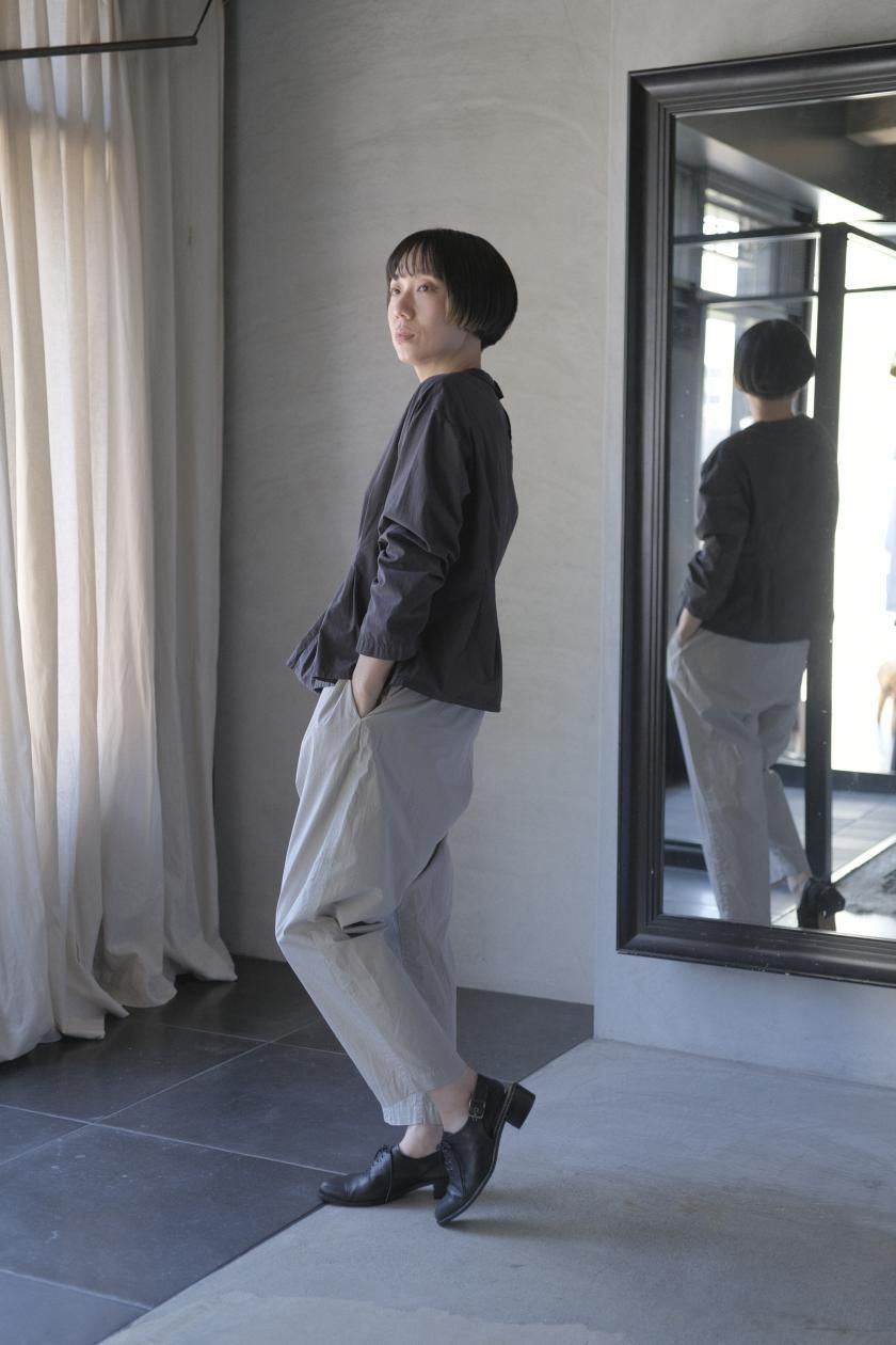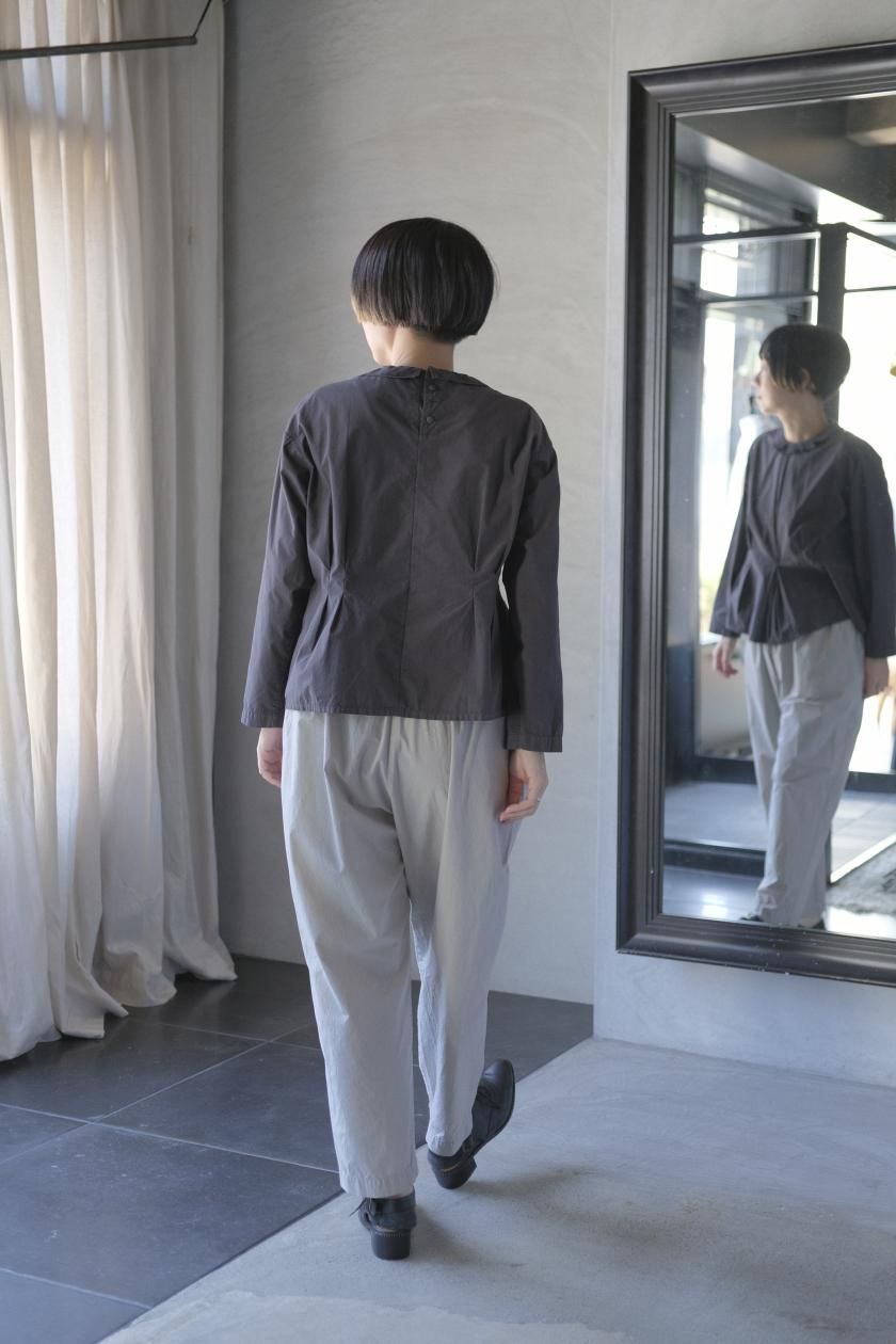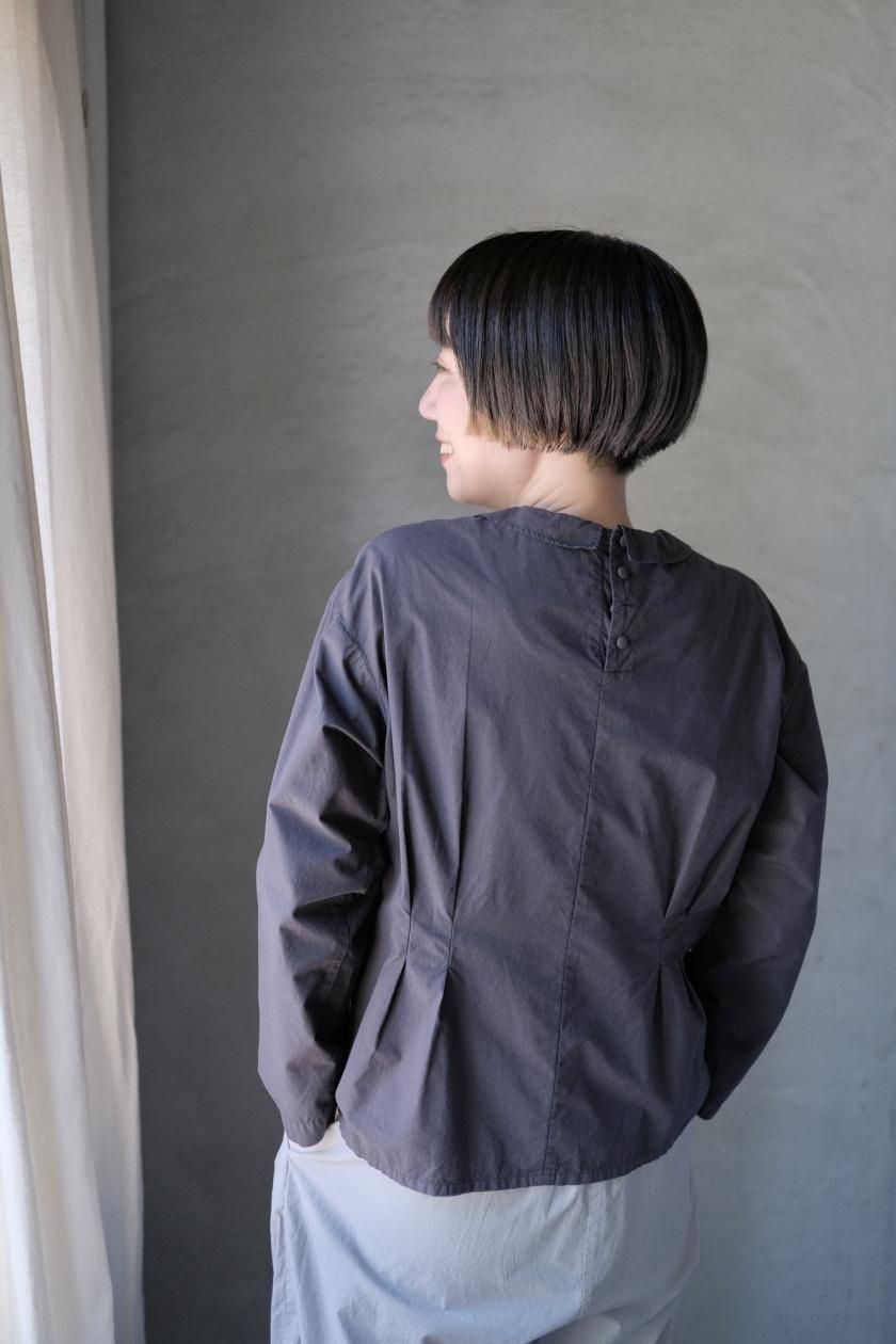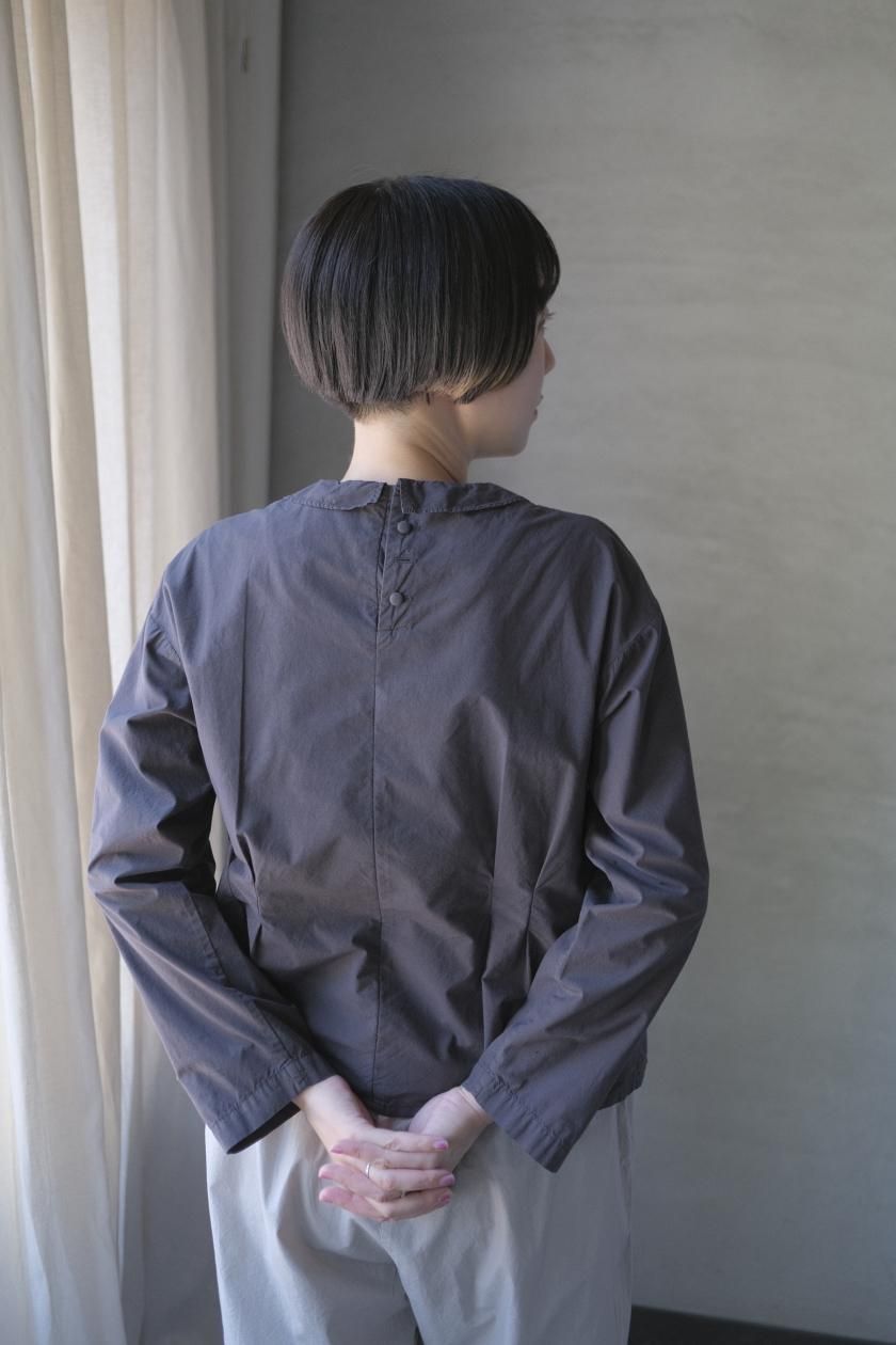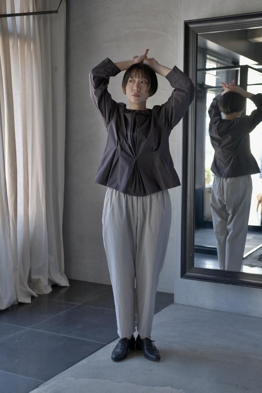 COSMIC WONDER / シルクコットンブロード クラシックフリルシャツ ( Sandalwood charcoal )