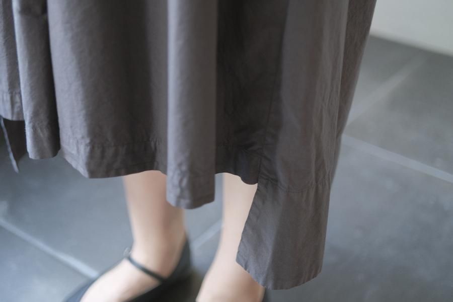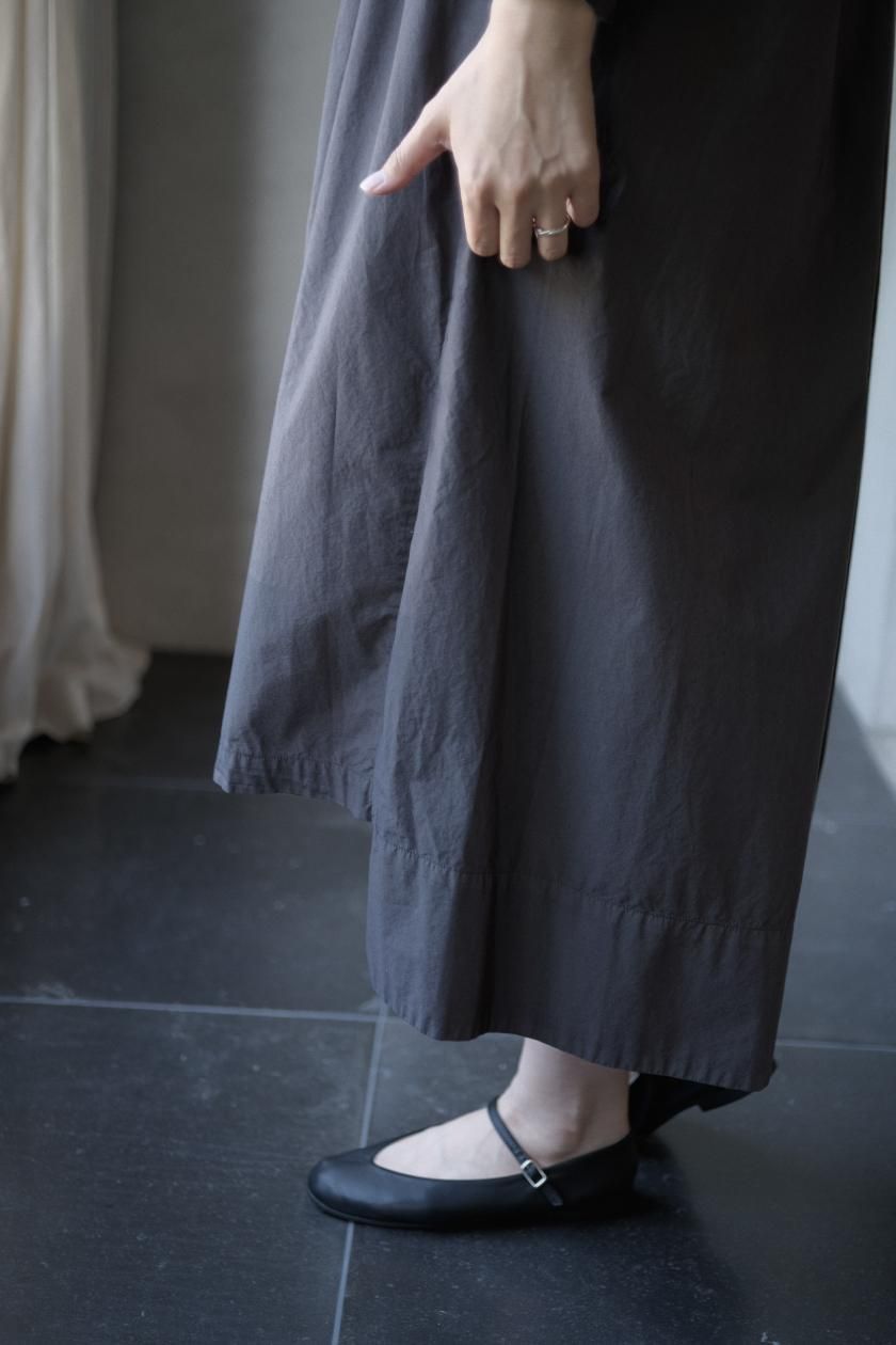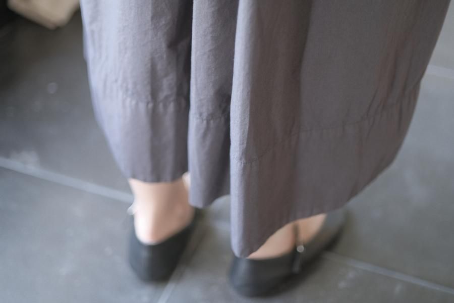 ウエストのギャザーベルトがフリルのような印象のフォークパンツ。
