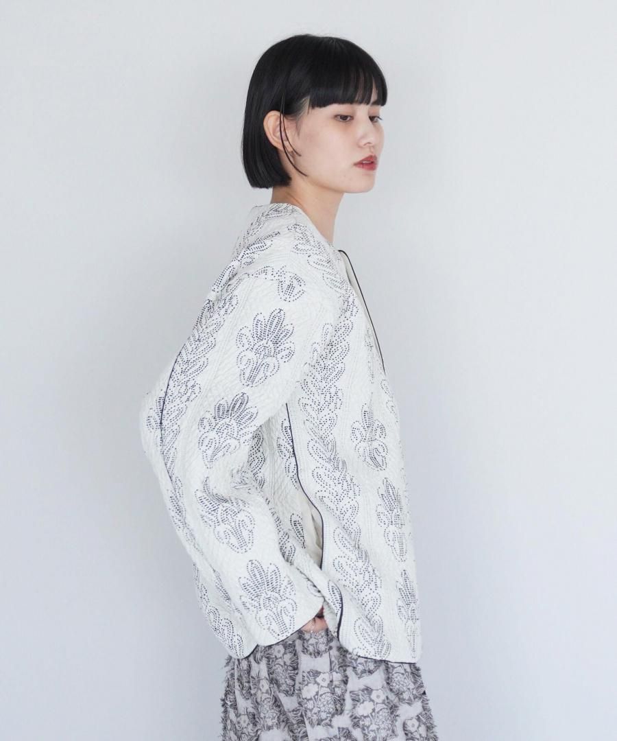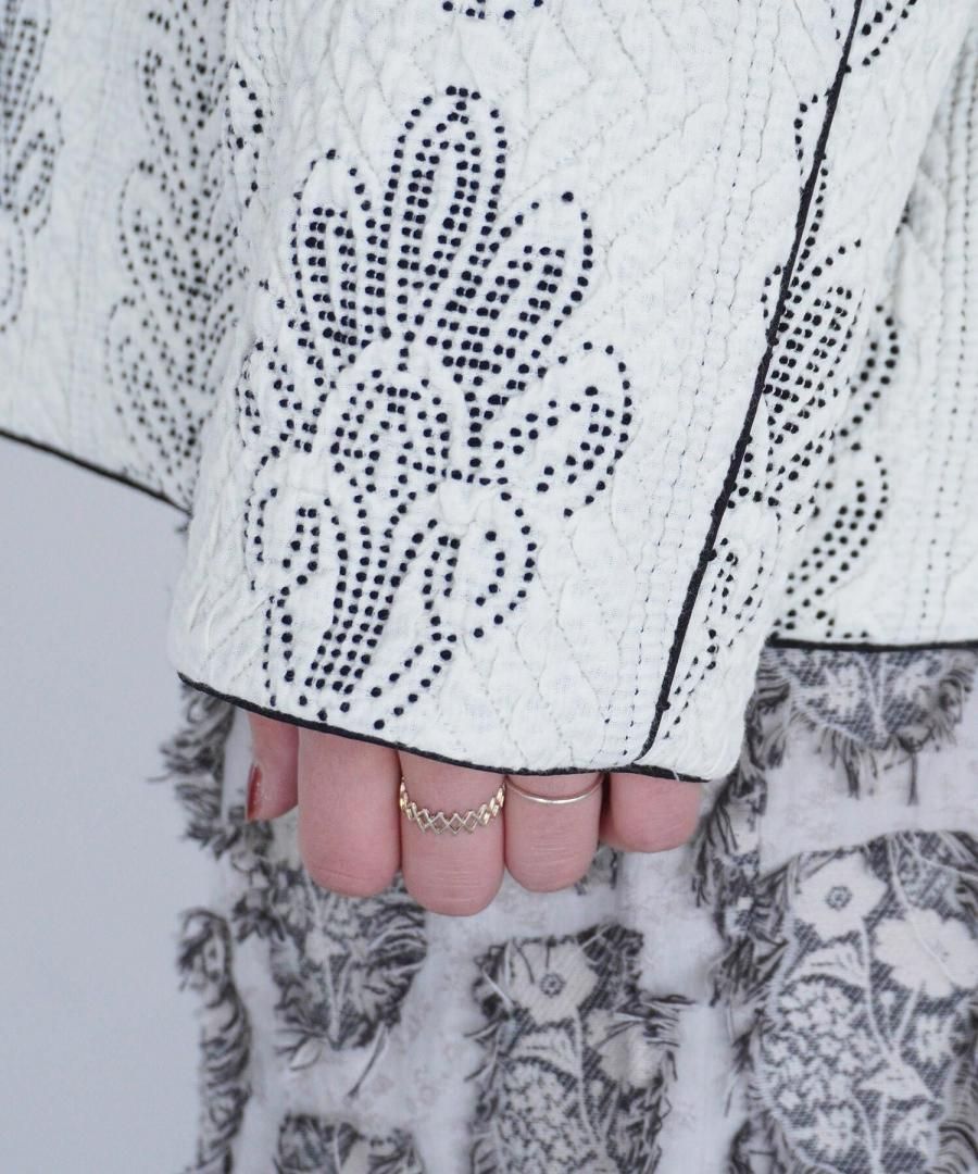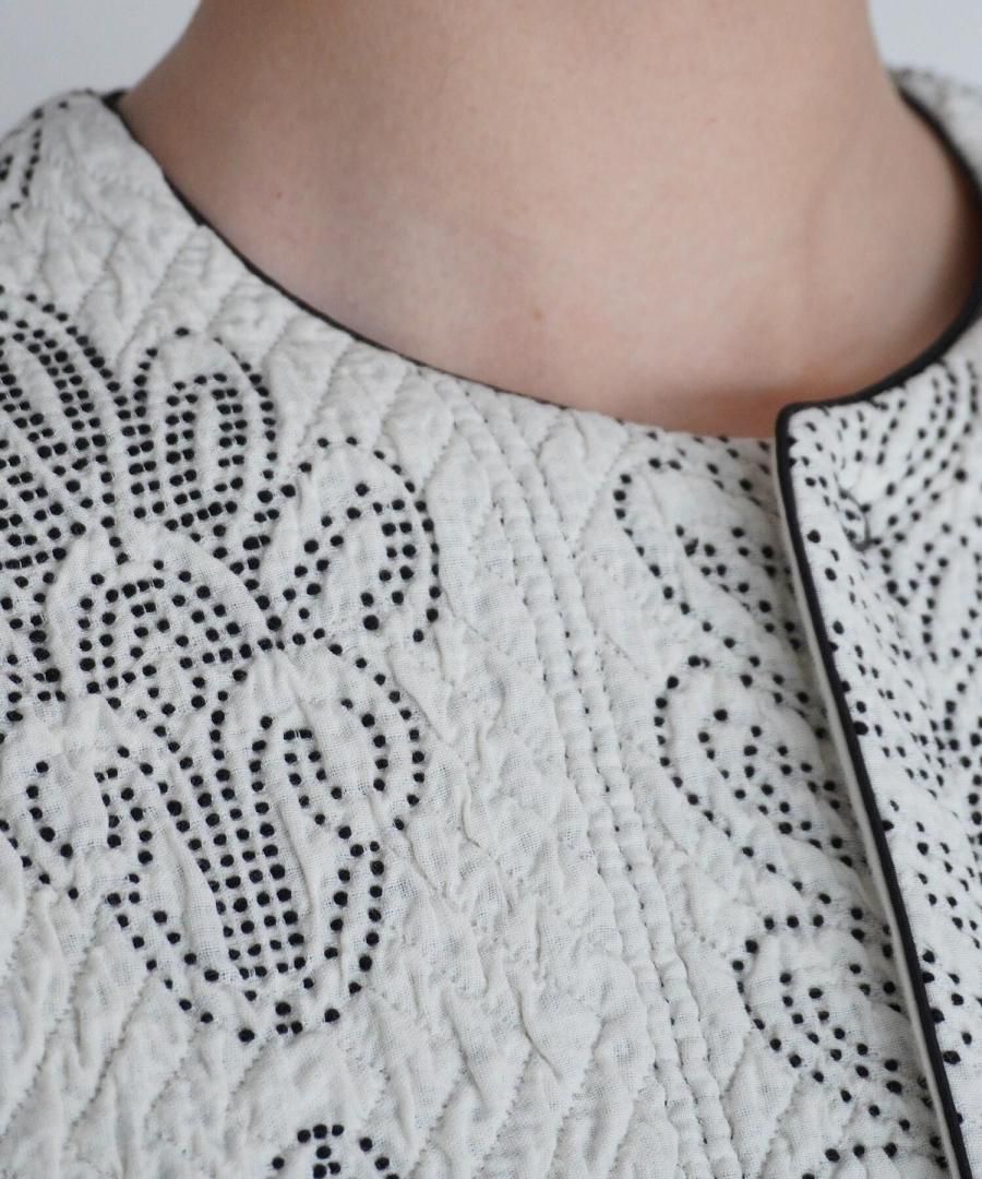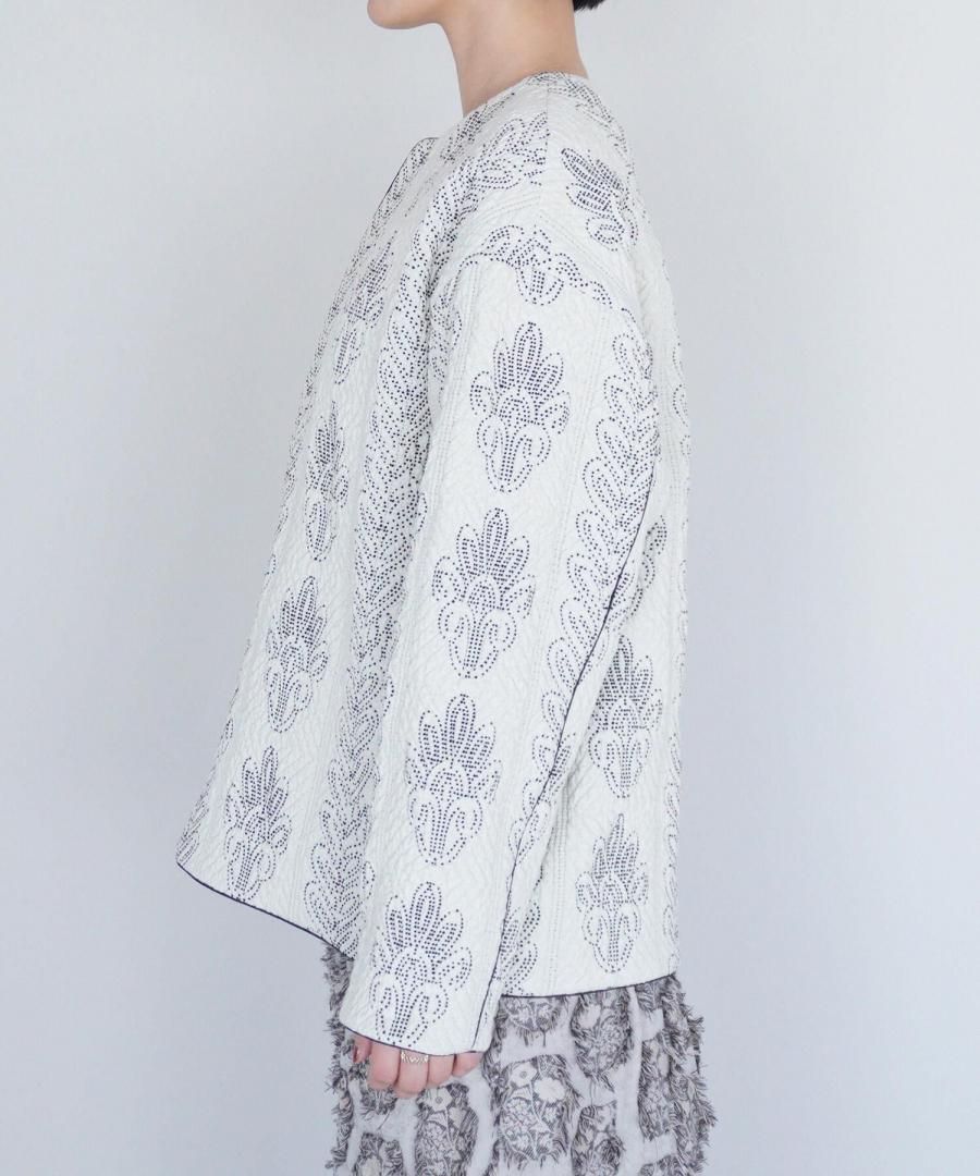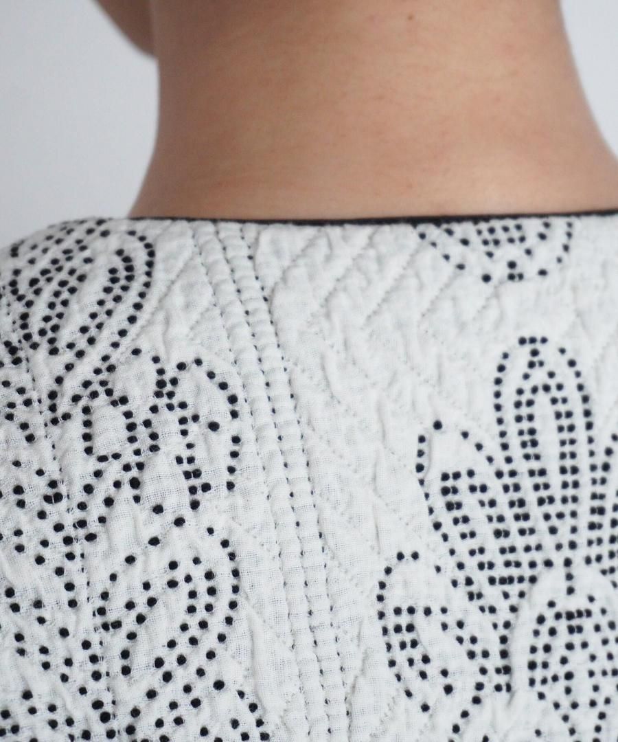 キルトを入れながら手で刺繍したような、ふくらみのある生地です。