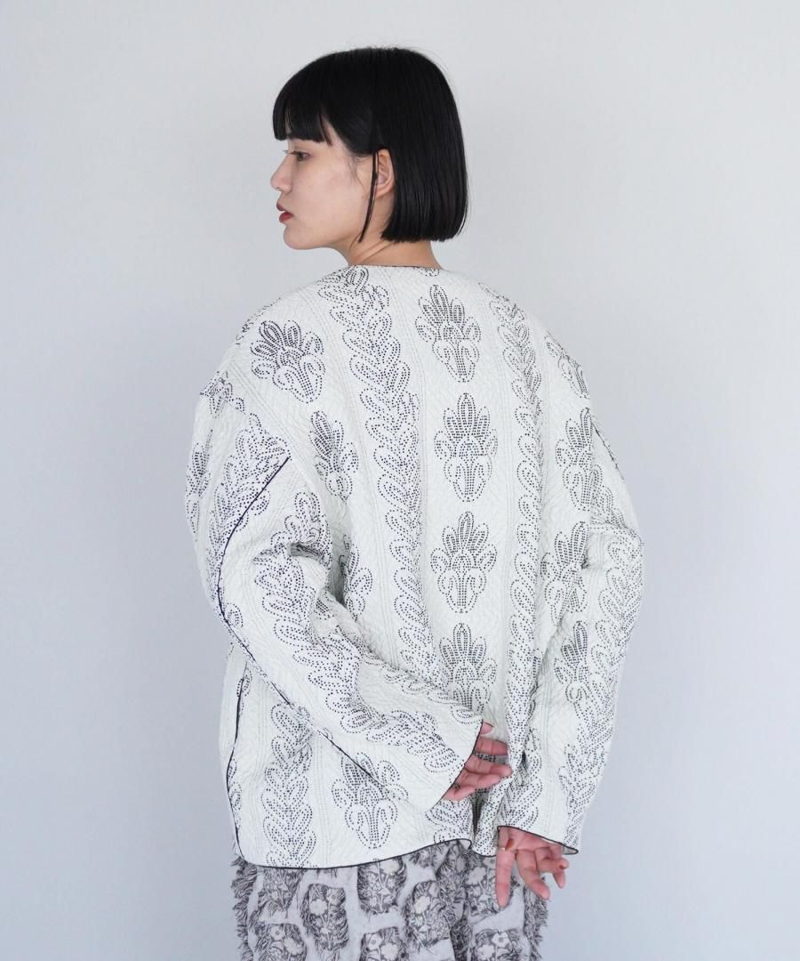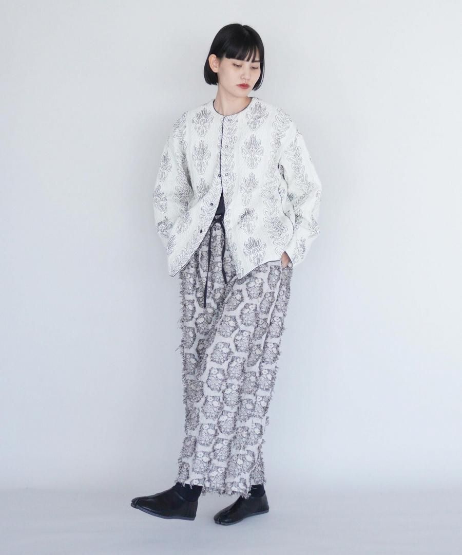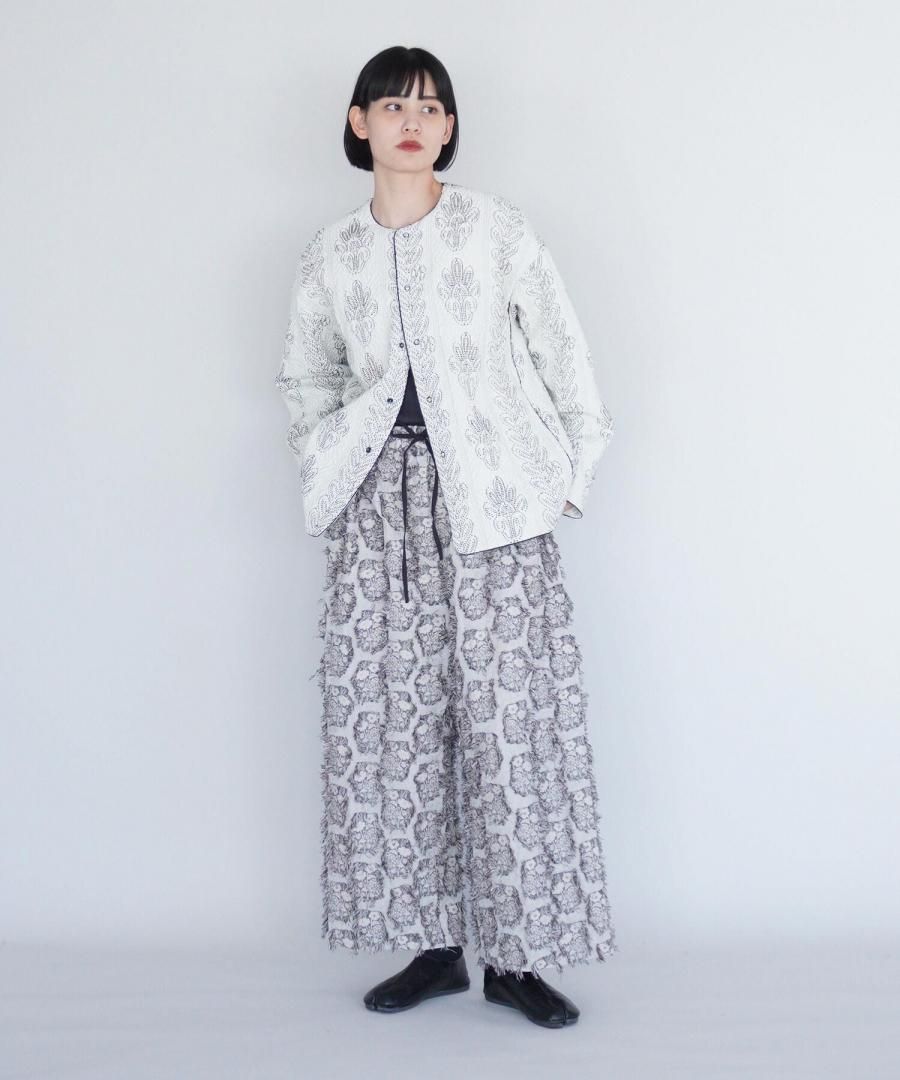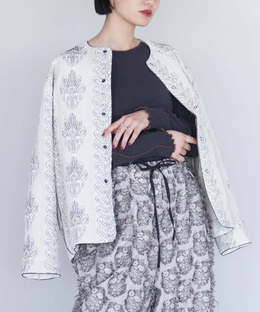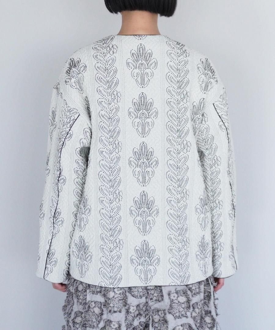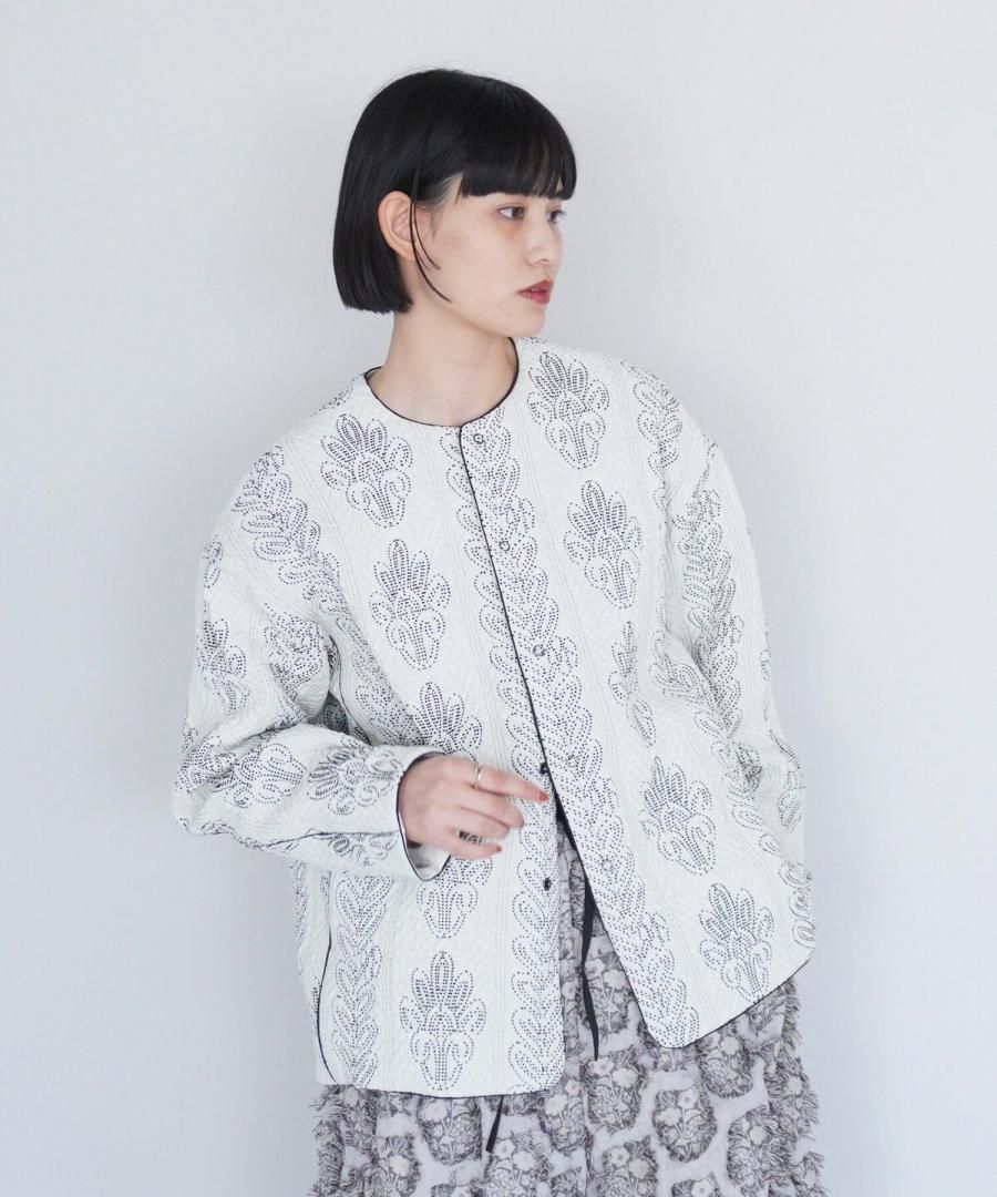 キルトを入れながら手で刺繍したような、ふくらみのある生地です。