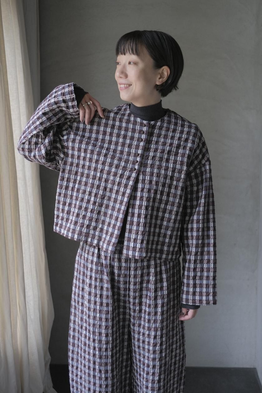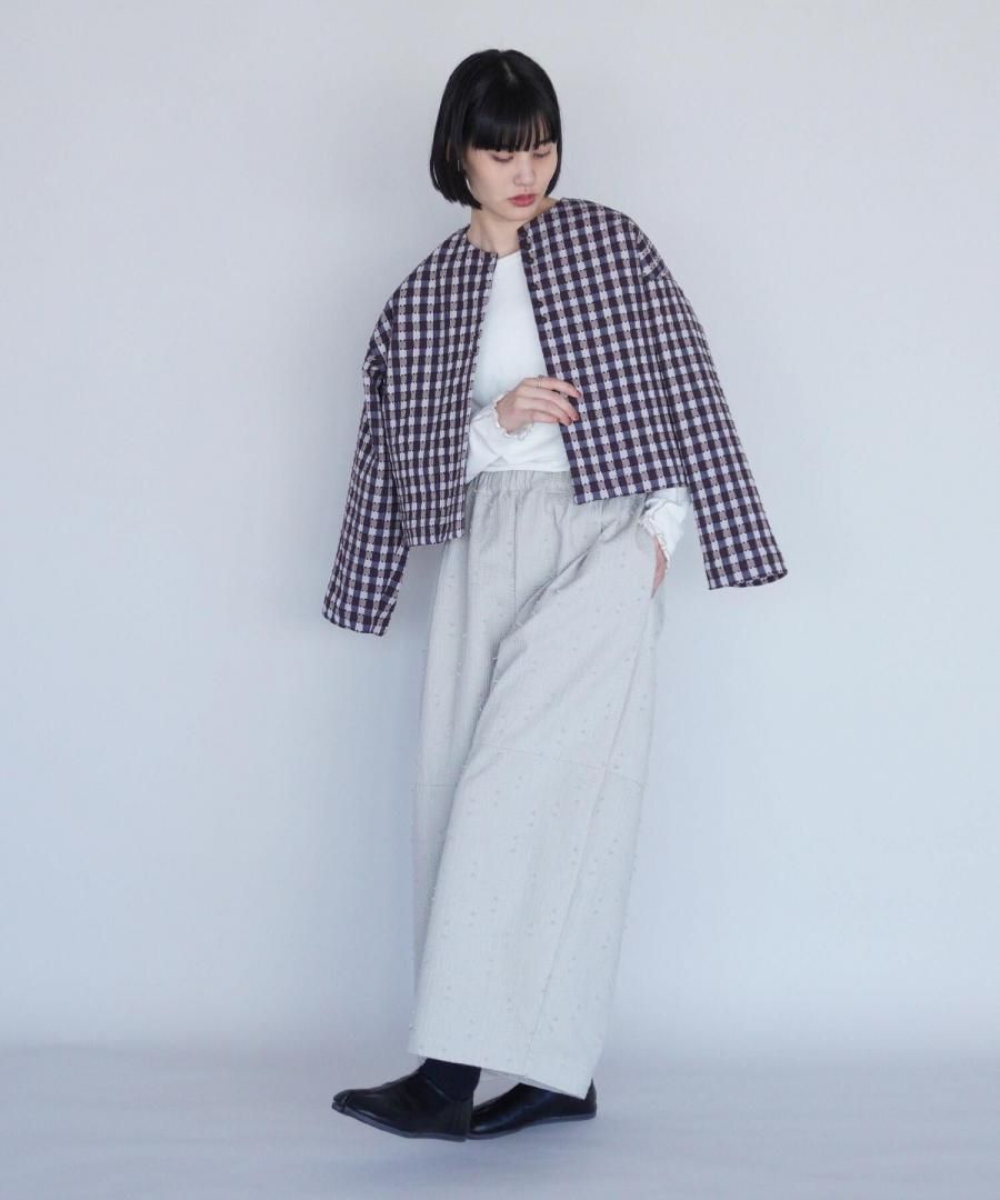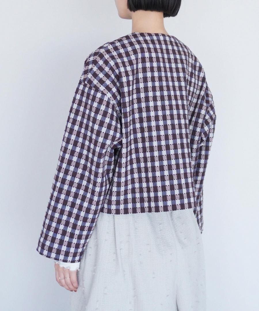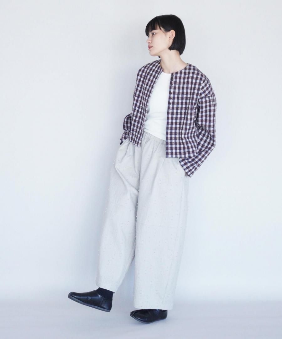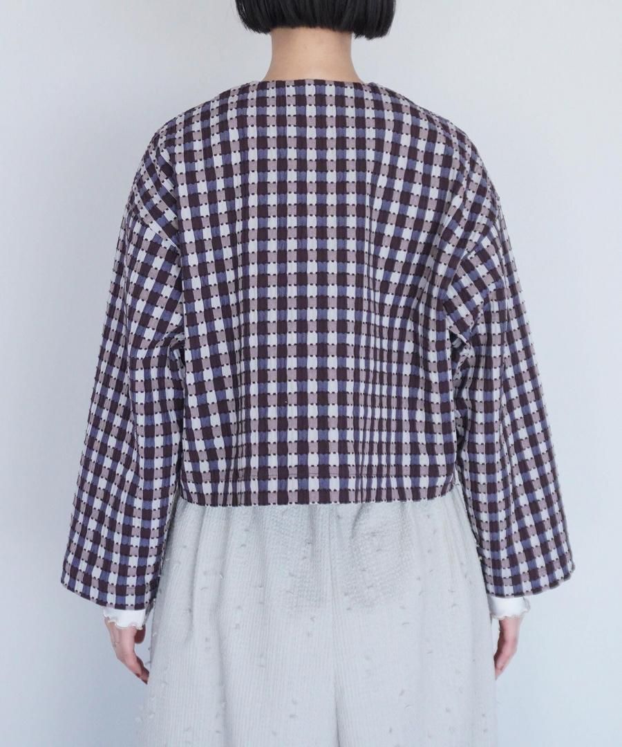qiri / sashiko check ジャケット( ベージュmix & ライトグレーmix )