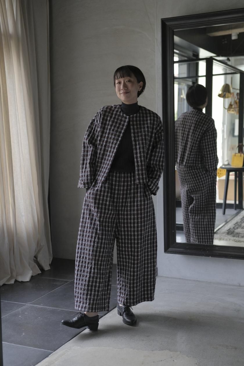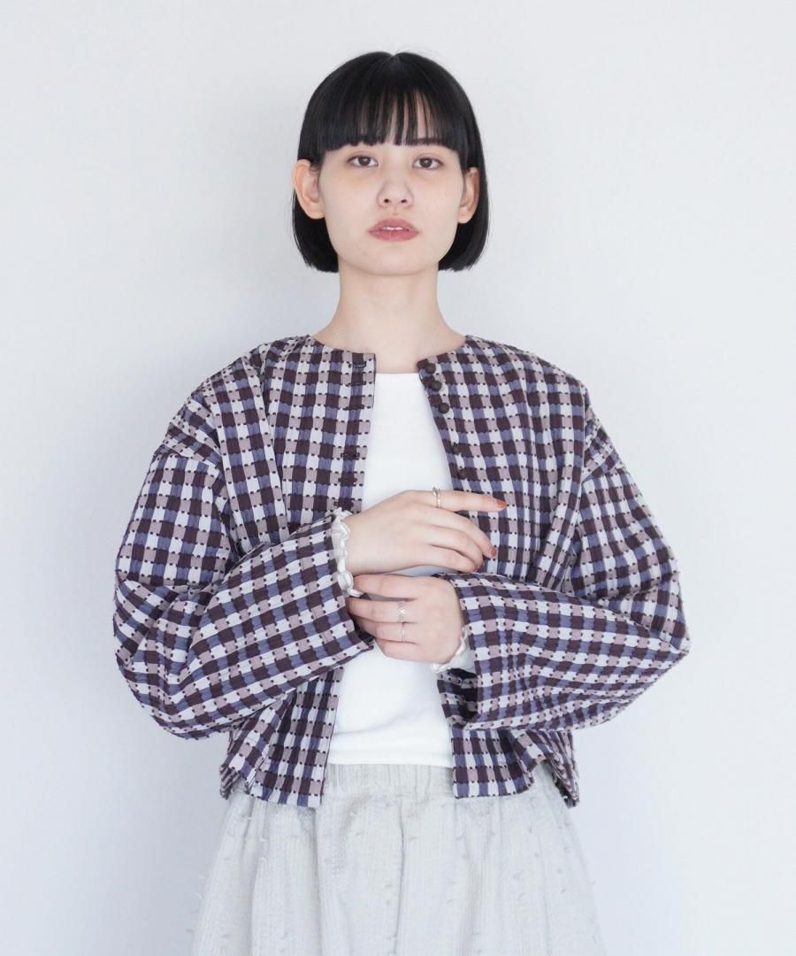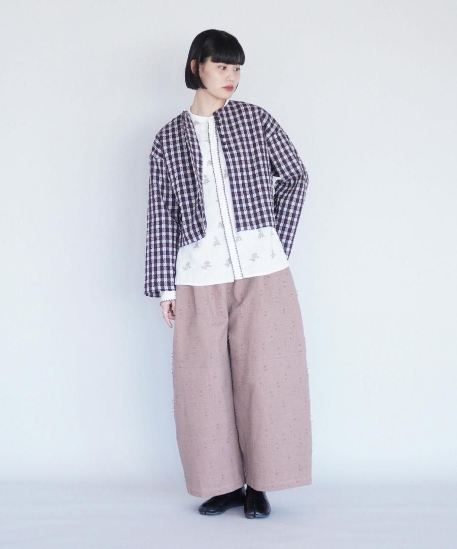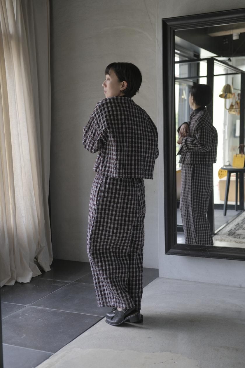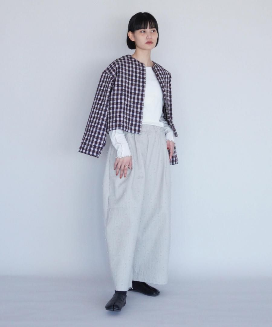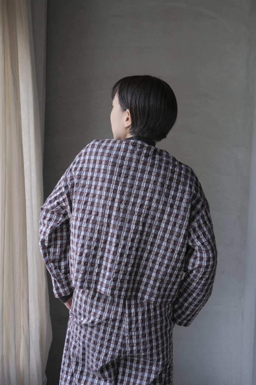 qiri / sashiko check ジャケット( ベージュmix & ライトグレーmix )