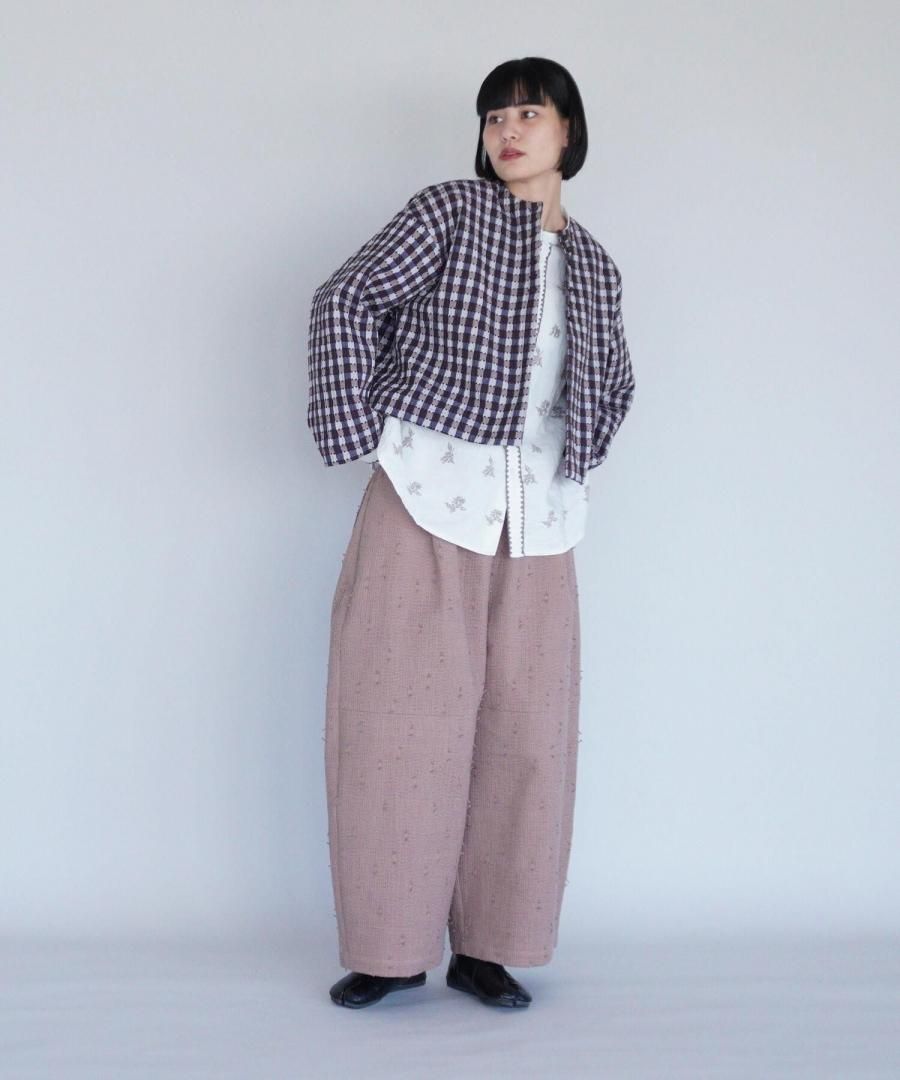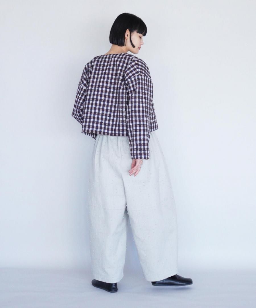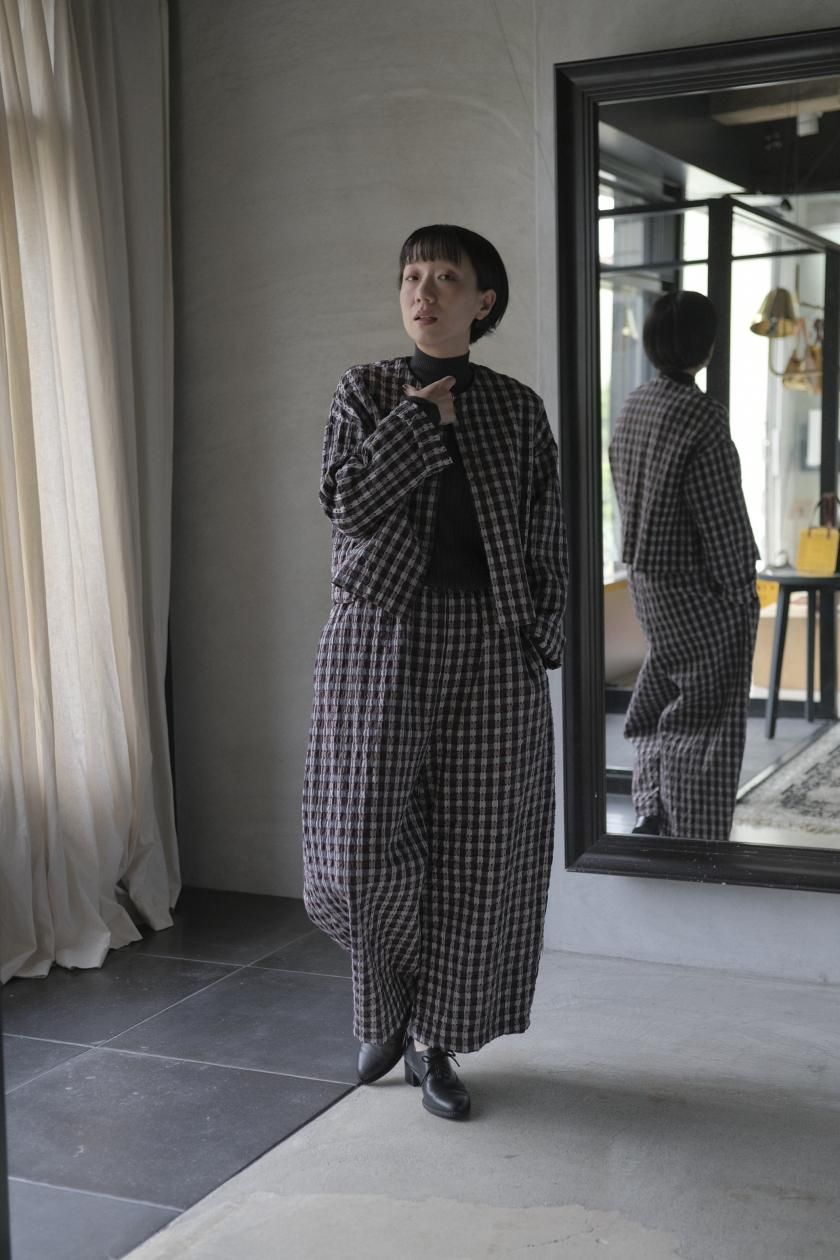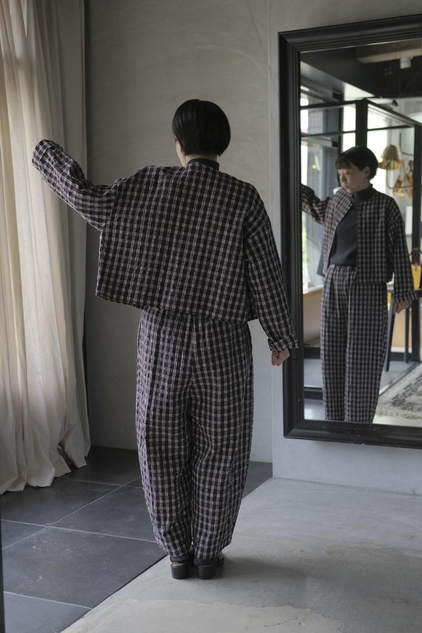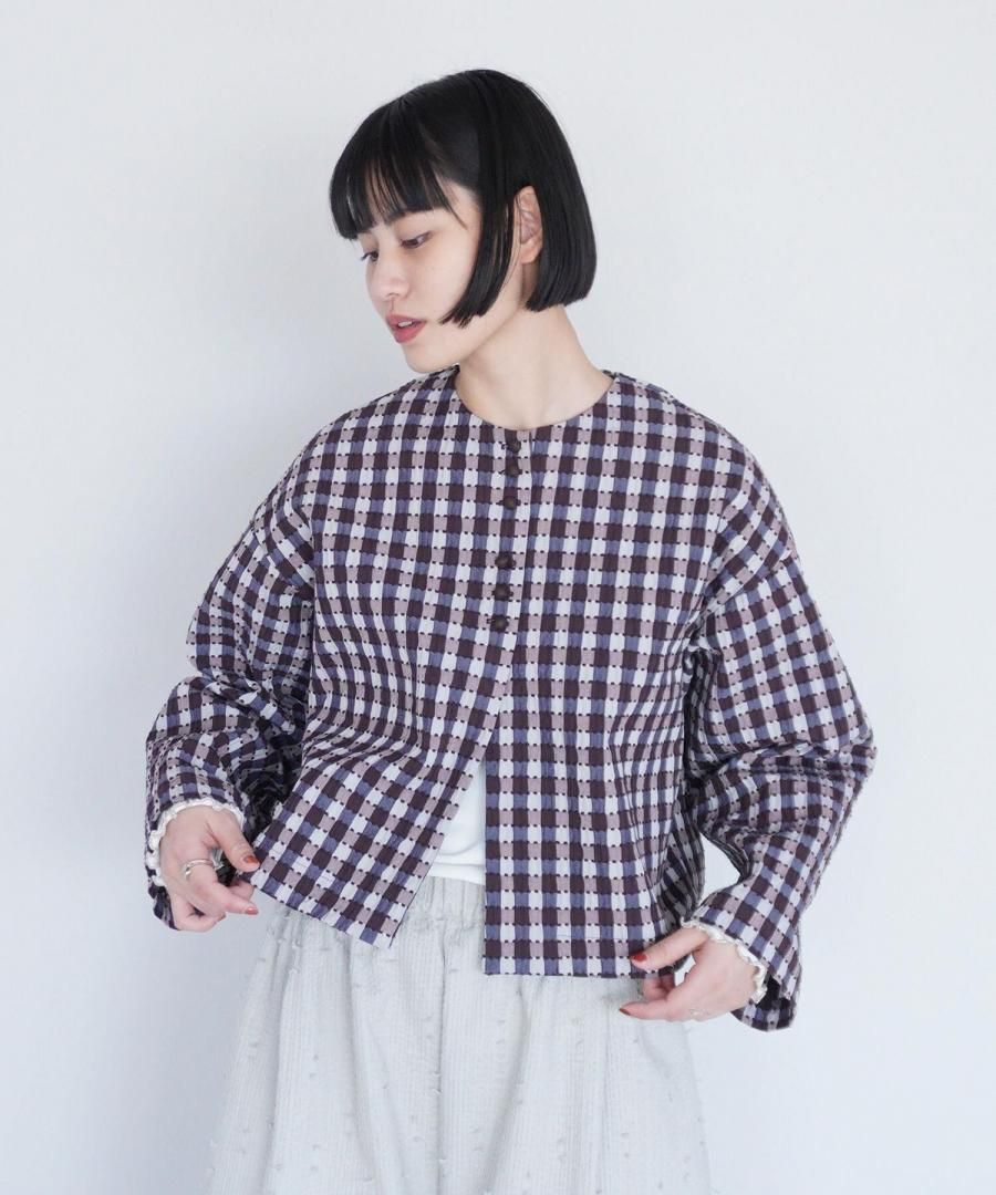 qiri / sashiko check ジャケット( ベージュmix & ライトグレーmix )