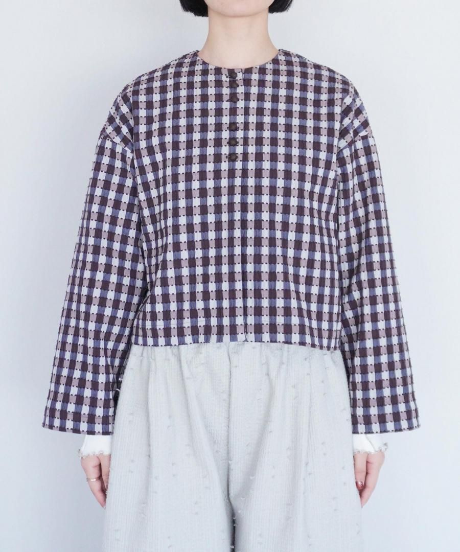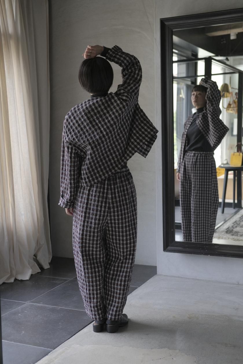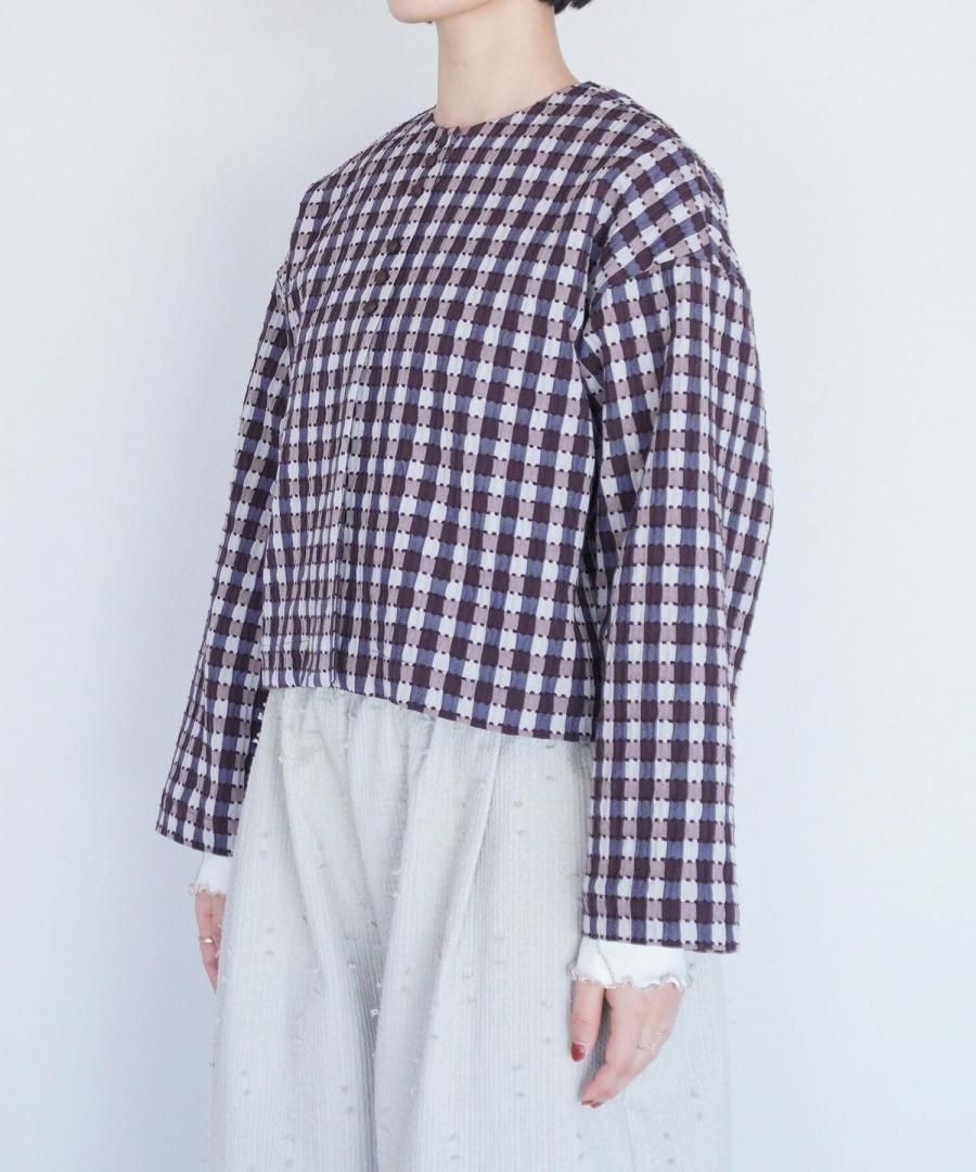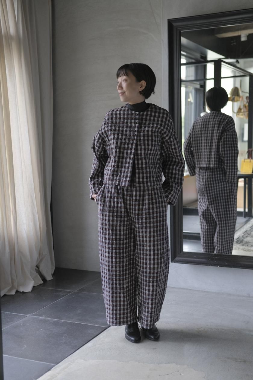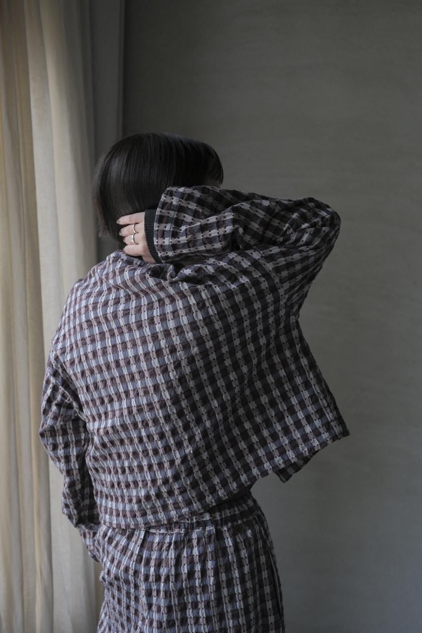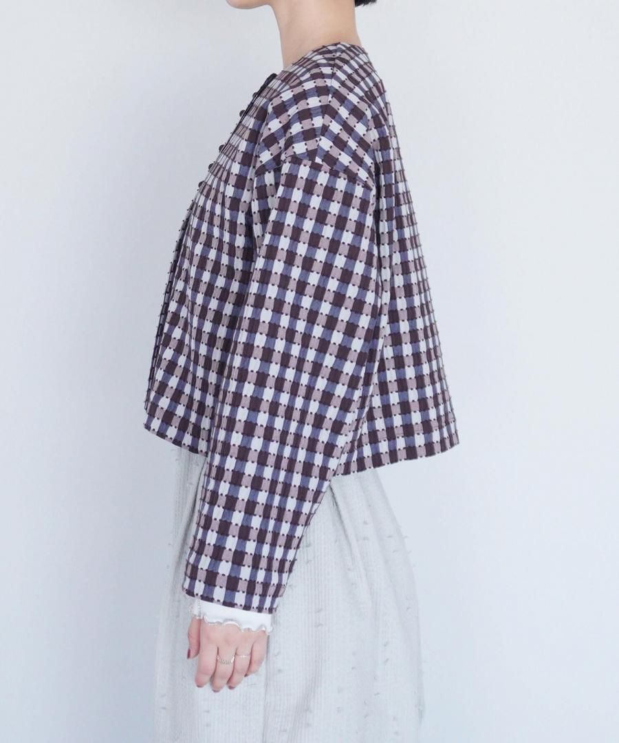 qiri / sashiko check ジャケット( ベージュmix & ライトグレーmix )