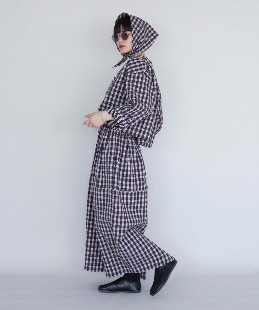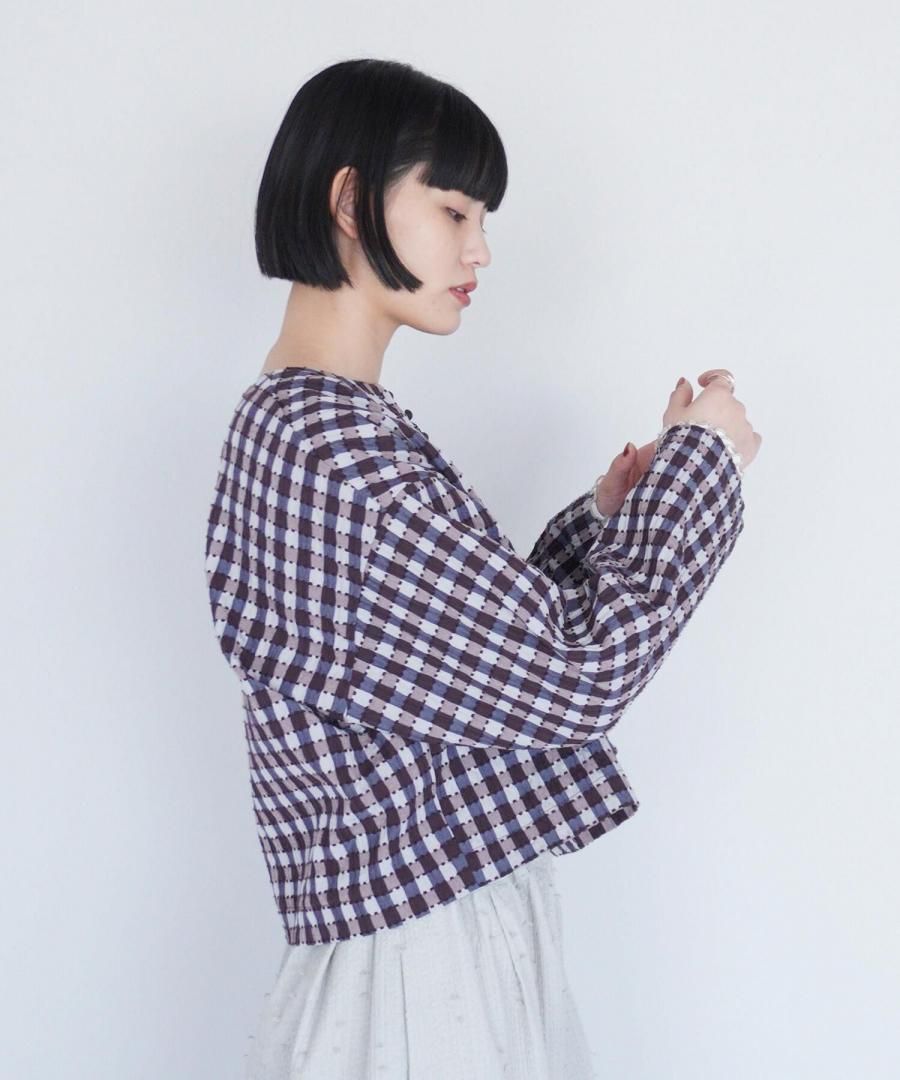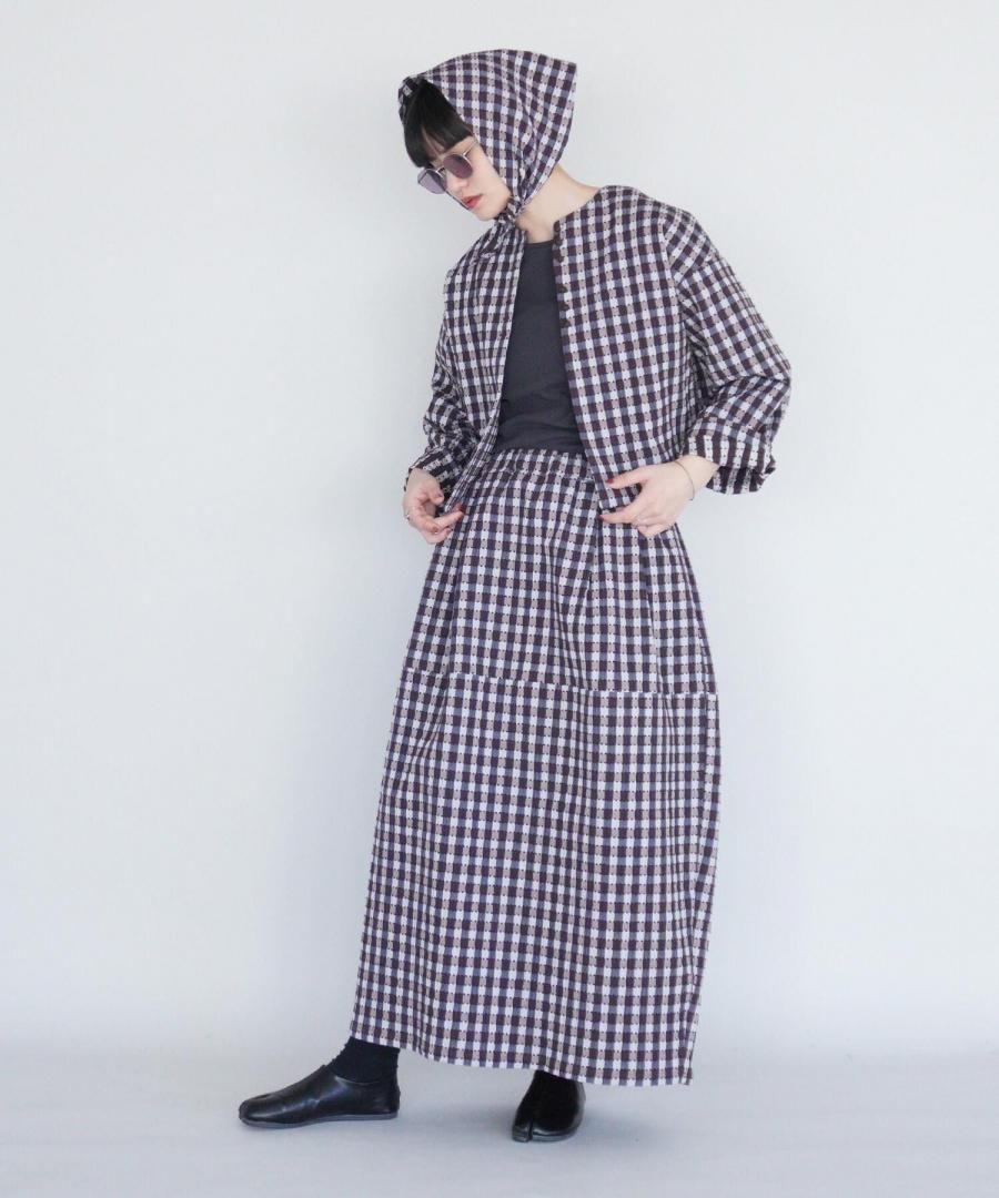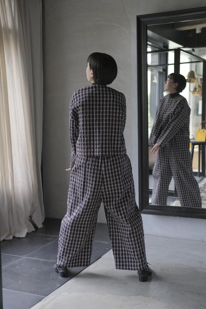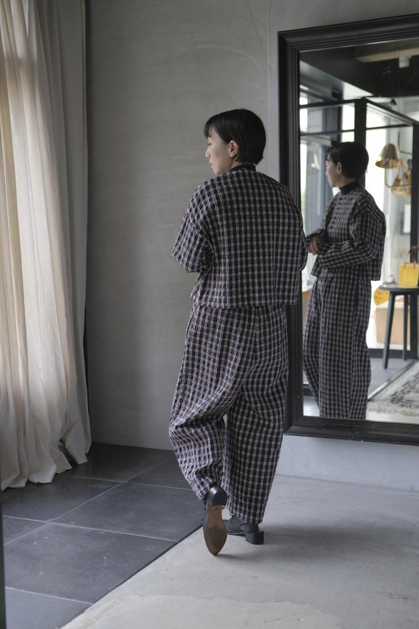 qiri / sashiko check ジャケット( ベージュmix & ライトグレーmix )