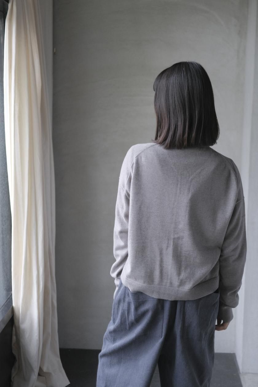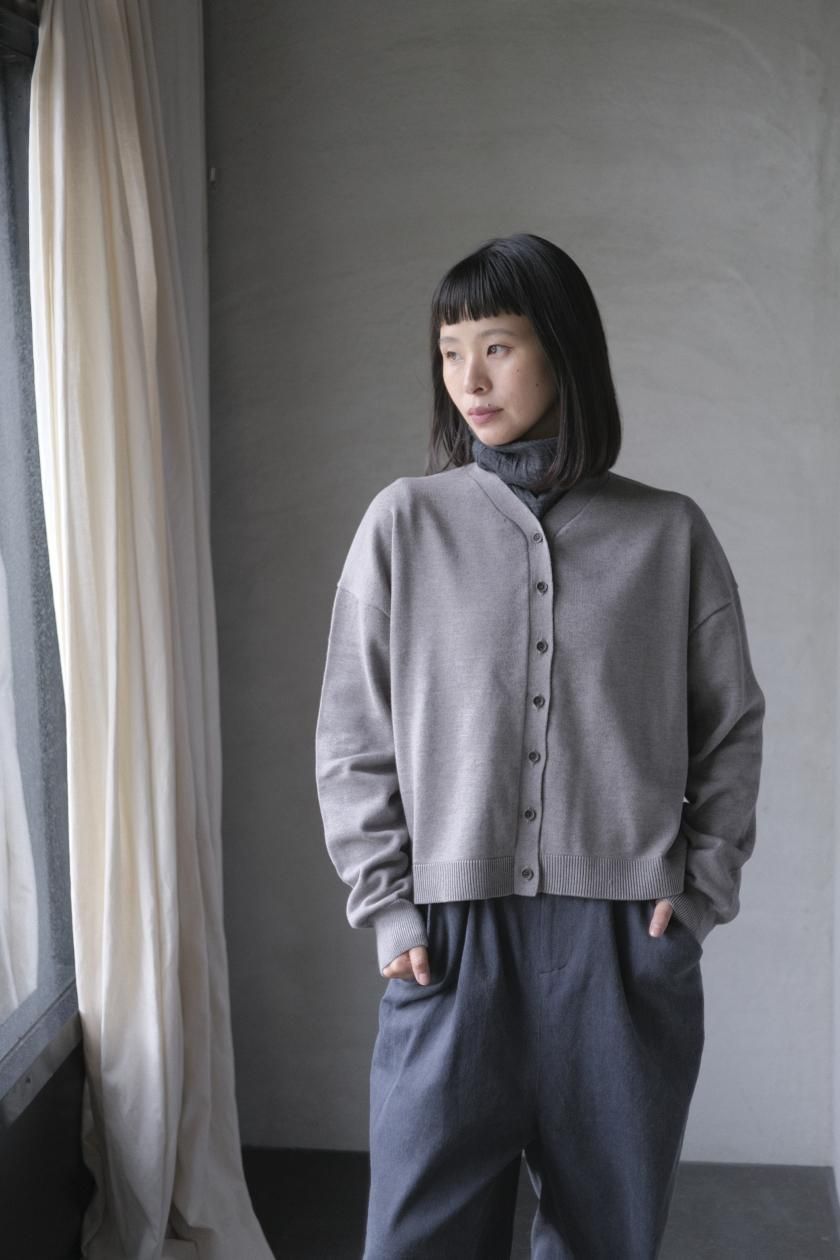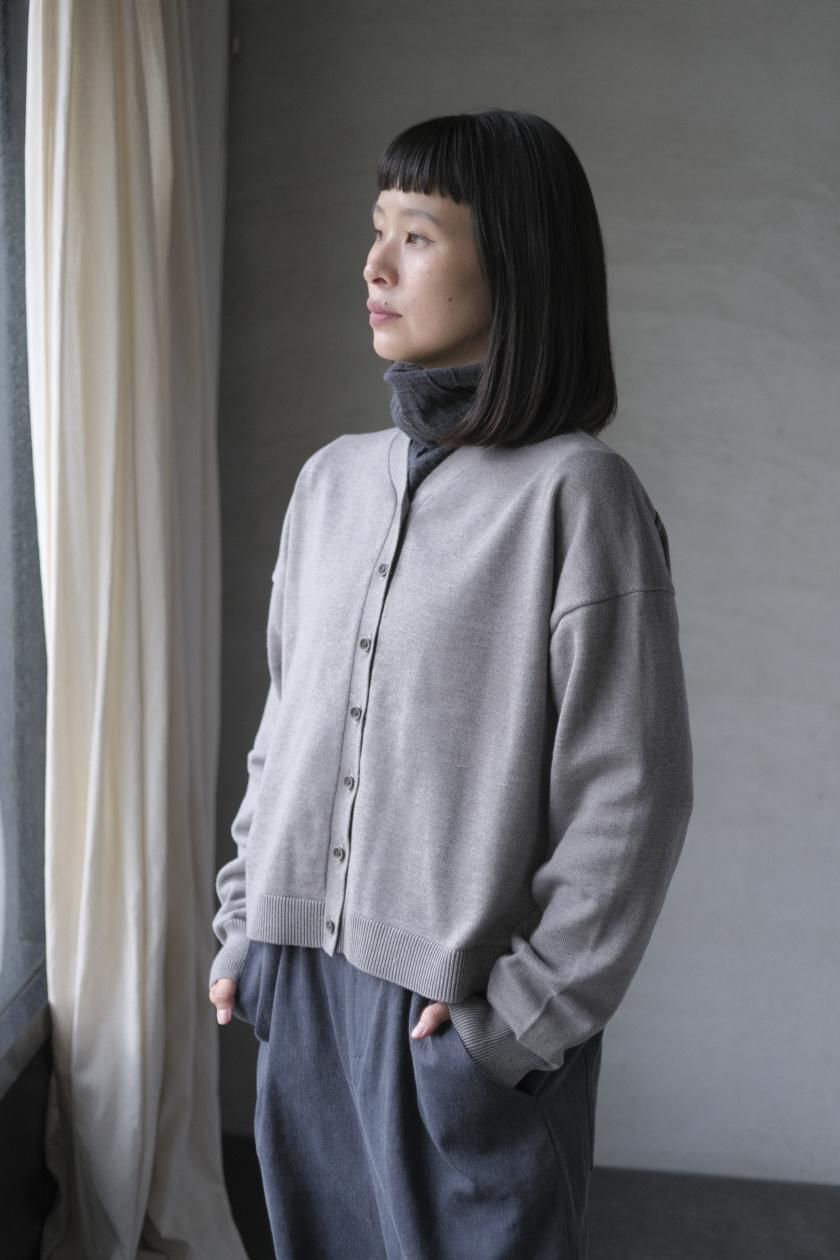 小さめのVネック開きが特徴の、秋口の羽織にぴったりなカーディガンです。