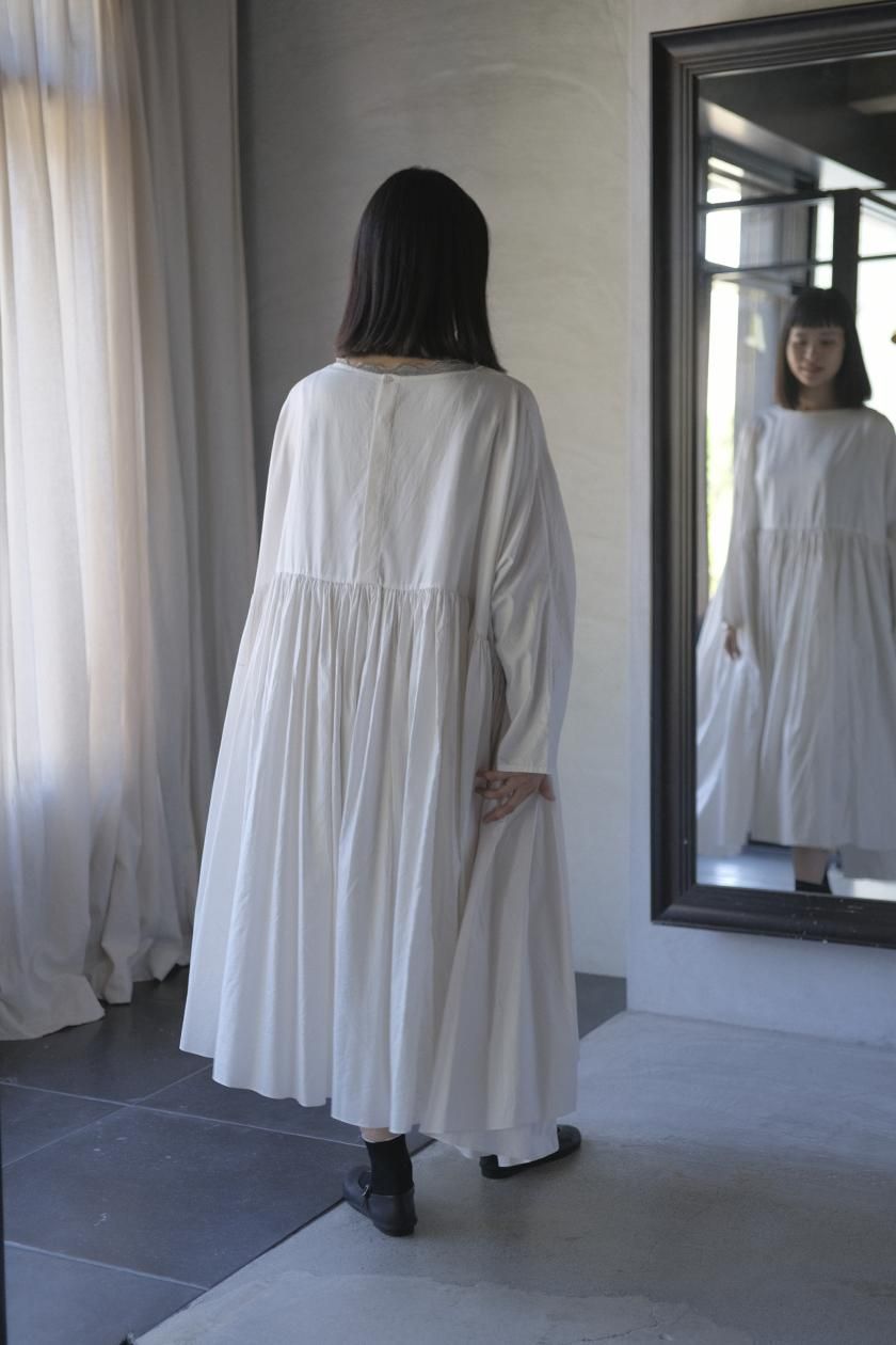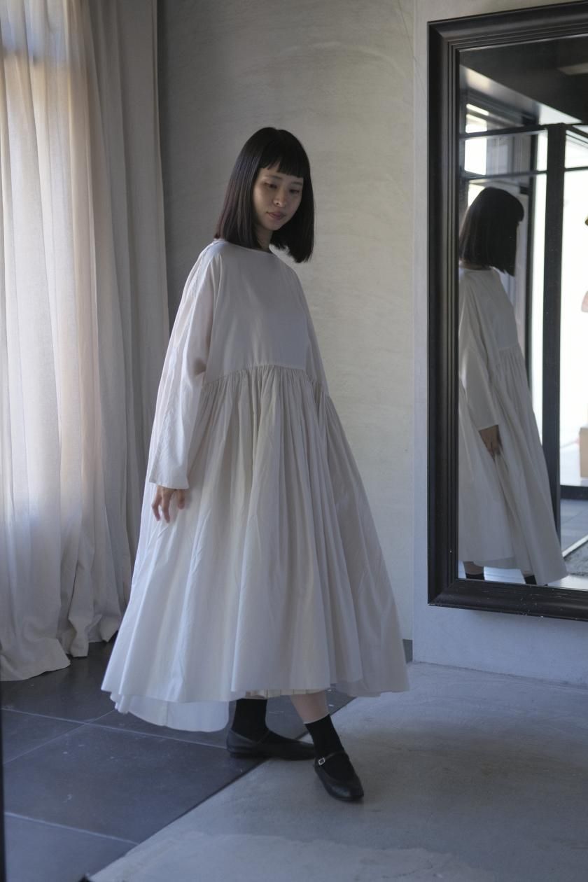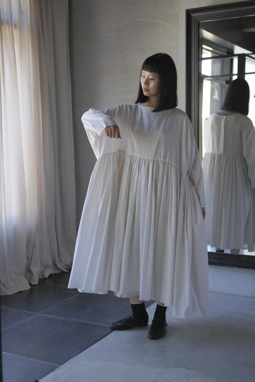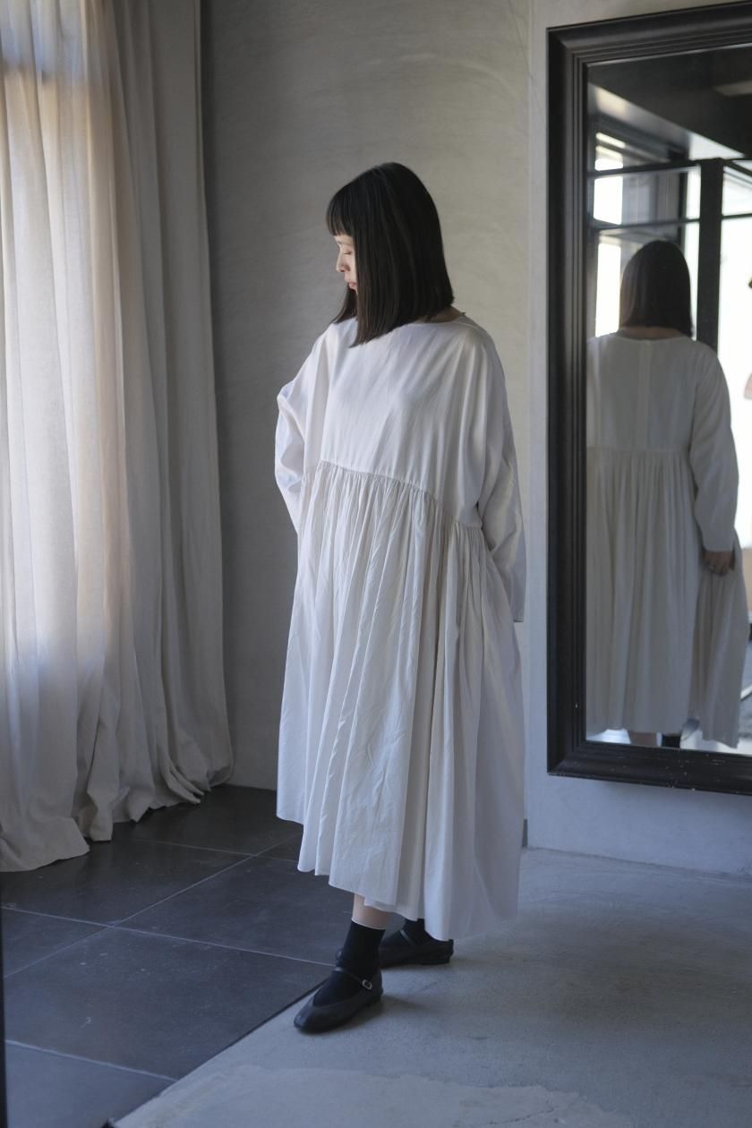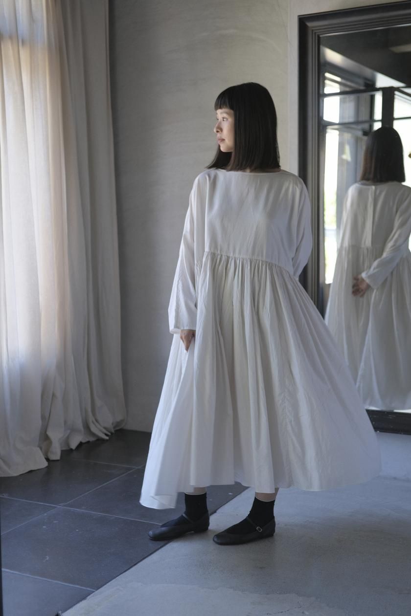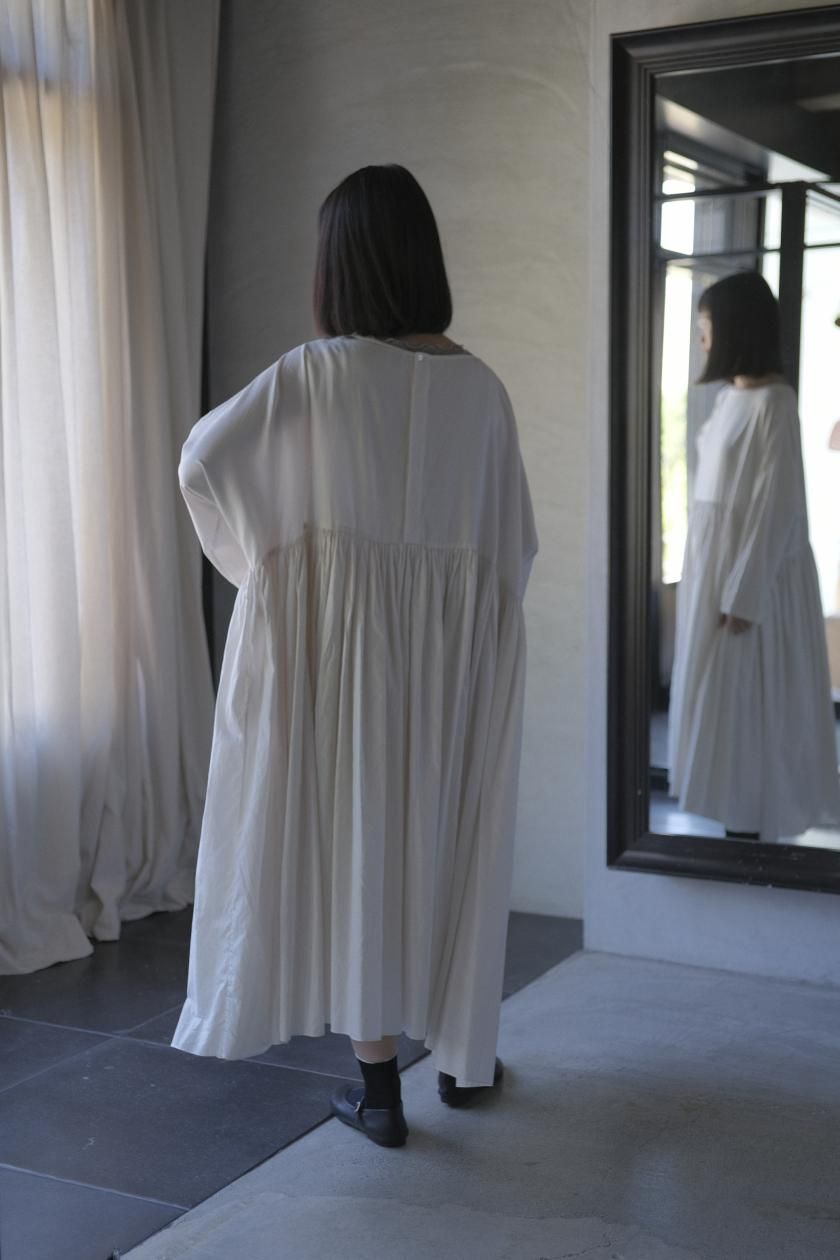 ŠP / FINE COTTON OXFORD / WIDE GATHER ONEPIECE( Vintage White )
