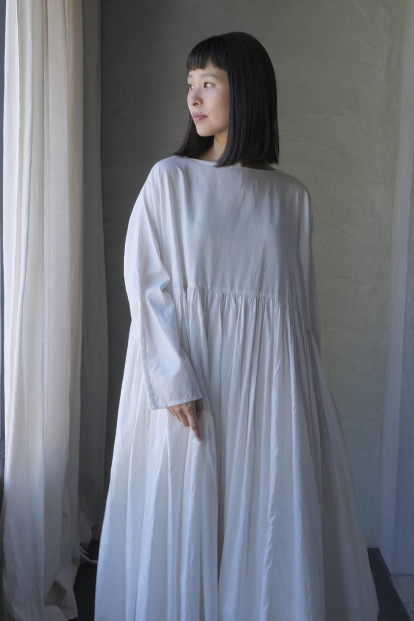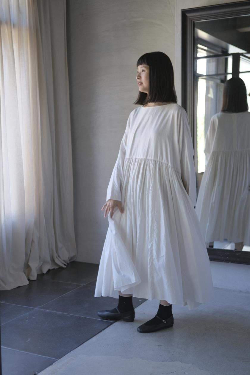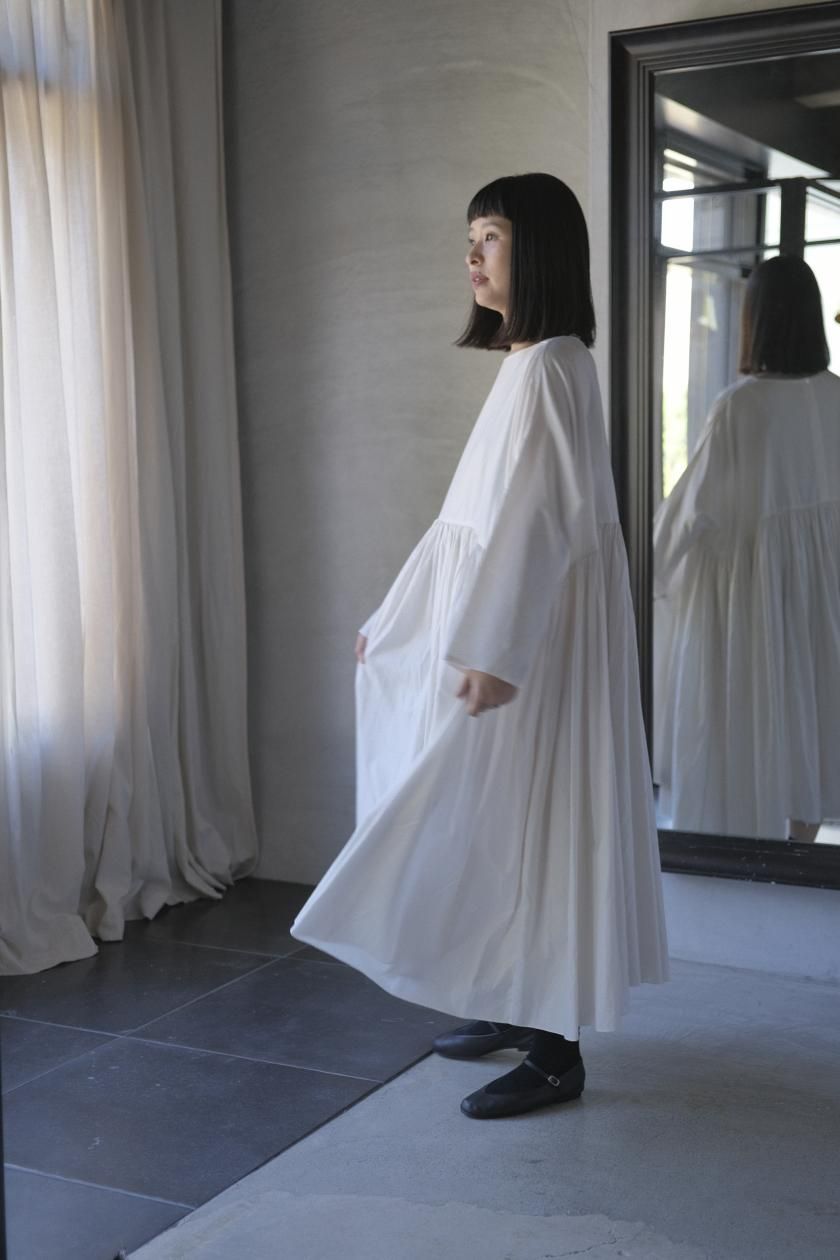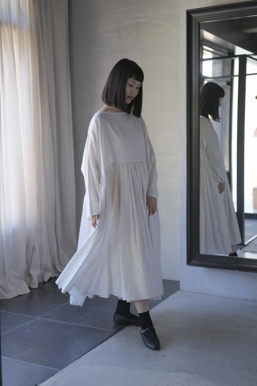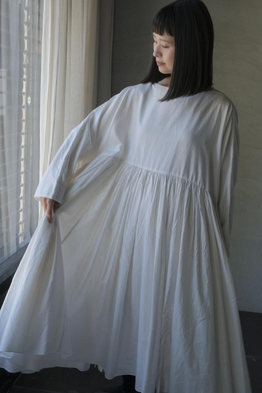 ŠP / FINE COTTON OXFORD / WIDE GATHER ONEPIECE( Vintage White )
