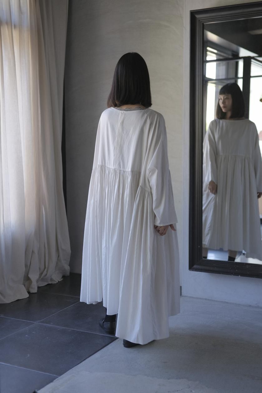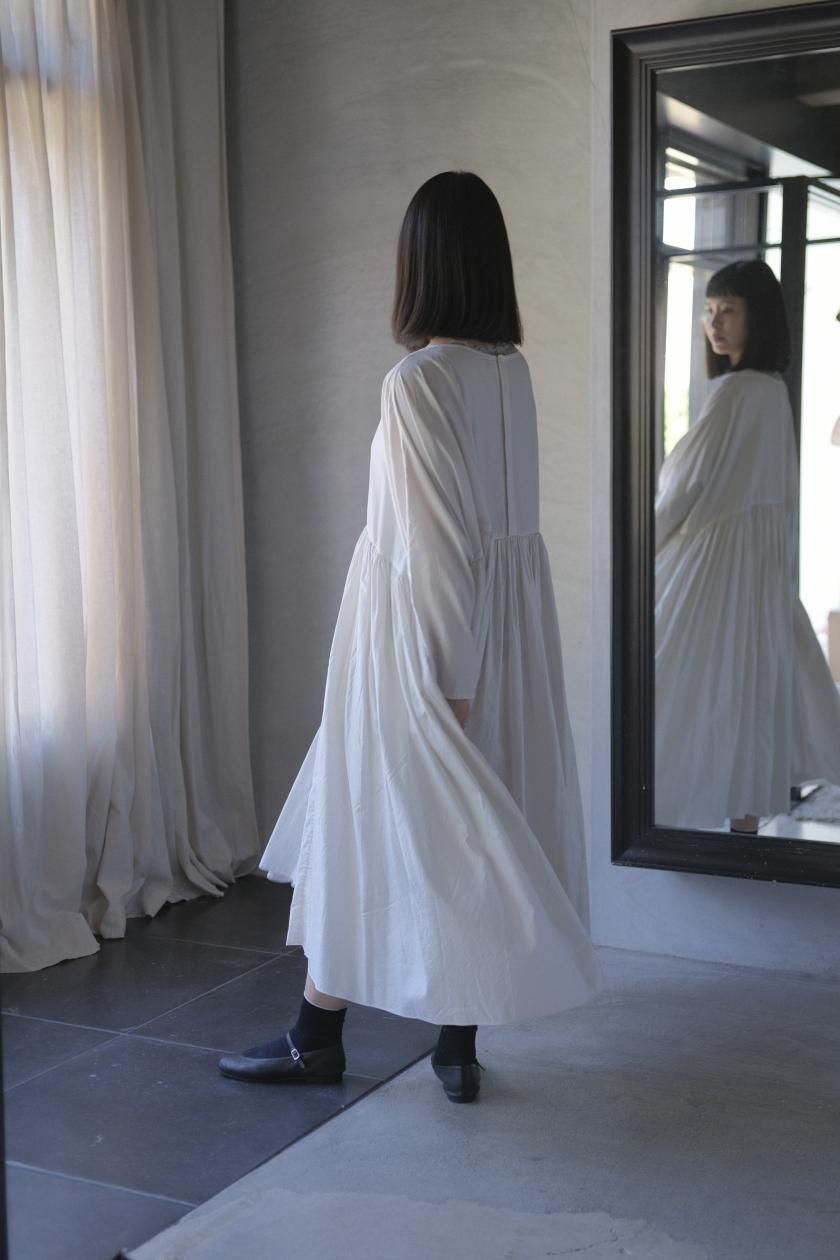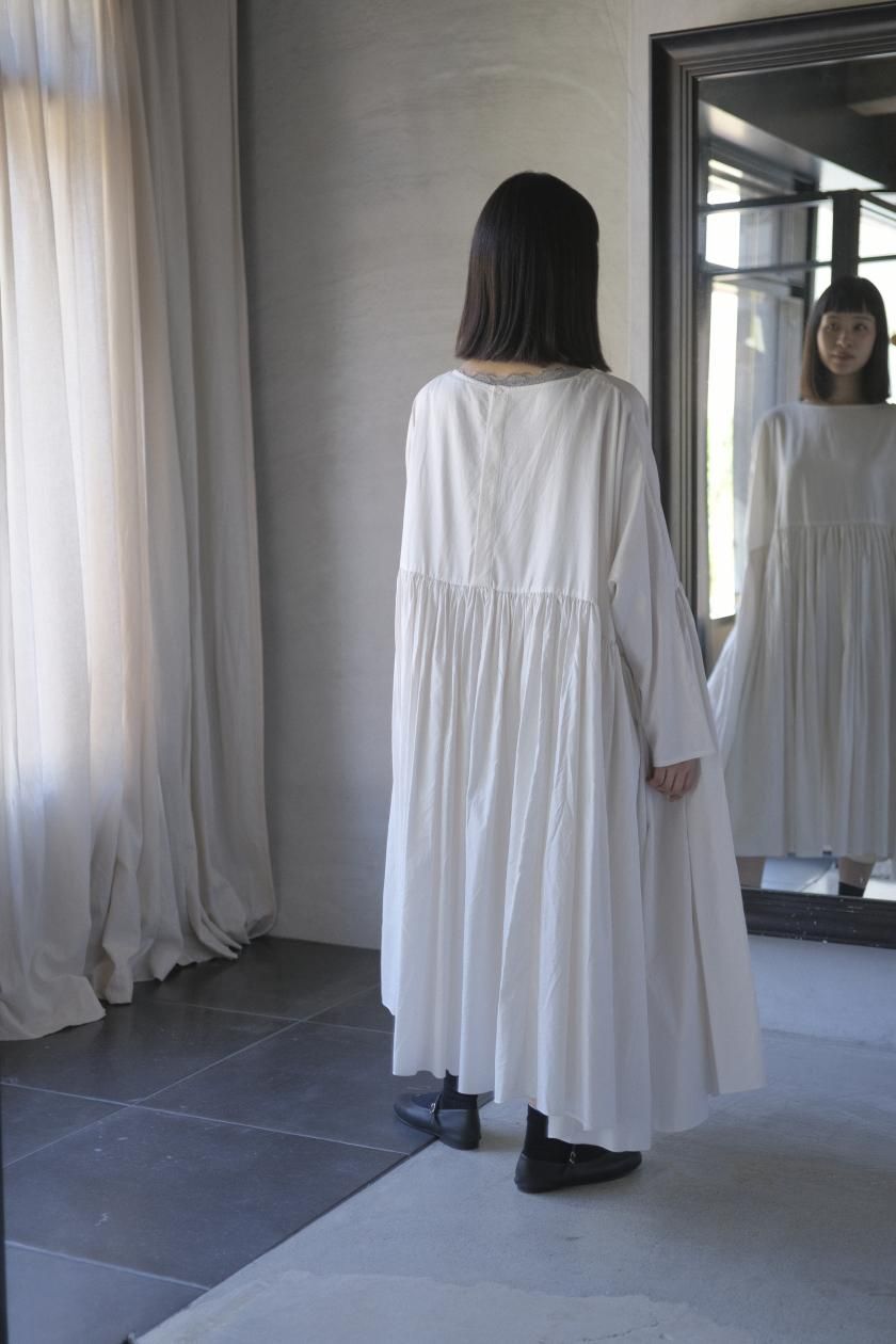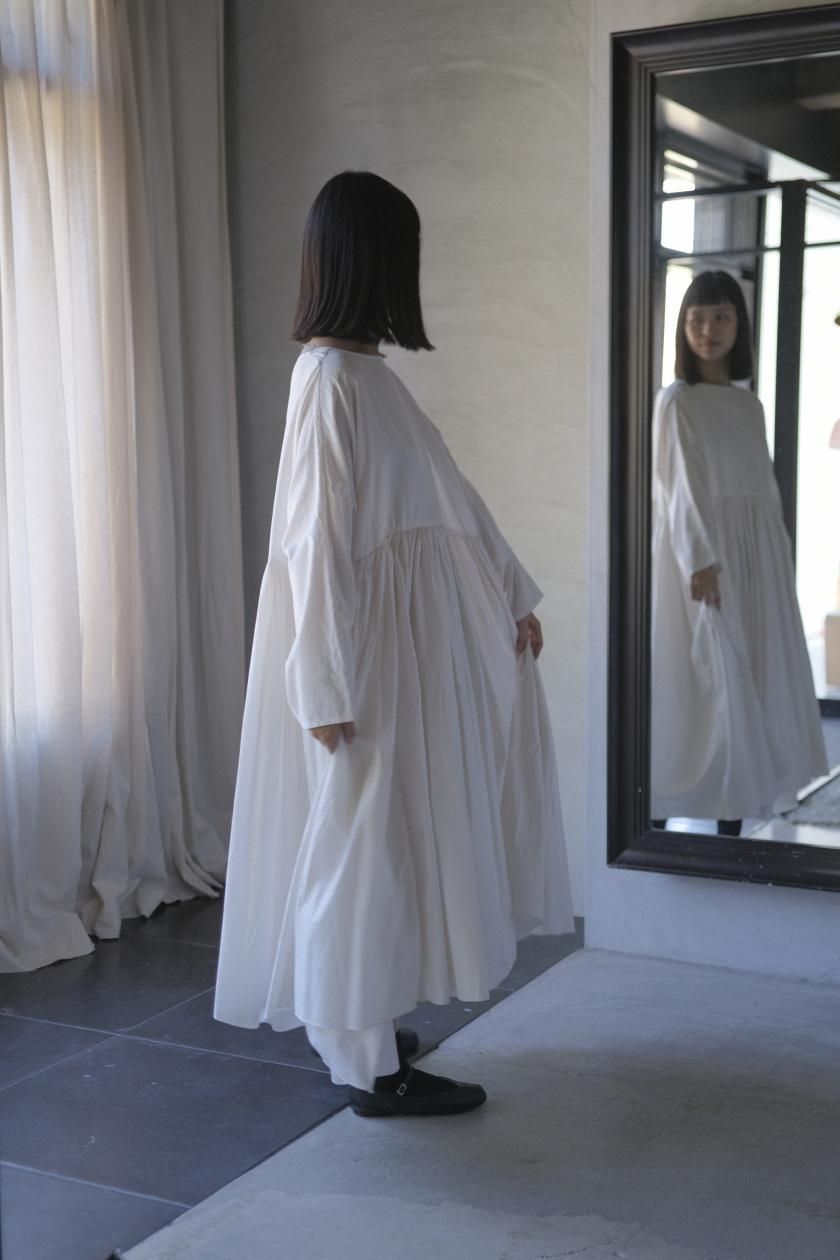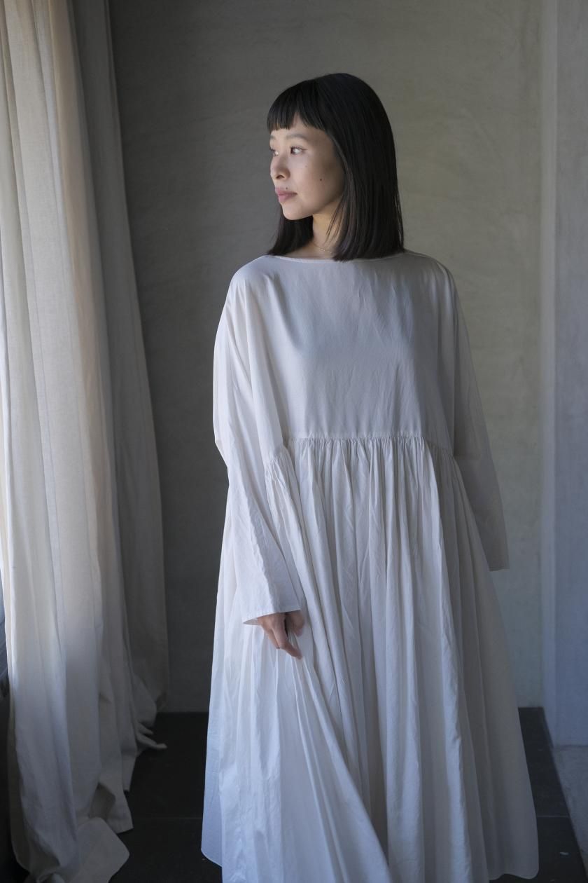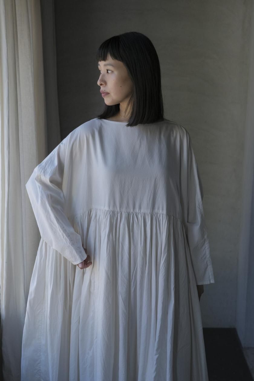 ŠP / FINE COTTON OXFORD / WIDE GATHER ONEPIECE( Vintage White )