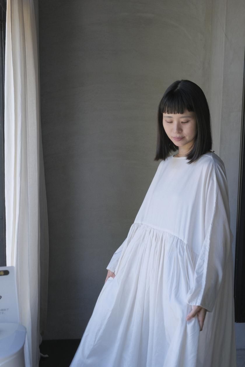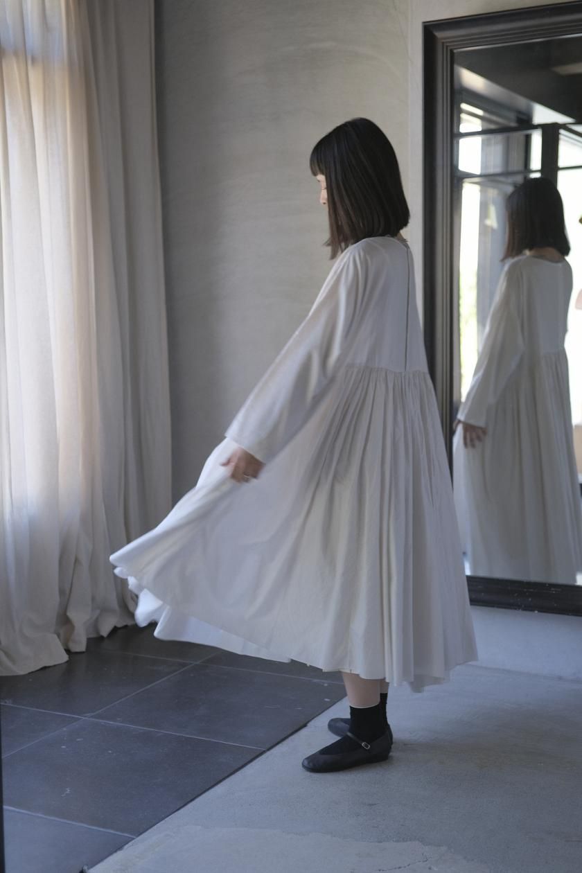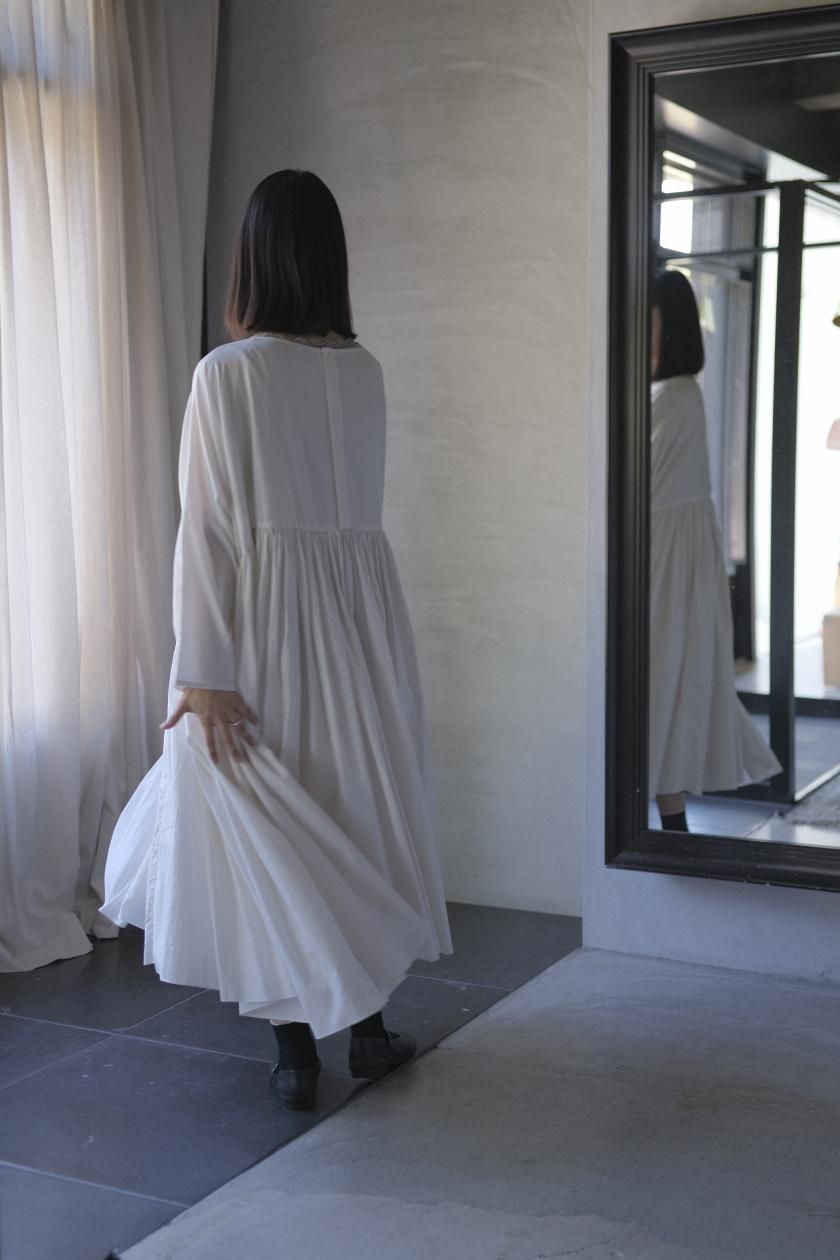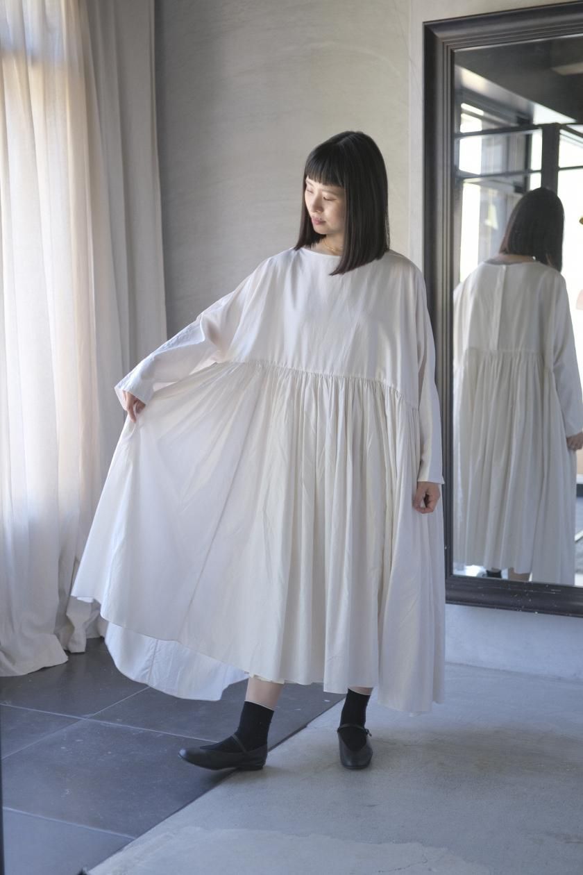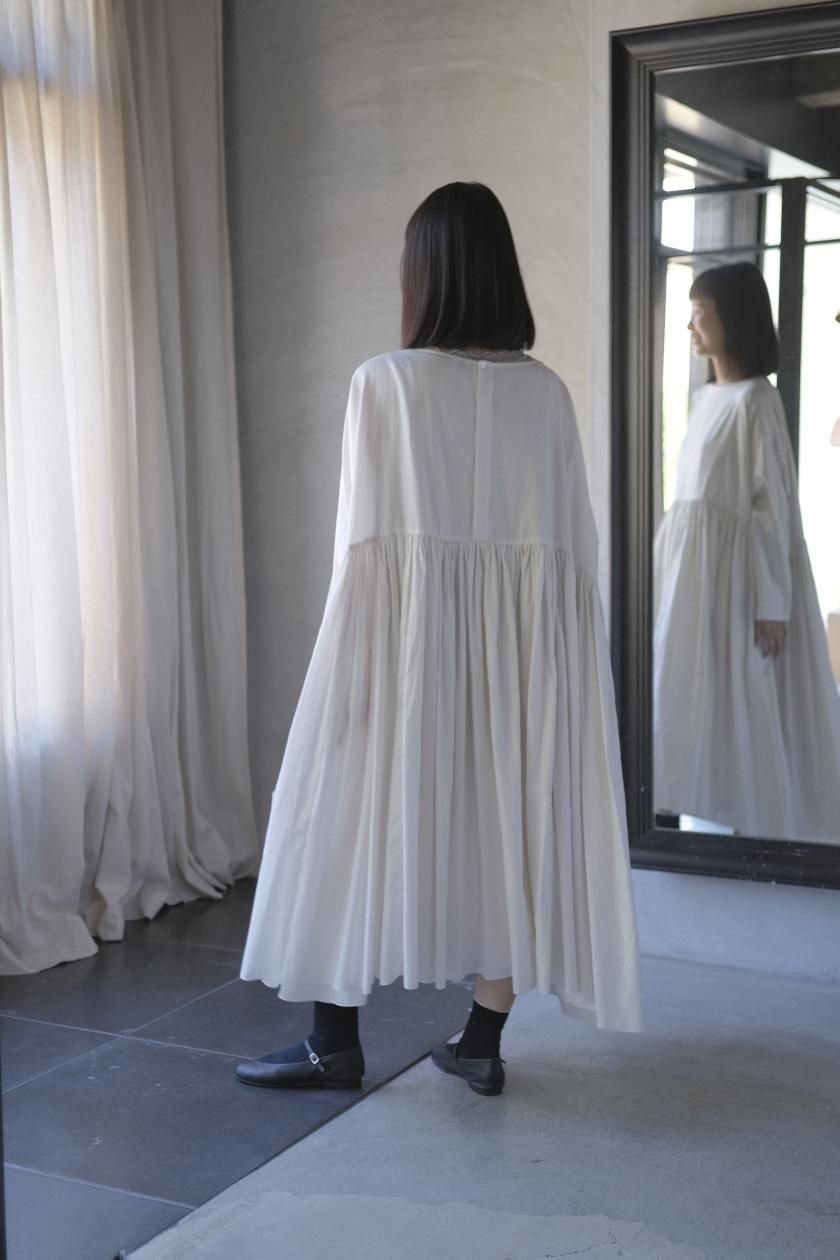 ŠP / FINE COTTON OXFORD / WIDE GATHER ONEPIECE( Vintage White )