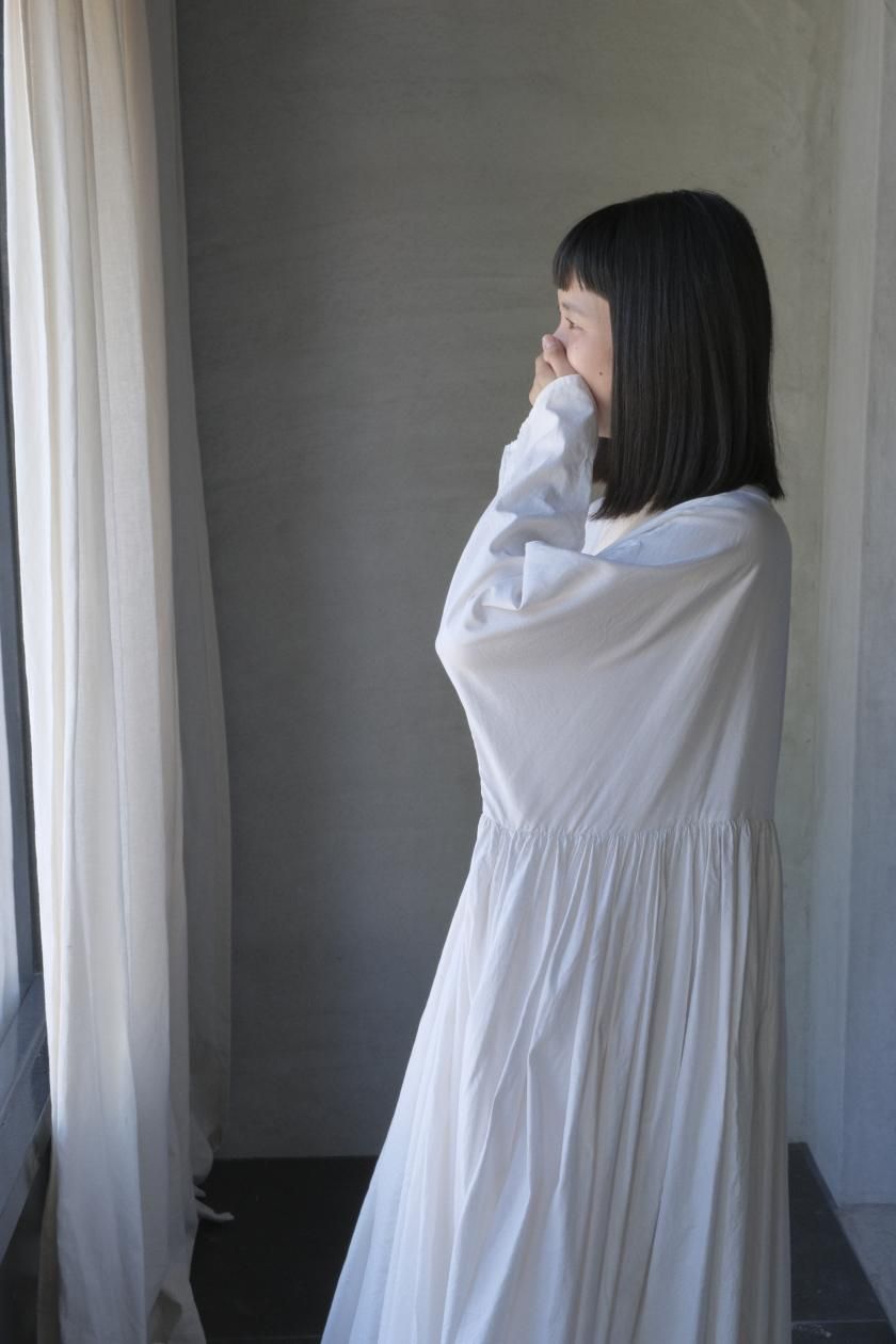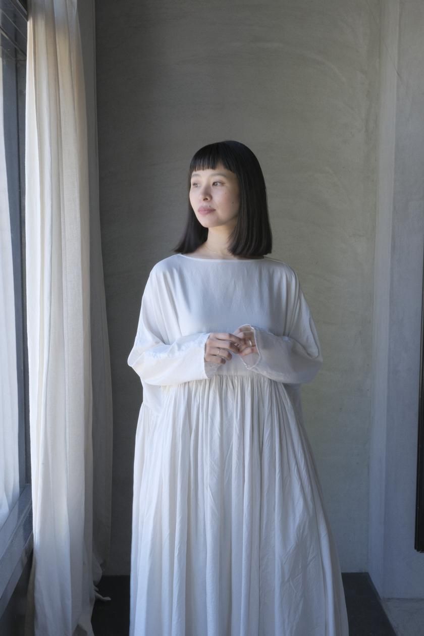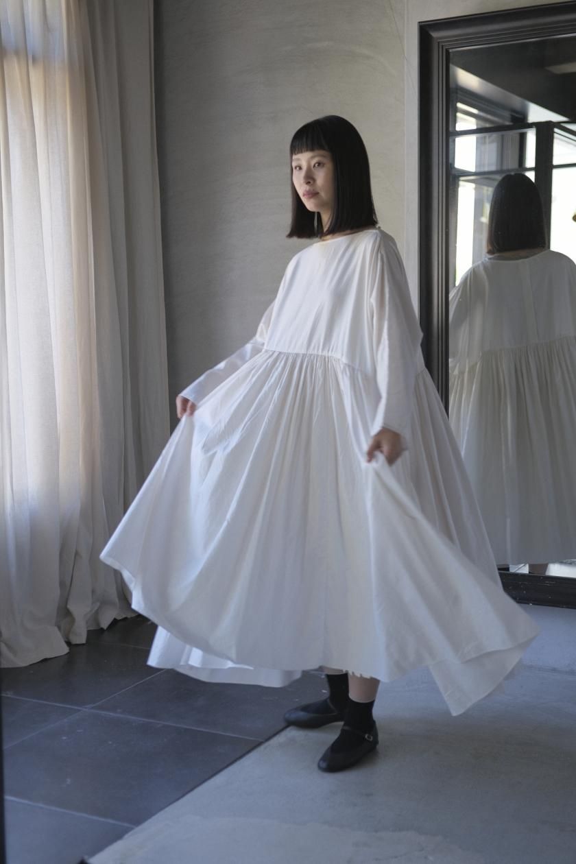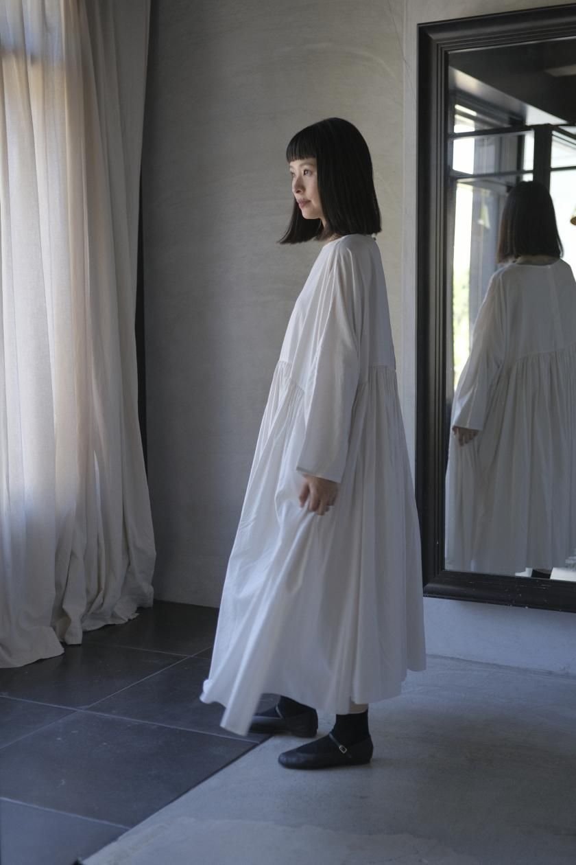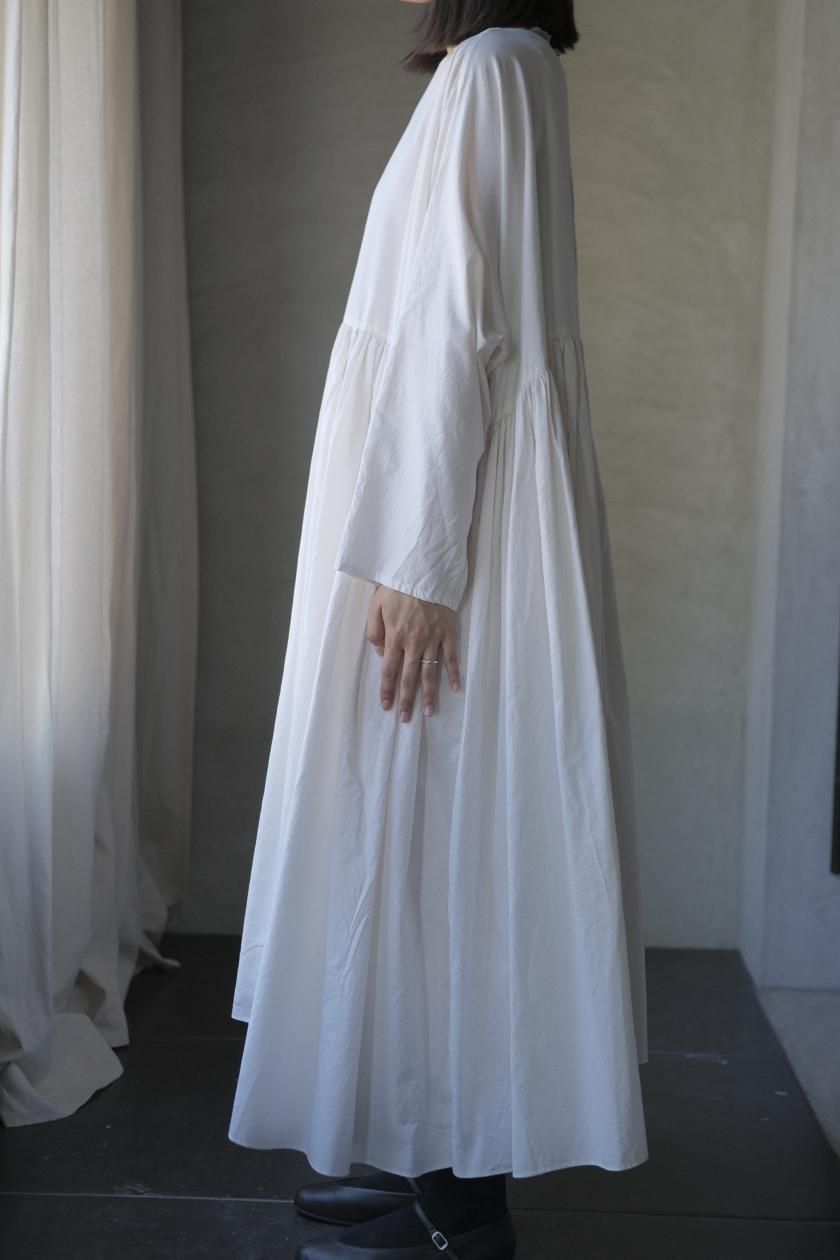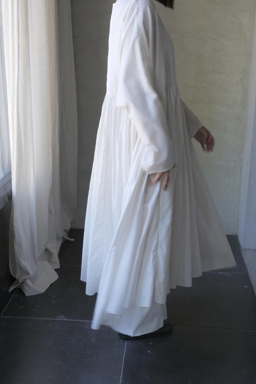 ŠP / FINE COTTON OXFORD / WIDE GATHER ONEPIECE( Vintage White )