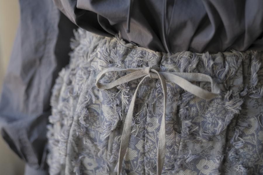 ウエスト部分に配色のリネン生地を挟み込んでいます。