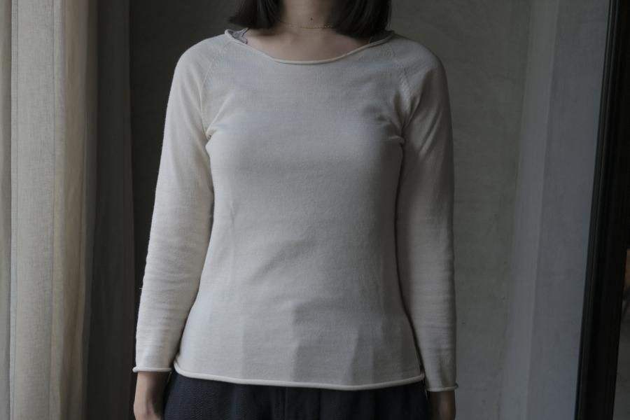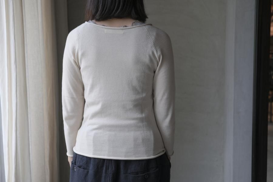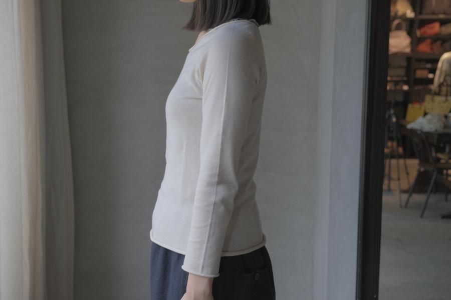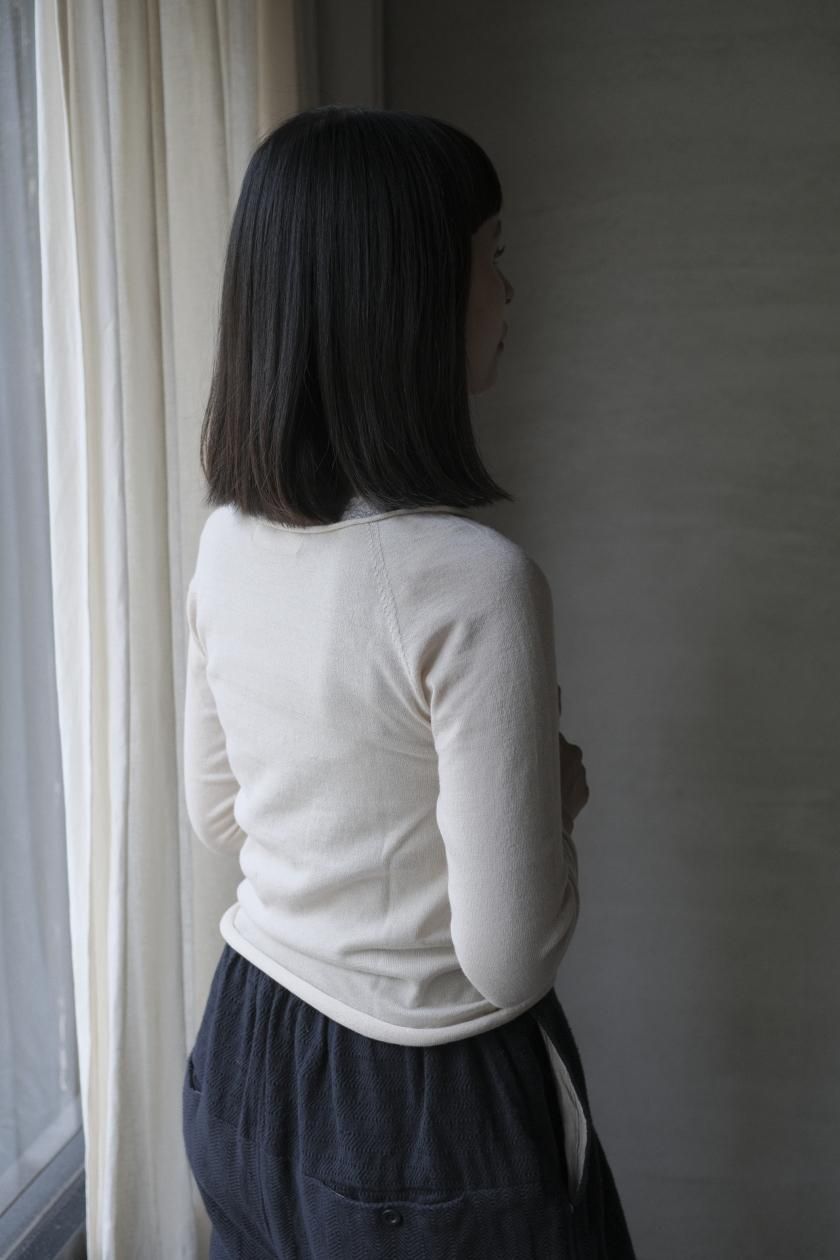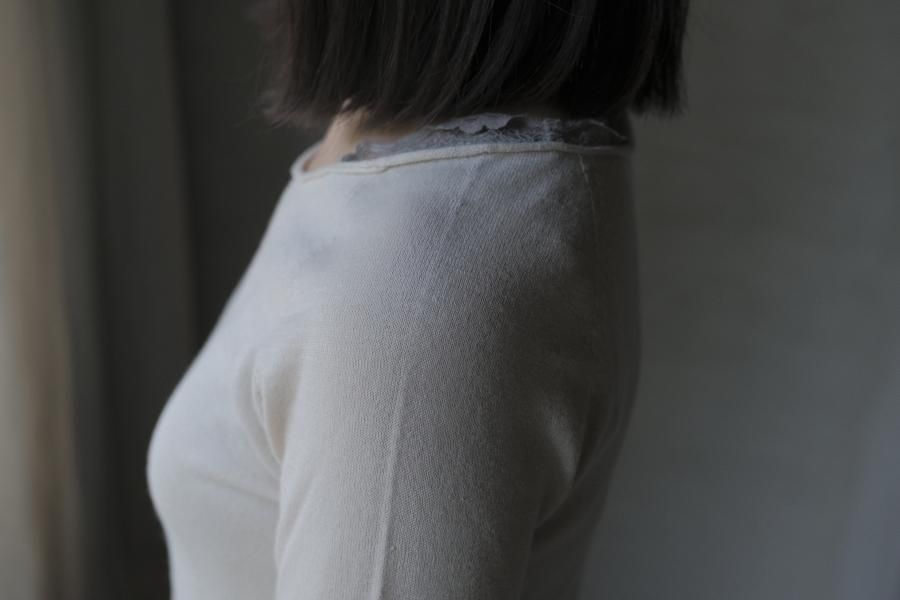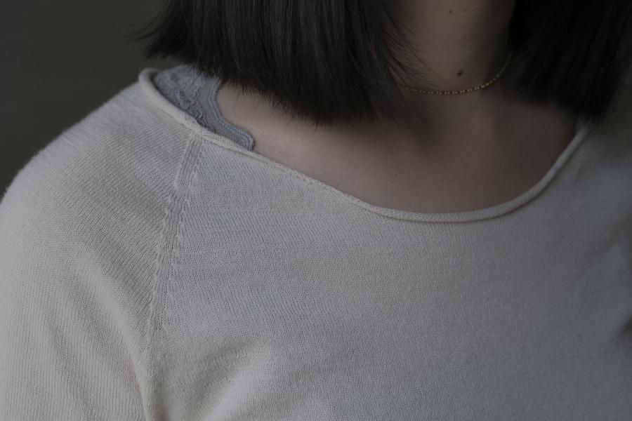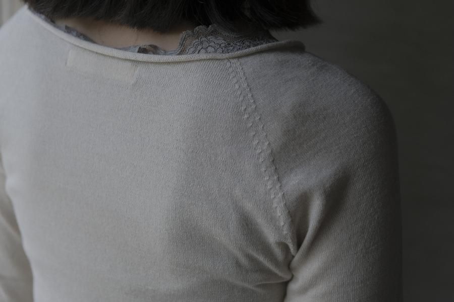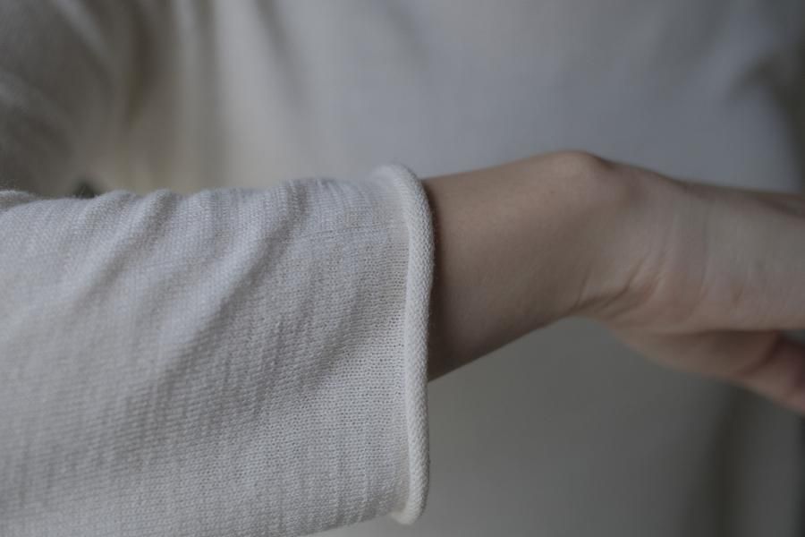 ストレッチ性のある糸を芯糸に、綿シルクの混紡糸を表面に巻き付けることで肌に触れる部分は綿シルクのやさしい肌触りが、とても心地よいインナーシリーズになります。薄手で軽やかな素材ながら、伸縮もありストレスなく着用できます。