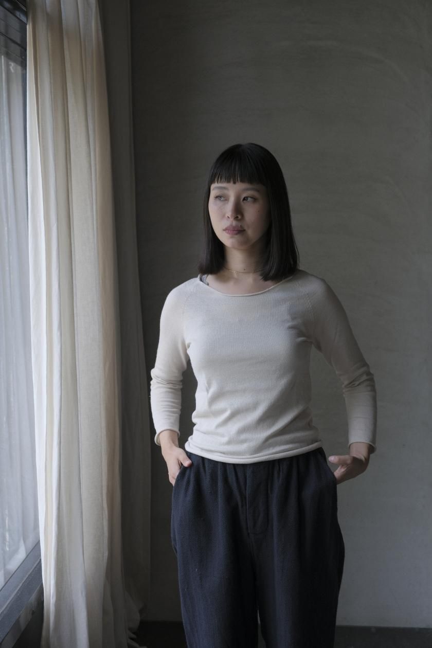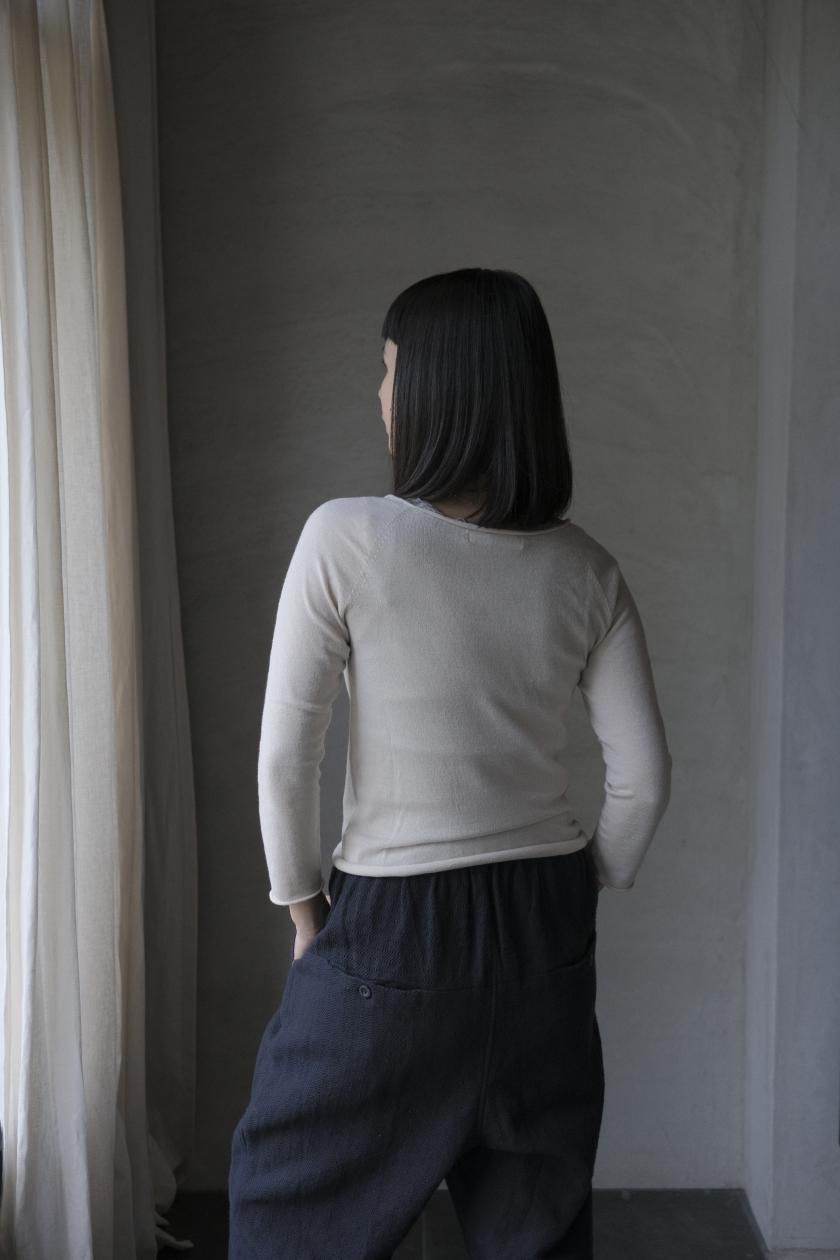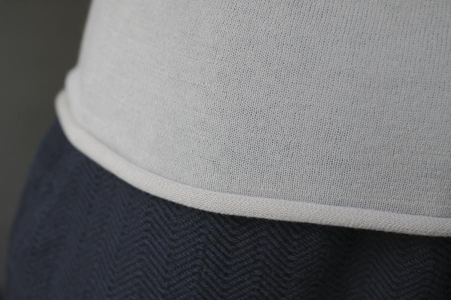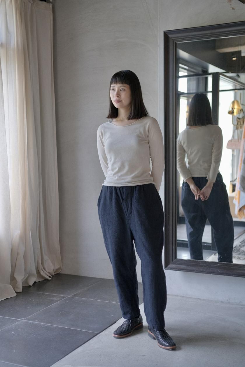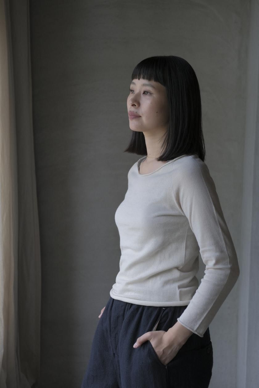 ストレッチ性のある糸を芯糸に、綿シルクの混紡糸を表面に巻き付けることで肌に触れる部分は綿シルクのやさしい肌触りが、とても心地よいインナーシリーズになります。薄手で軽やかな素材ながら、伸縮もありストレスなく着用できます。