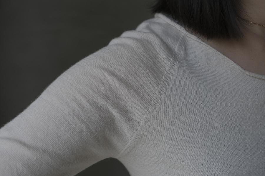 着脱の際、製品(衿ぐり・脇下等)に強い力がかかりますと糸切れの原因になります。着脱の際は十分にお気を付けください。