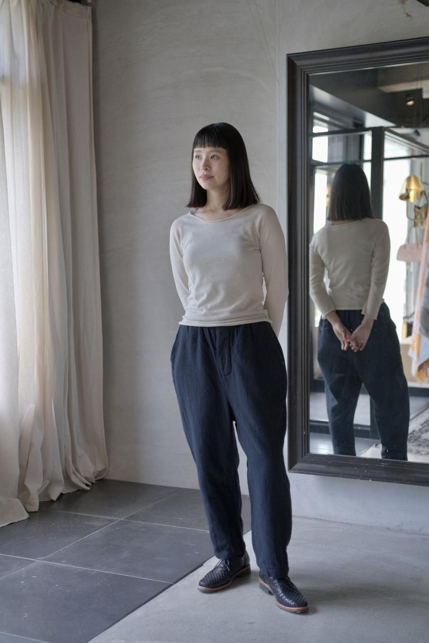 ・全てが手作業の生産工程となります。小さな汚れや生地のヨレ、糸のフシなどが見られますが手作業の味としてご理解をお願いします。