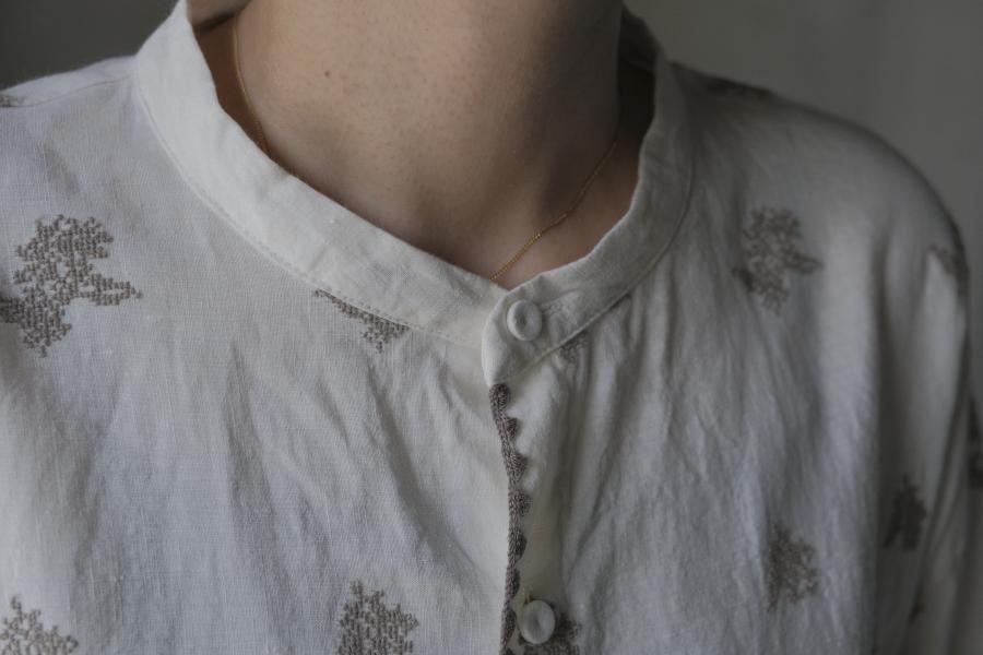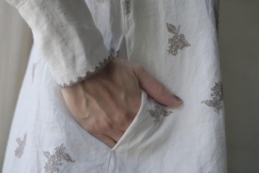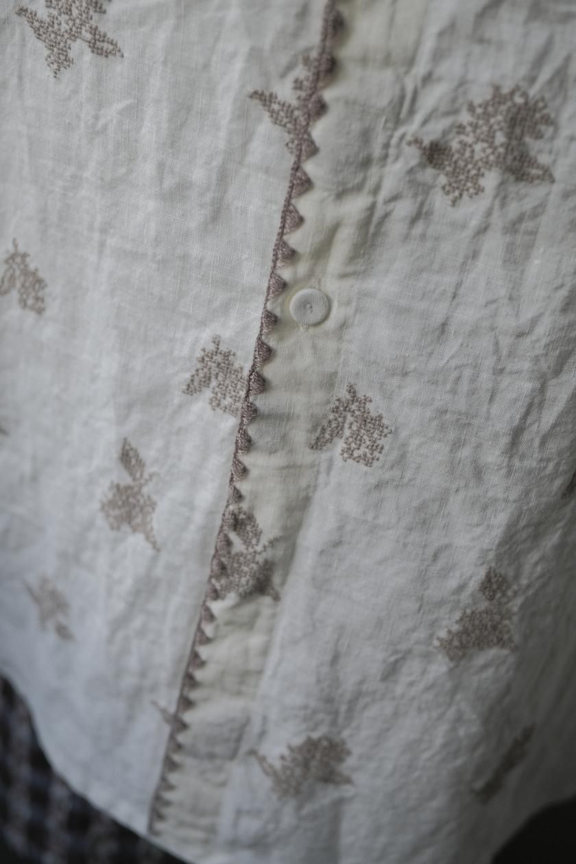 こちらは60/-の高密度リネンに刺繍したシリーズ。