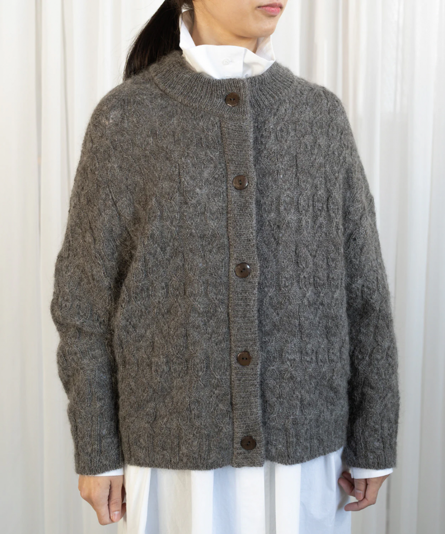 muuc / アルパカモヘヤ模様編みカーディガン (グレー)