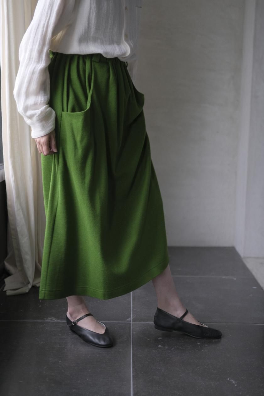 atelier naruse / ウールポンチギャザースカート(グリーン)
