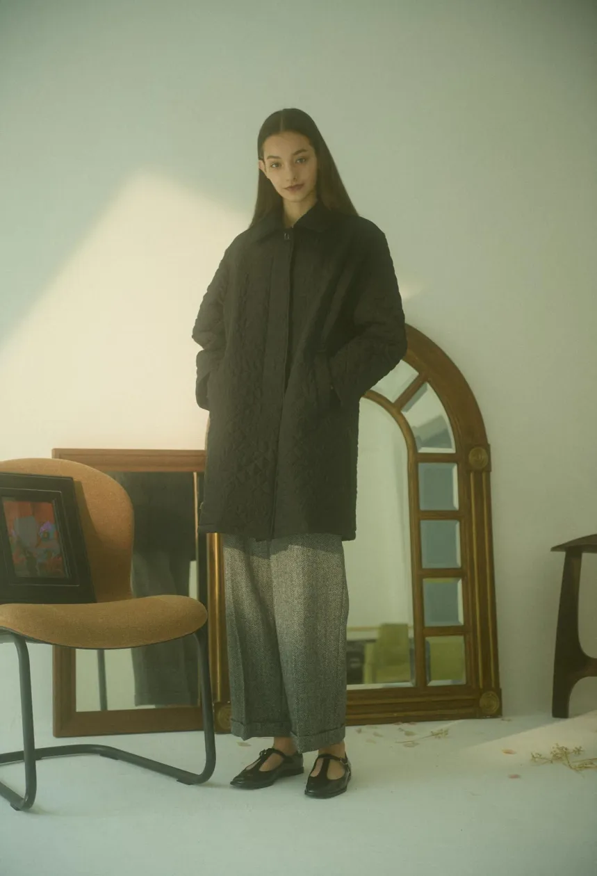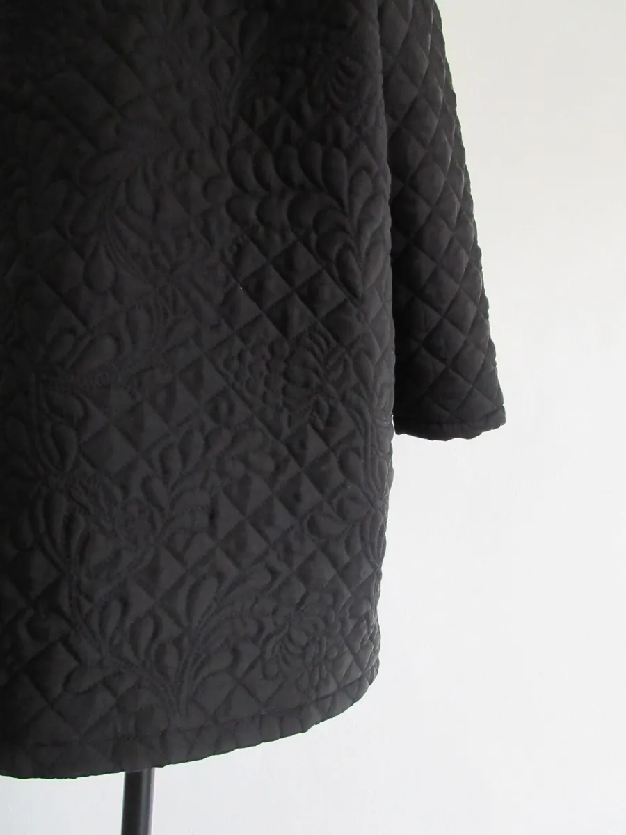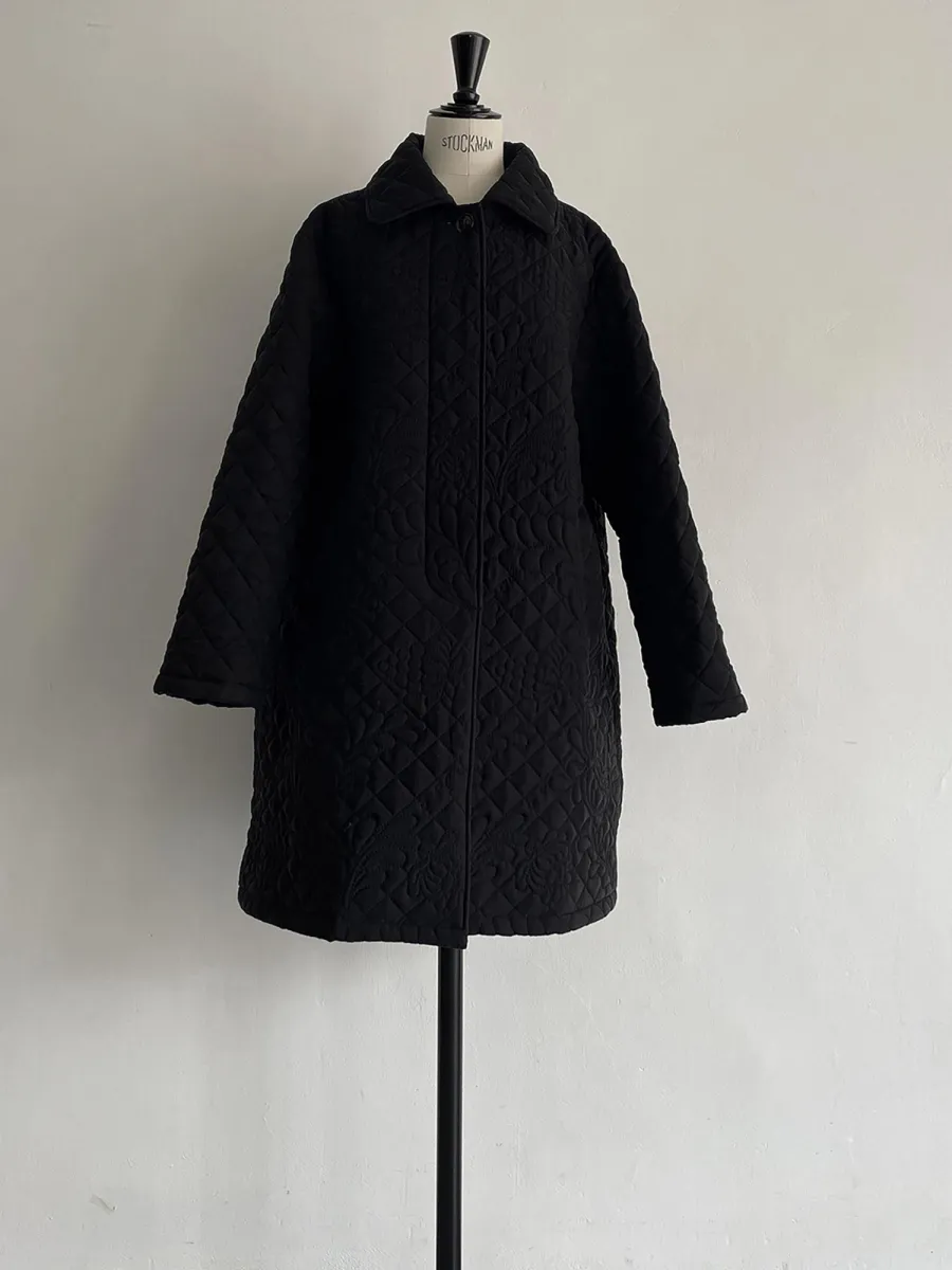 オリジナルの図案で、 キュプラの生地に中わたをサンドして刺繍を施したキルトコートです。