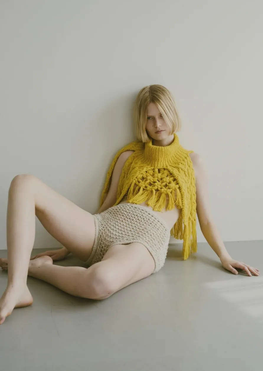 今シーズンはマクラメやタッセルに加え、毎シーズン共通する複雑な編地からコレクションを展開した。