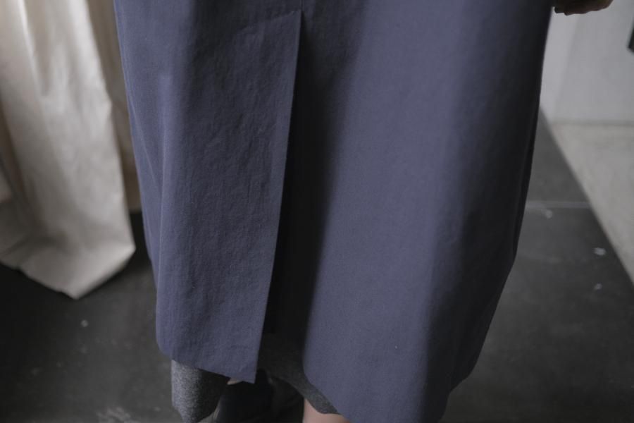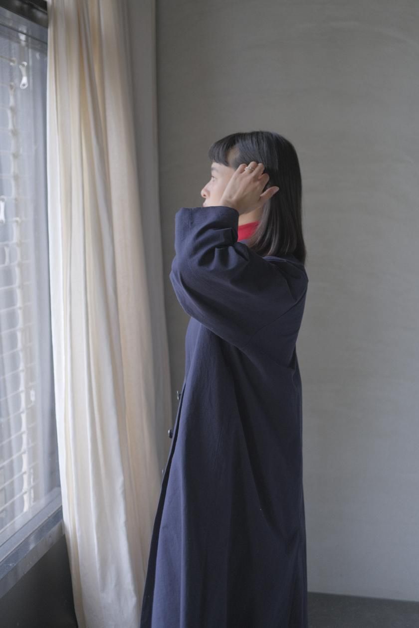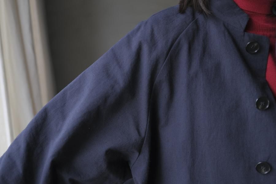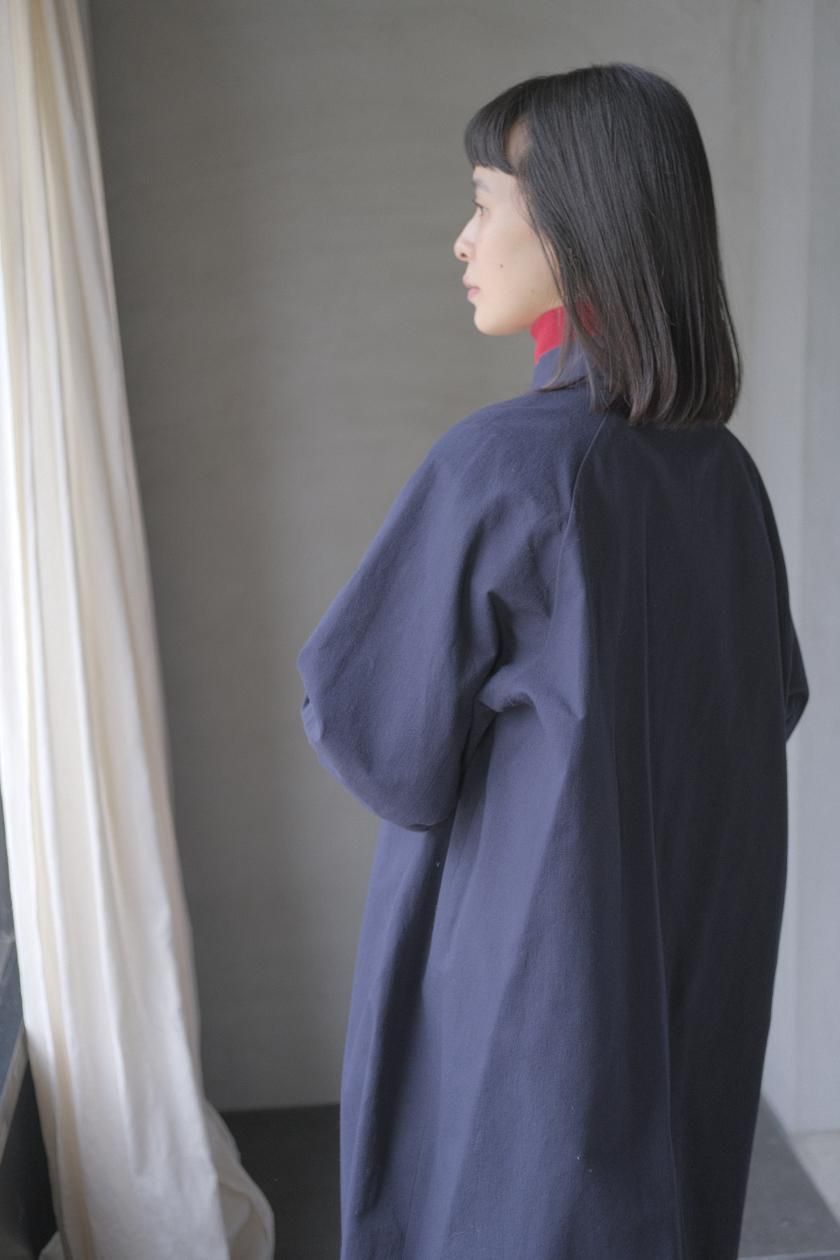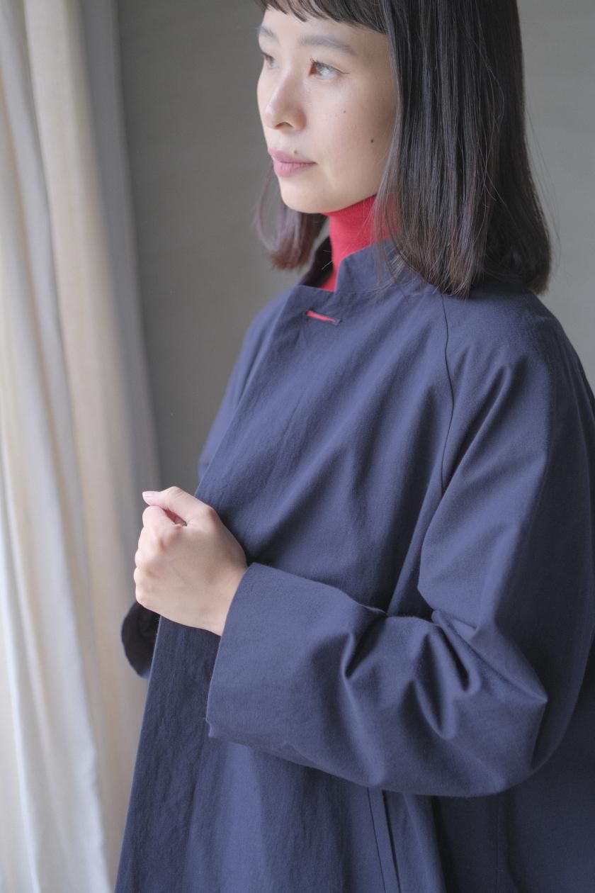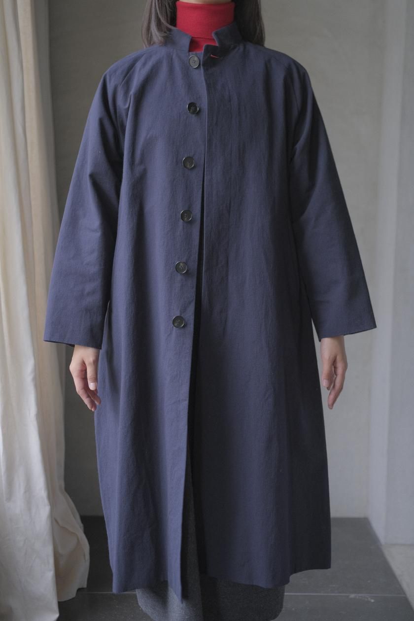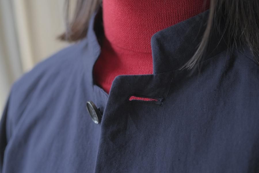 2022 a/wコレクションに初登場したコットンヘンプのスタンドカラーコート。2025 a/w は、新色「カーキ」が加わり、3色展開で登場します。