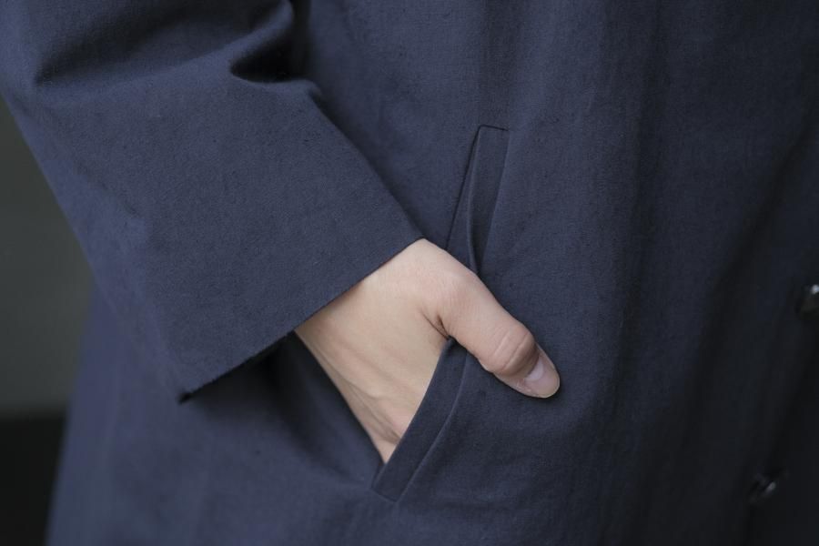 ・密度のある表地とコットンシーチングの総裏のため多少の重さはありますが、そのぶん風を通しにくく、保温性に優れています。
