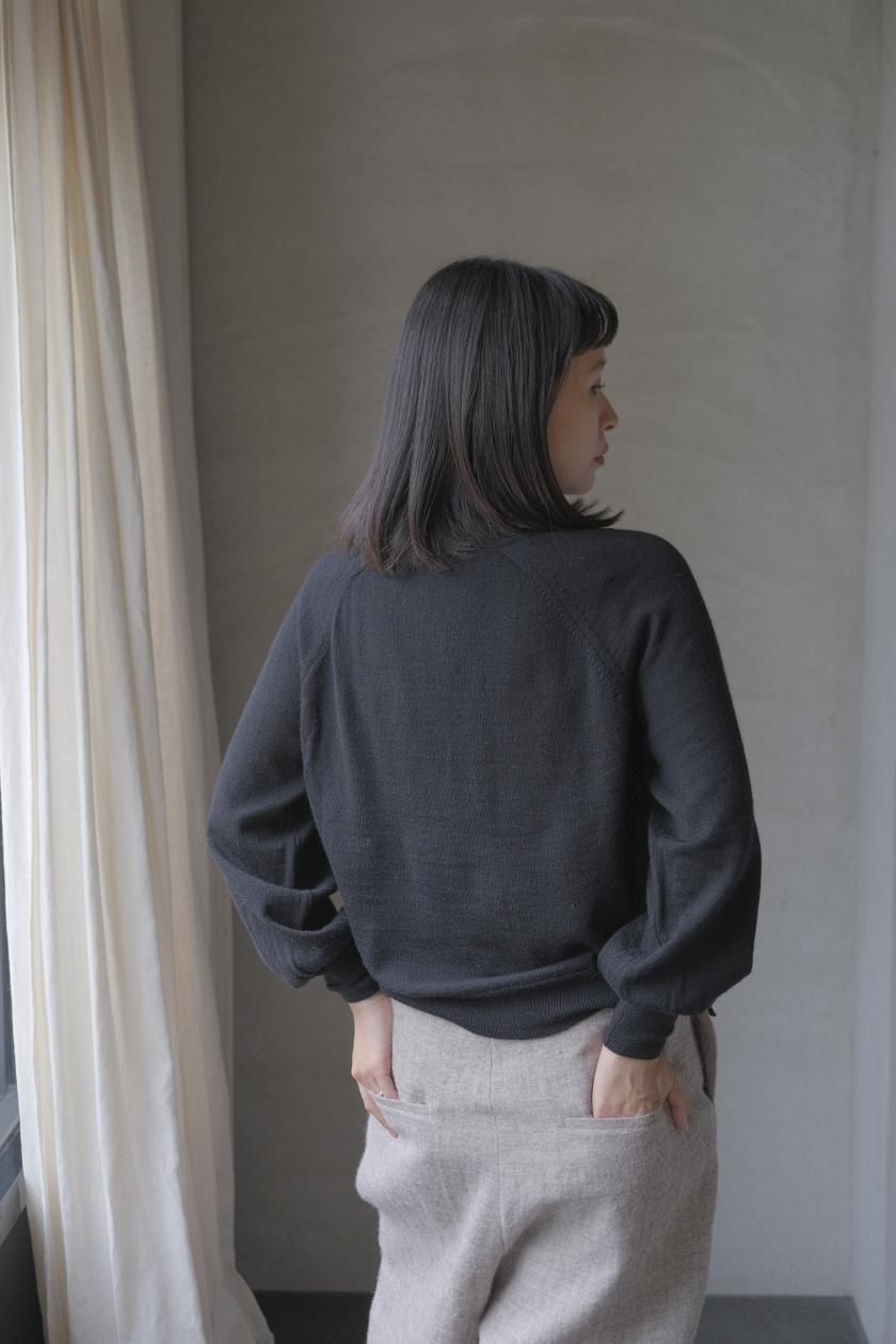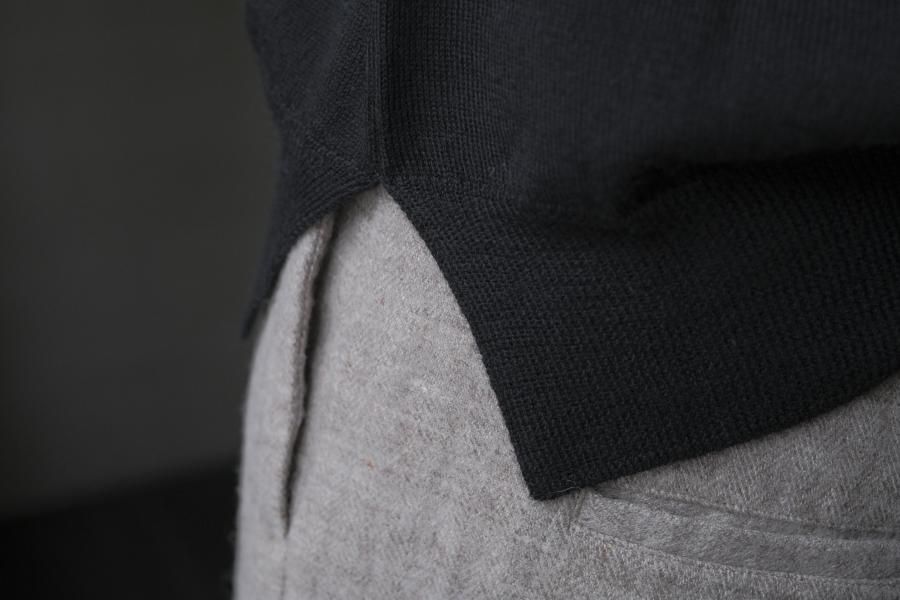 ・ほどよく厚みがある糸を度目(どもく)をつめて編むことで、風をさらに通しにくい、さらにあたたかな一着に仕上げています。