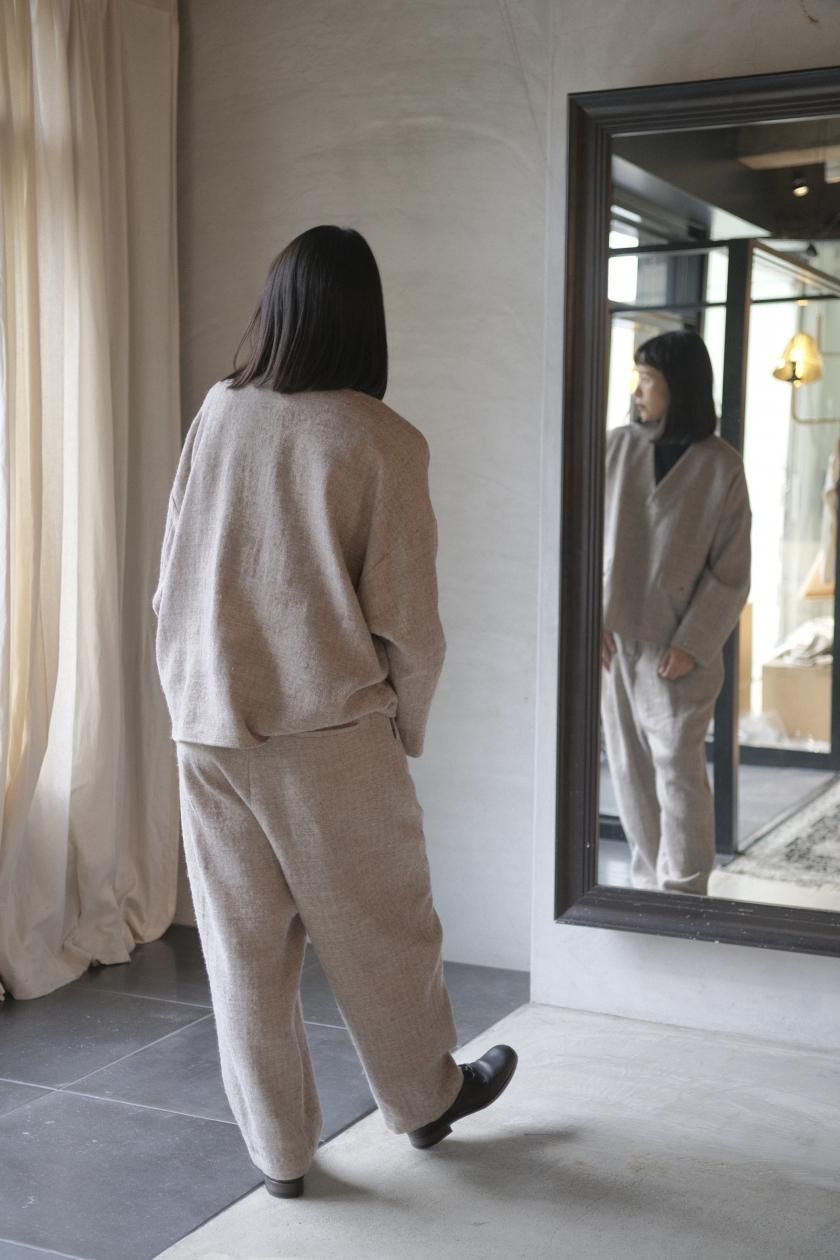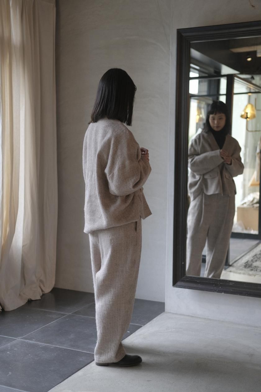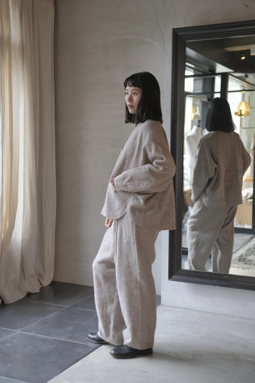 また、同素材の『na-f02064|2色展開|shetland wool linen smock』とセットアップしてのコーディネートもおすすめです。