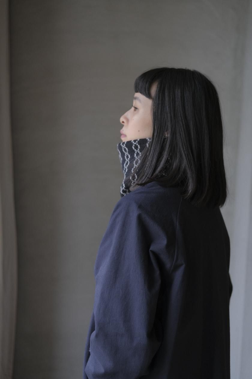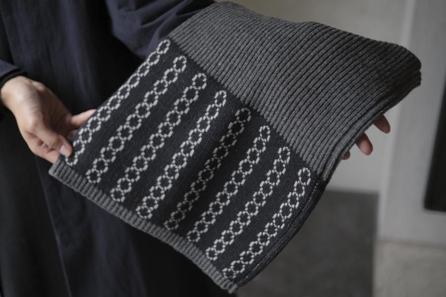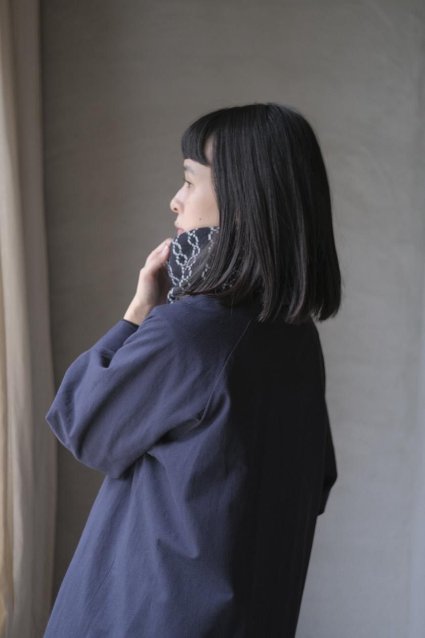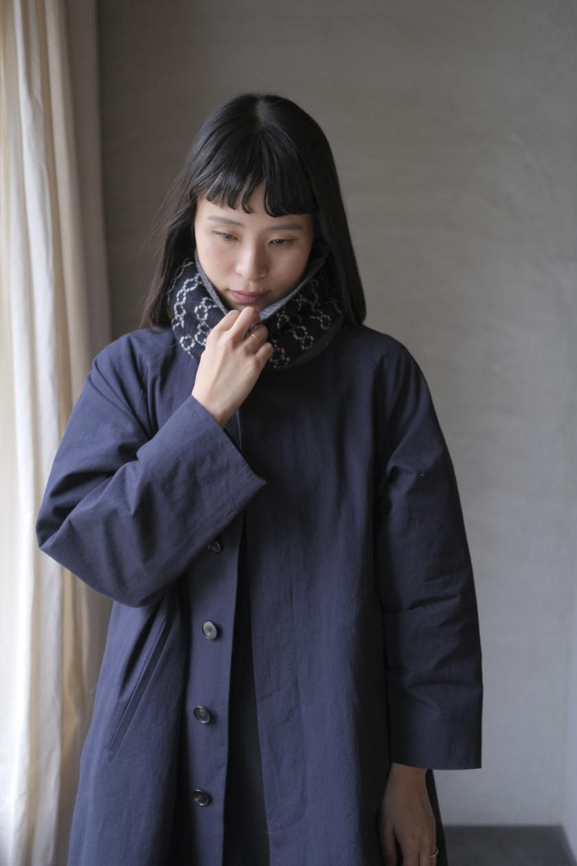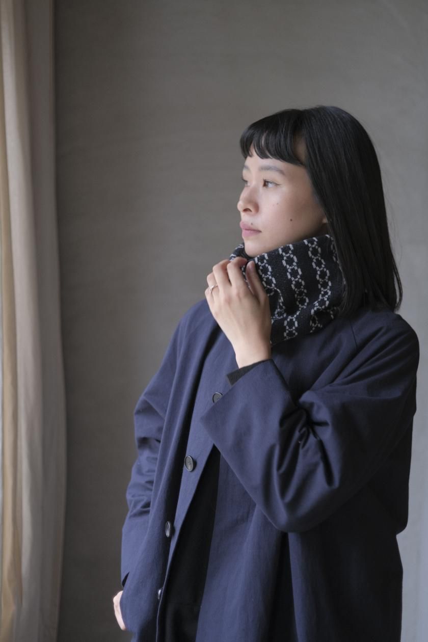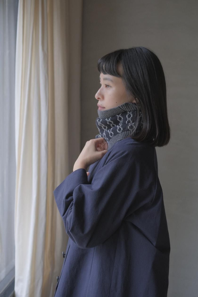 ・リブとジャガードの境目をふたつ折にして、首からかぶる仕様のかわいい防寒アイテムです。