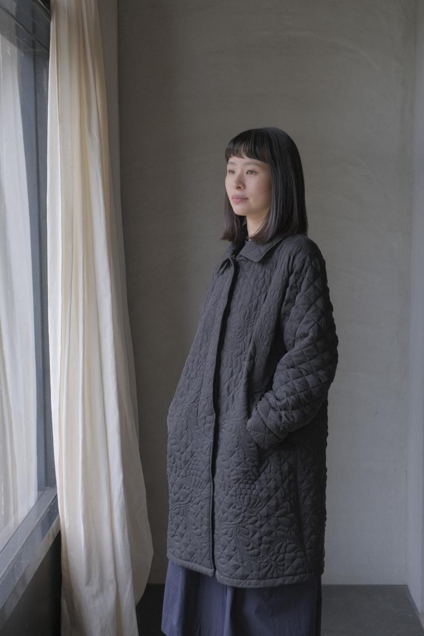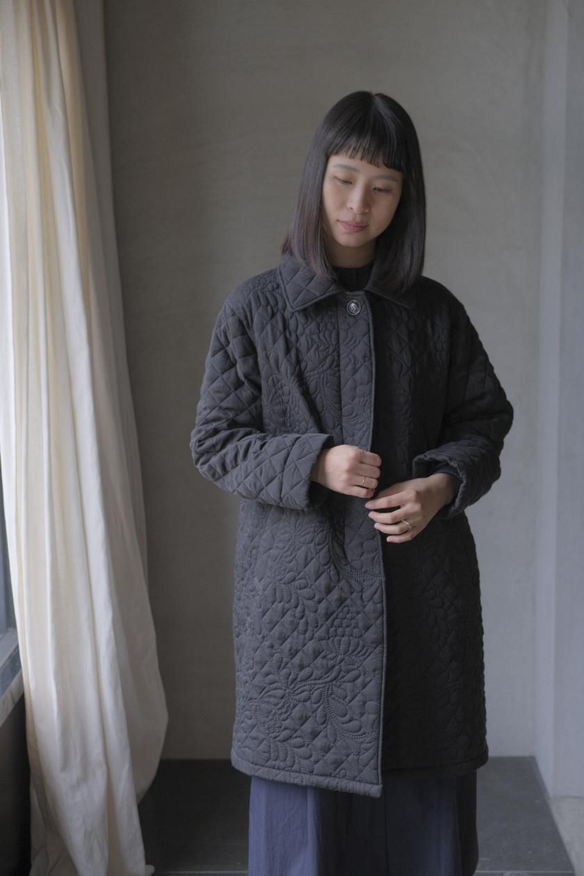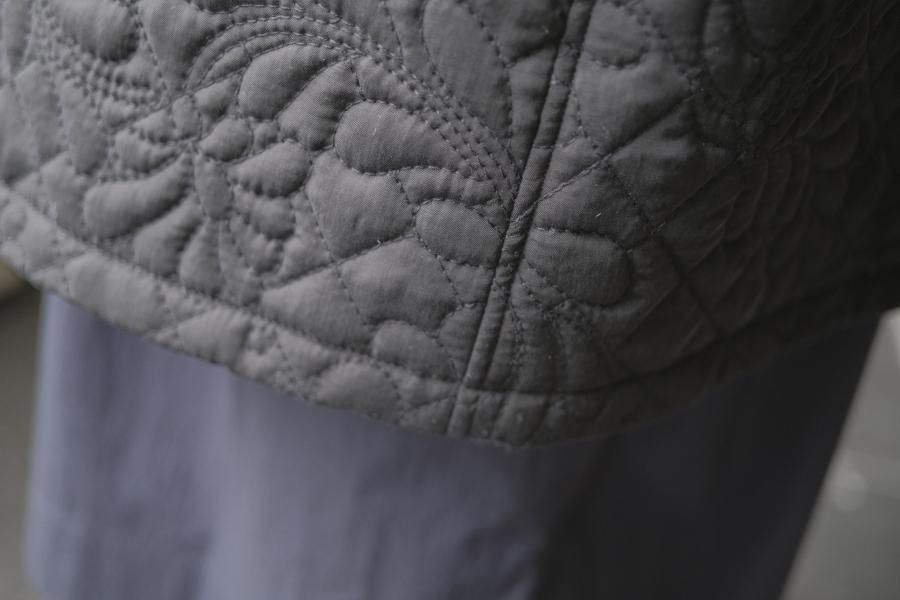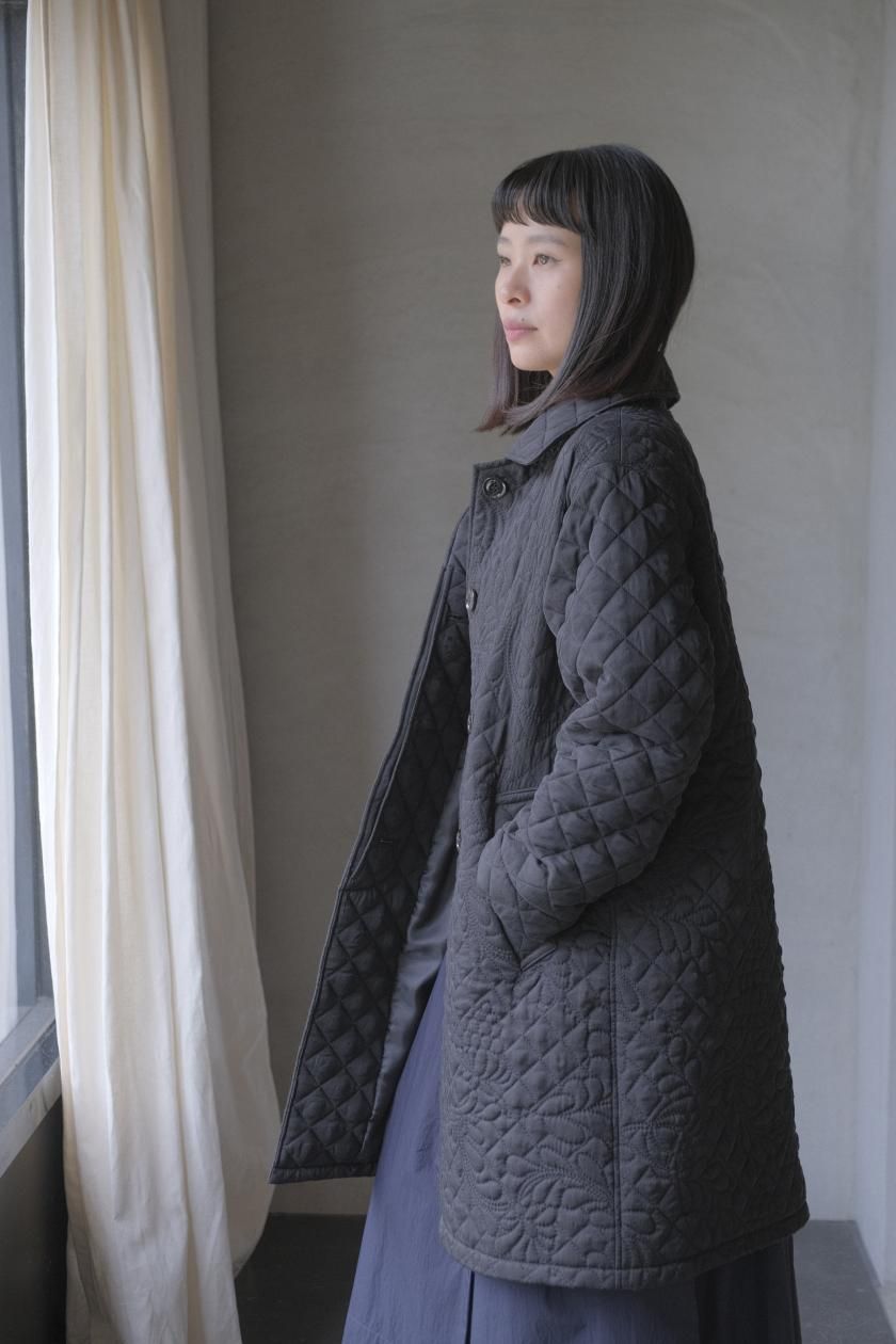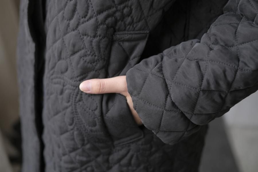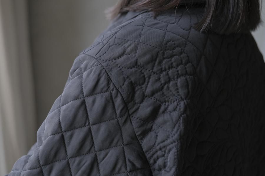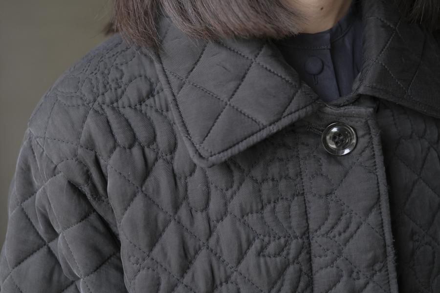 オリジナルの図案で、 キュプラの生地に中わたをサンドして刺繍を施したキルトコートです。