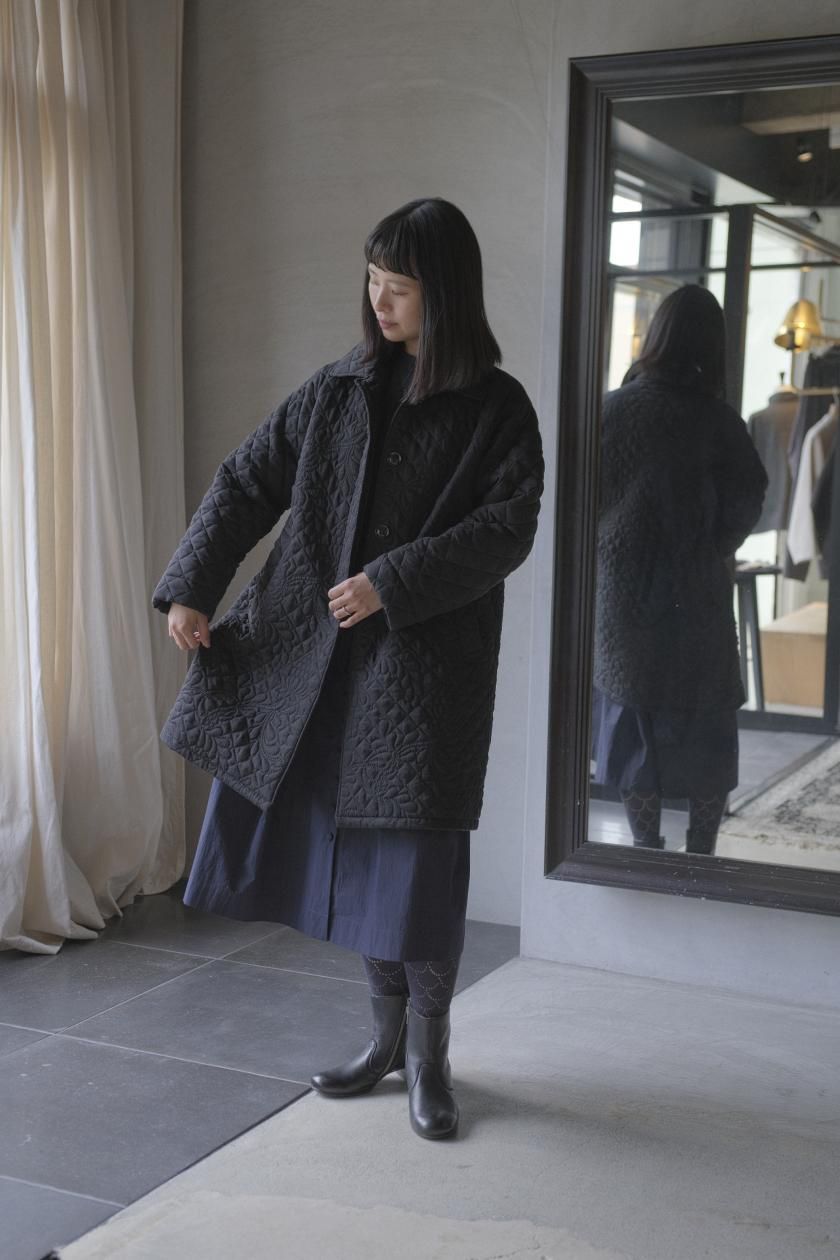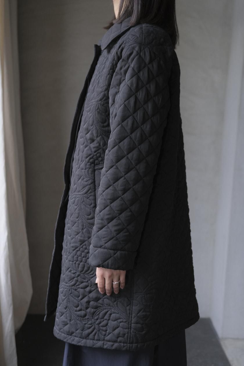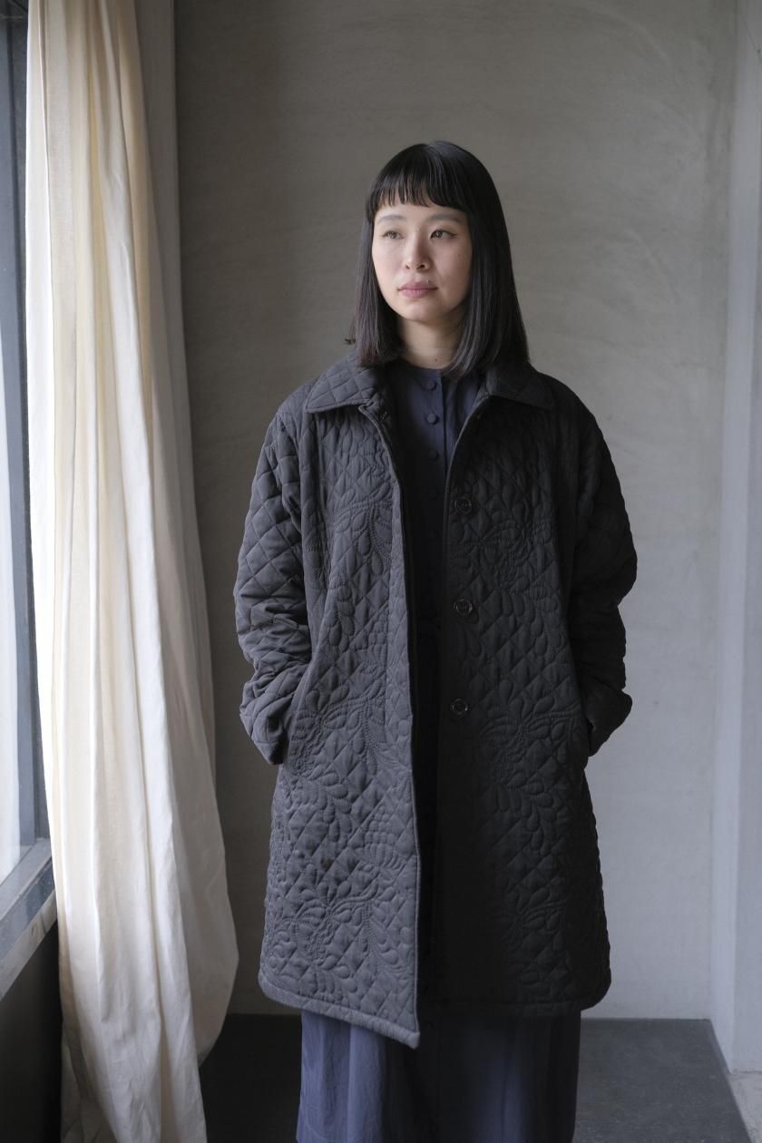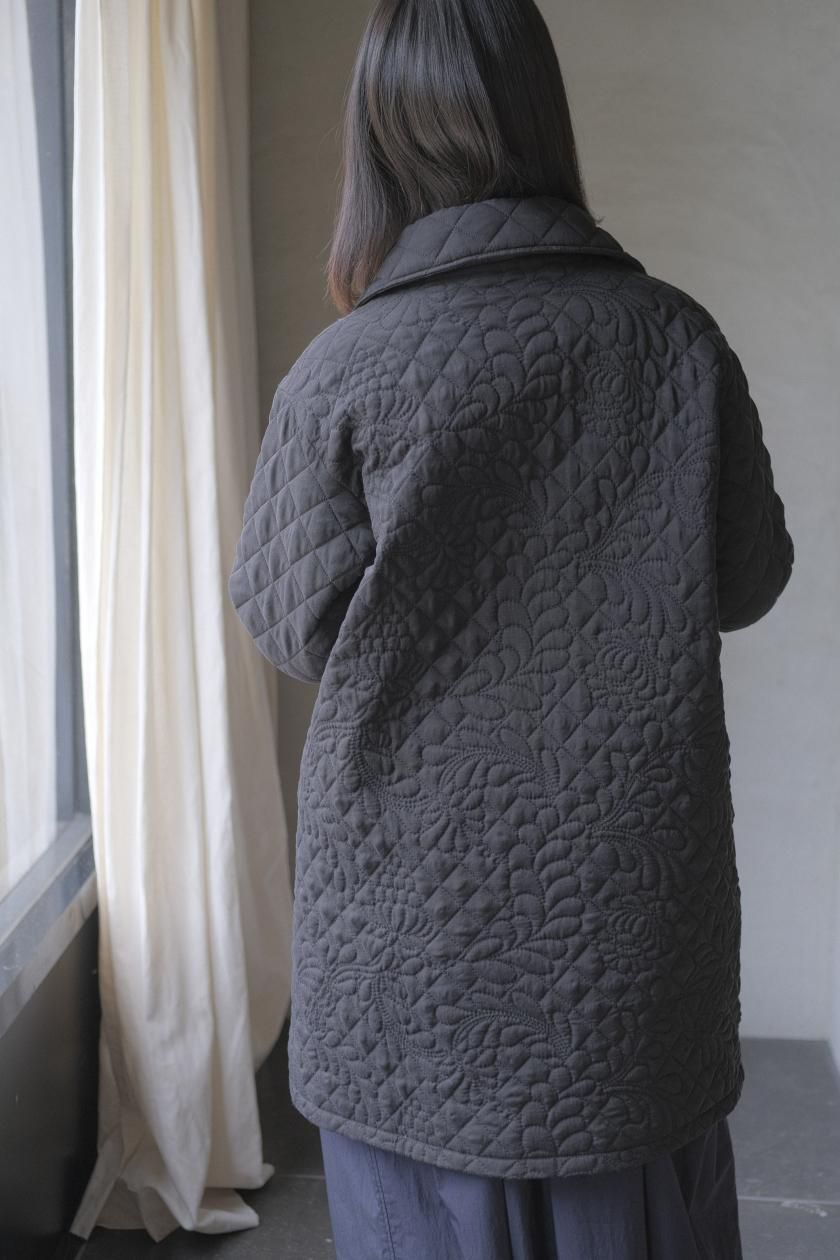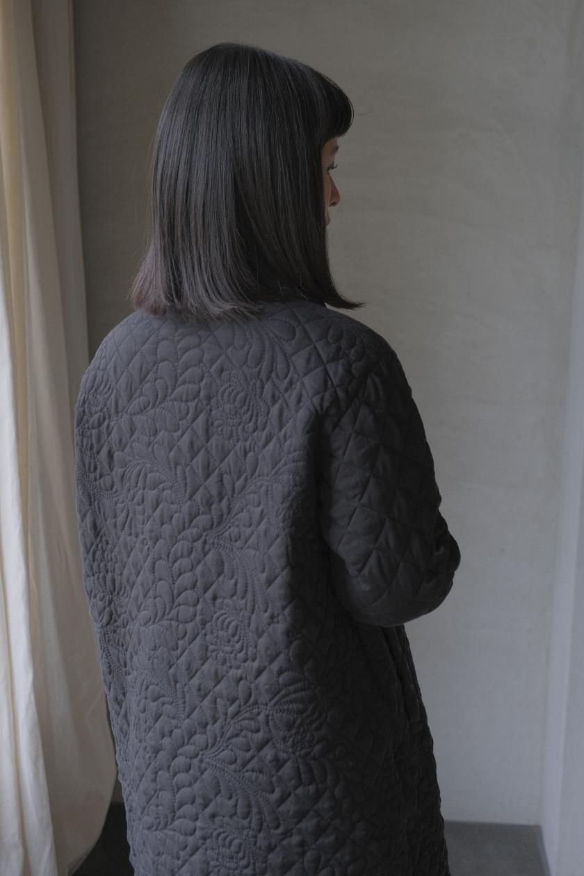 オリジナルの図案で、 キュプラの生地に中わたをサンドして刺繍を施したキルトコートです。