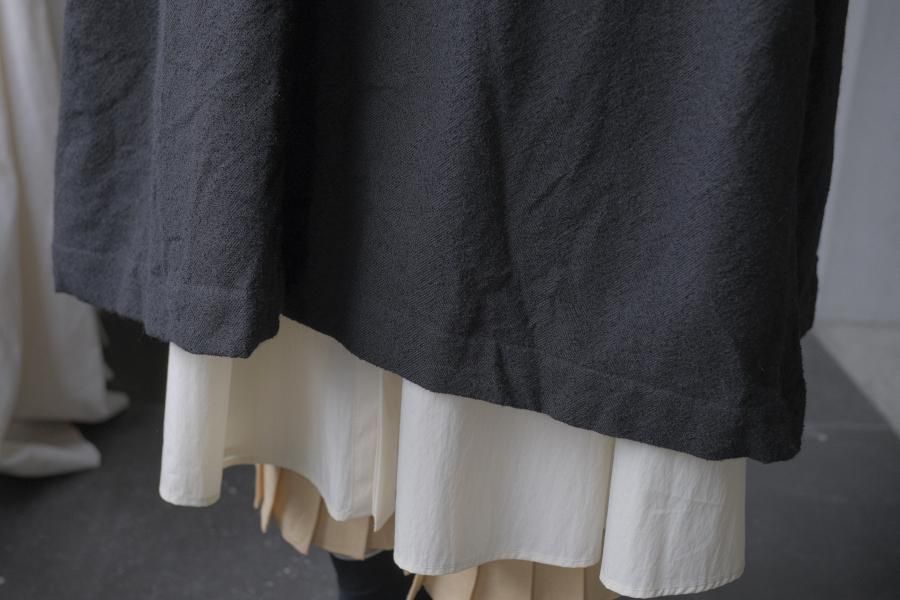 素材の風合い、あたたかみを活かすためシンプルなデザインのAラインシルエット。