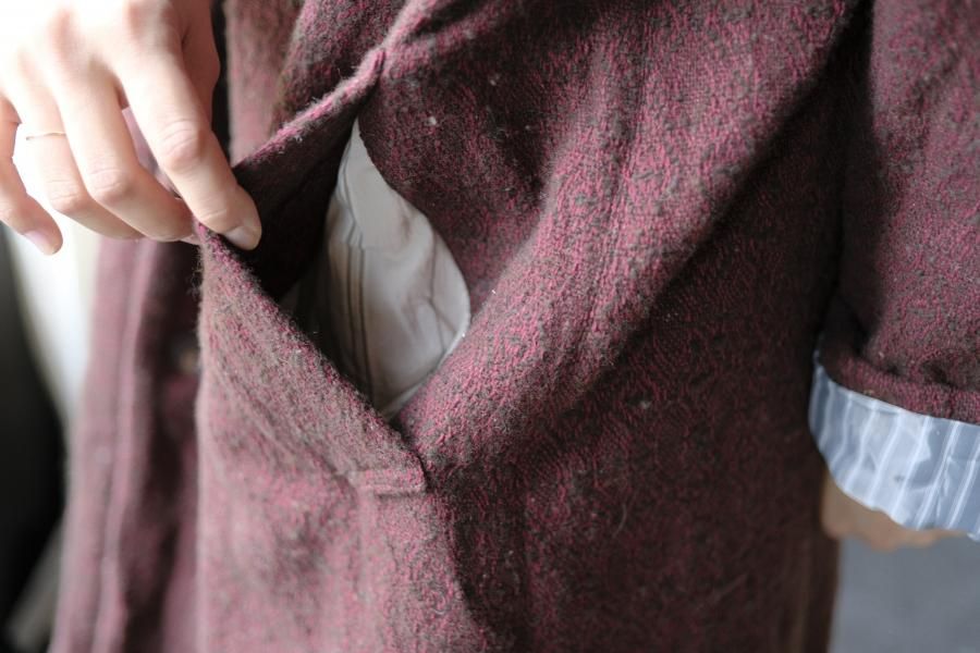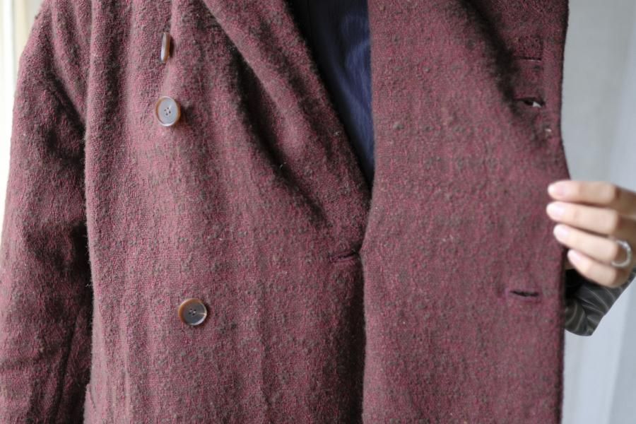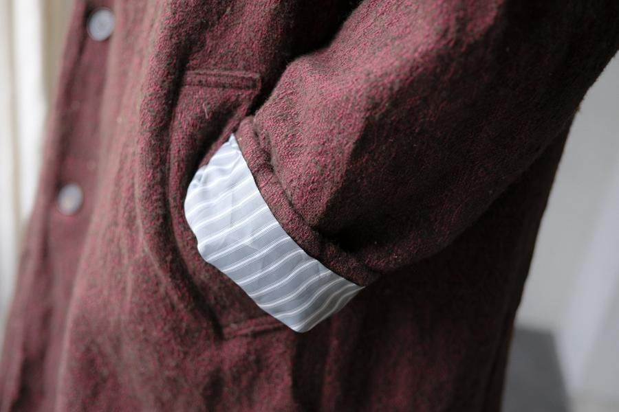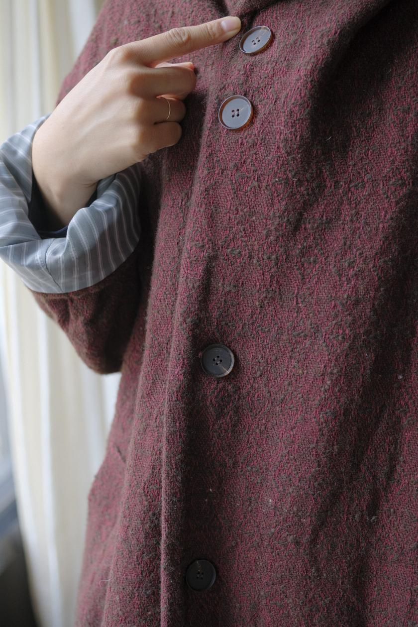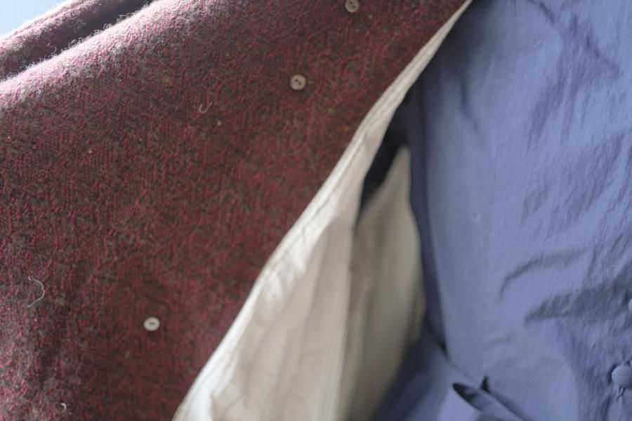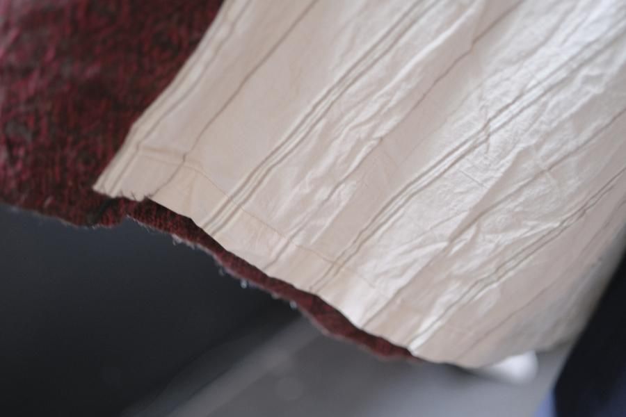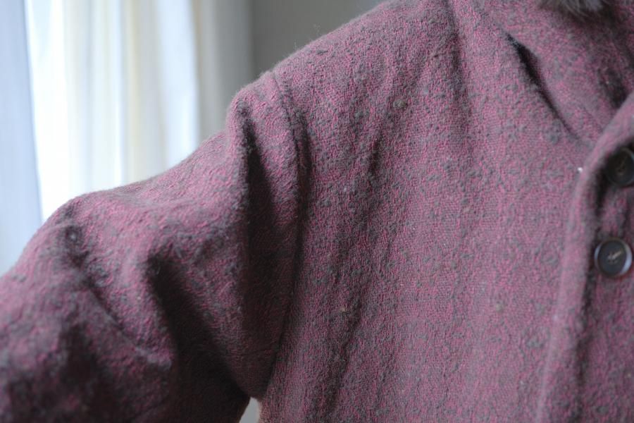 ヨコ糸の極太のナチュラルウールに番手を合わせる為、ヨコ糸にはノイルシルクを4本撚り合わせた糸を使用して製作した生地。