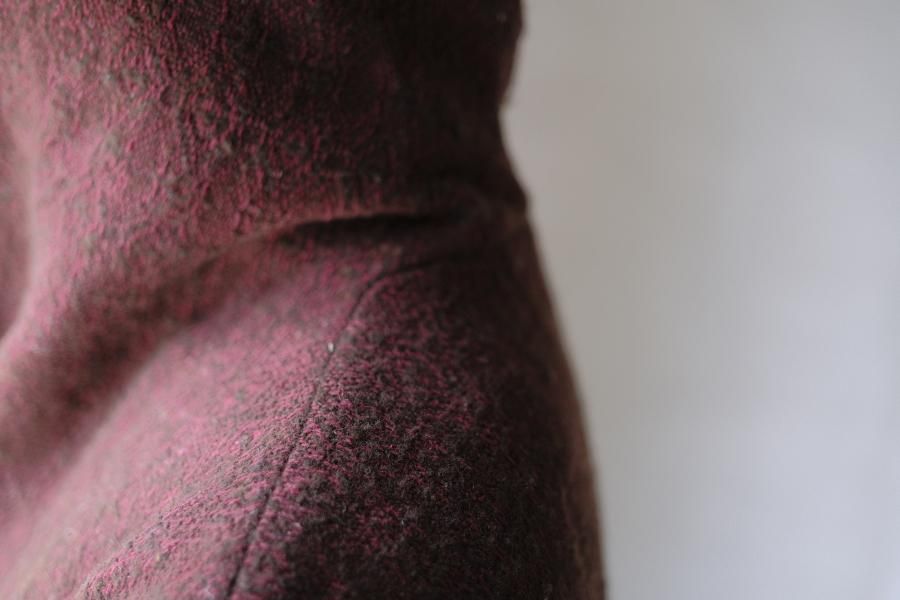 ナチュラルウール独自の膨らみとシルクのぬるっとした風合いと鈍い光沢が特徴。