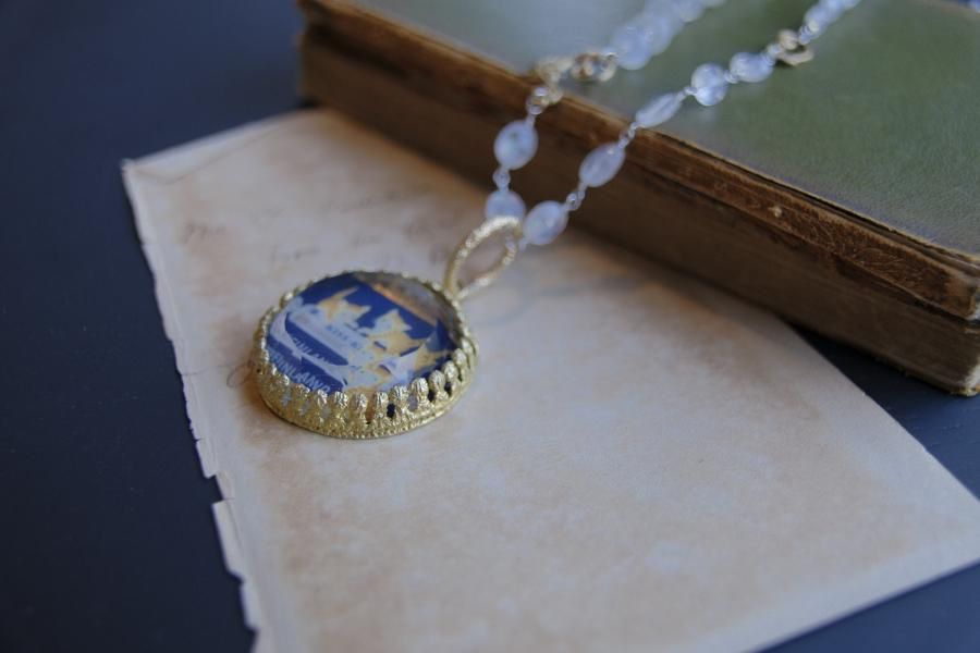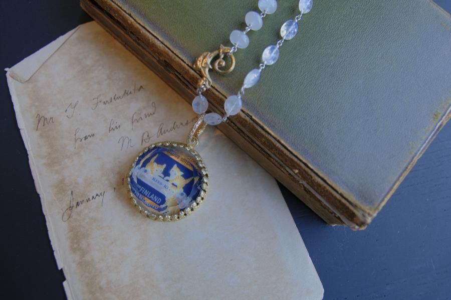 **ヴィンテージ切手を使用した、ネックレス**