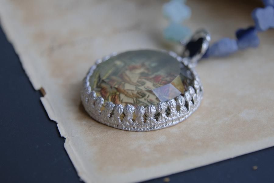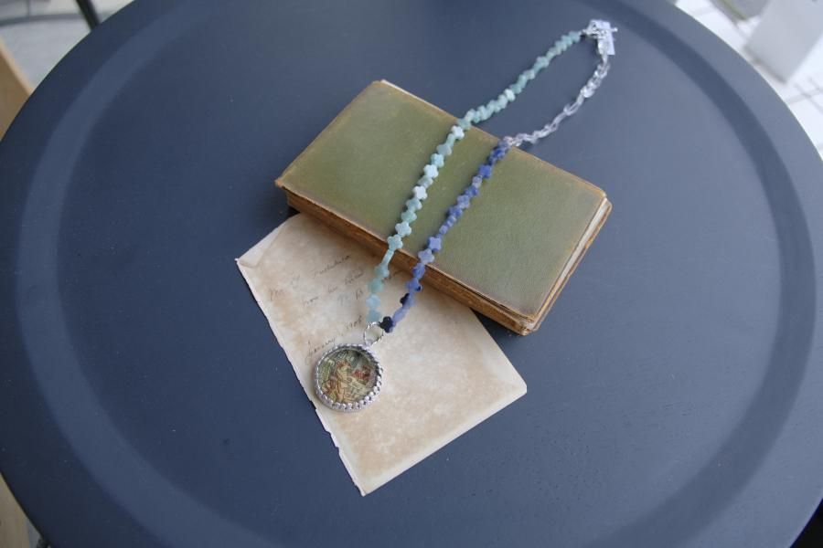 **ヴィンテージ切手を使用した、ネックレス**