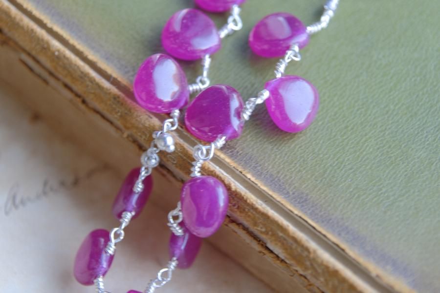 チェーンはパール、珊瑚、クォーツ(水晶)などの天然石を使用しており、