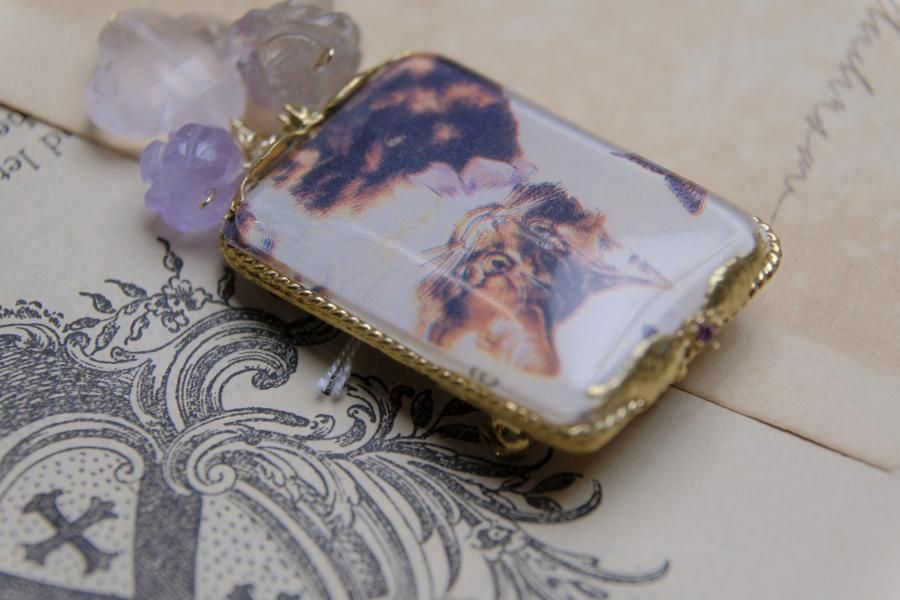 **ヴィンテージ切手を使用した、ネックレス**