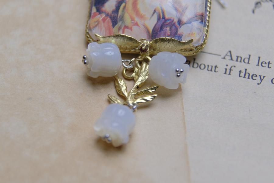 チェーンはパール、珊瑚、クォーツ(水晶)などの天然石を使用しており、
