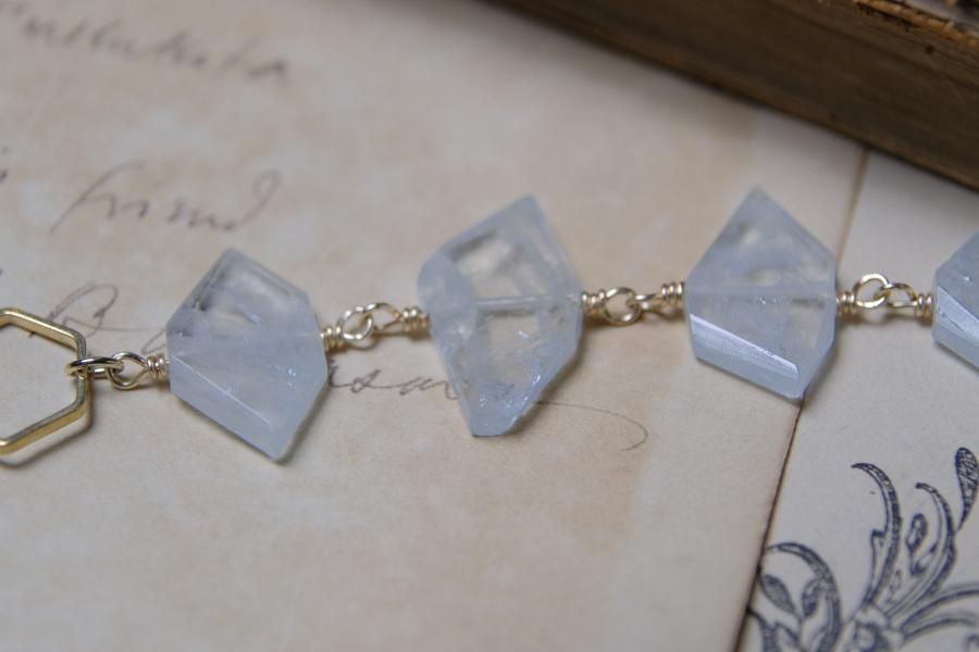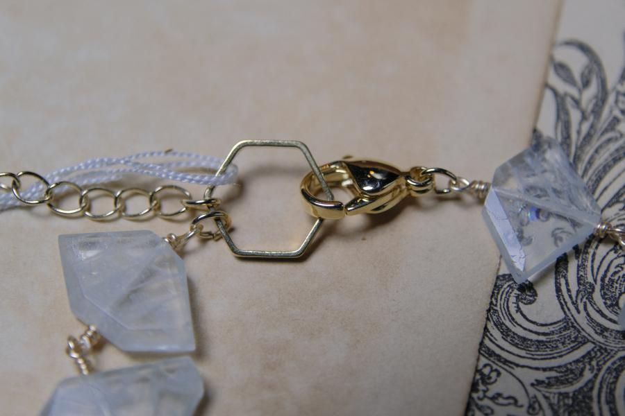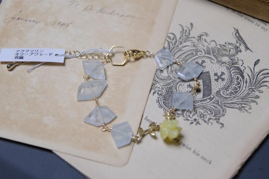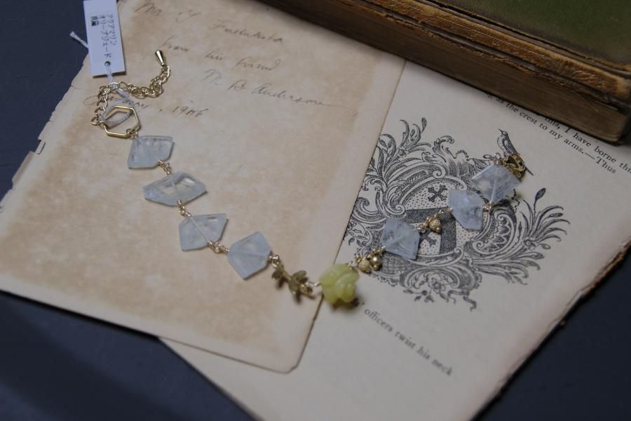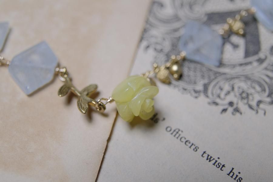 チェーンはパール、珊瑚、クォーツ(水晶)などの天然石を使用しており、