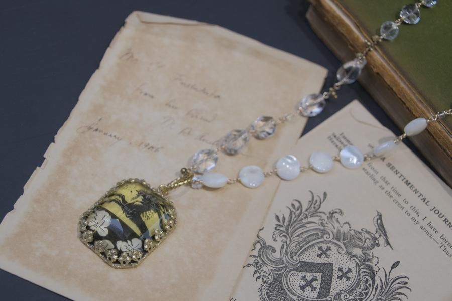 未使用で状態の良い切手がペンダントトップになった一点ものです。