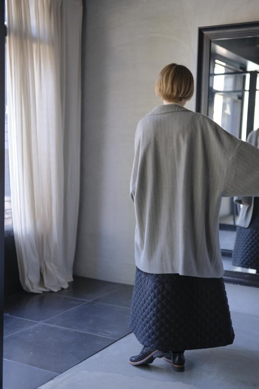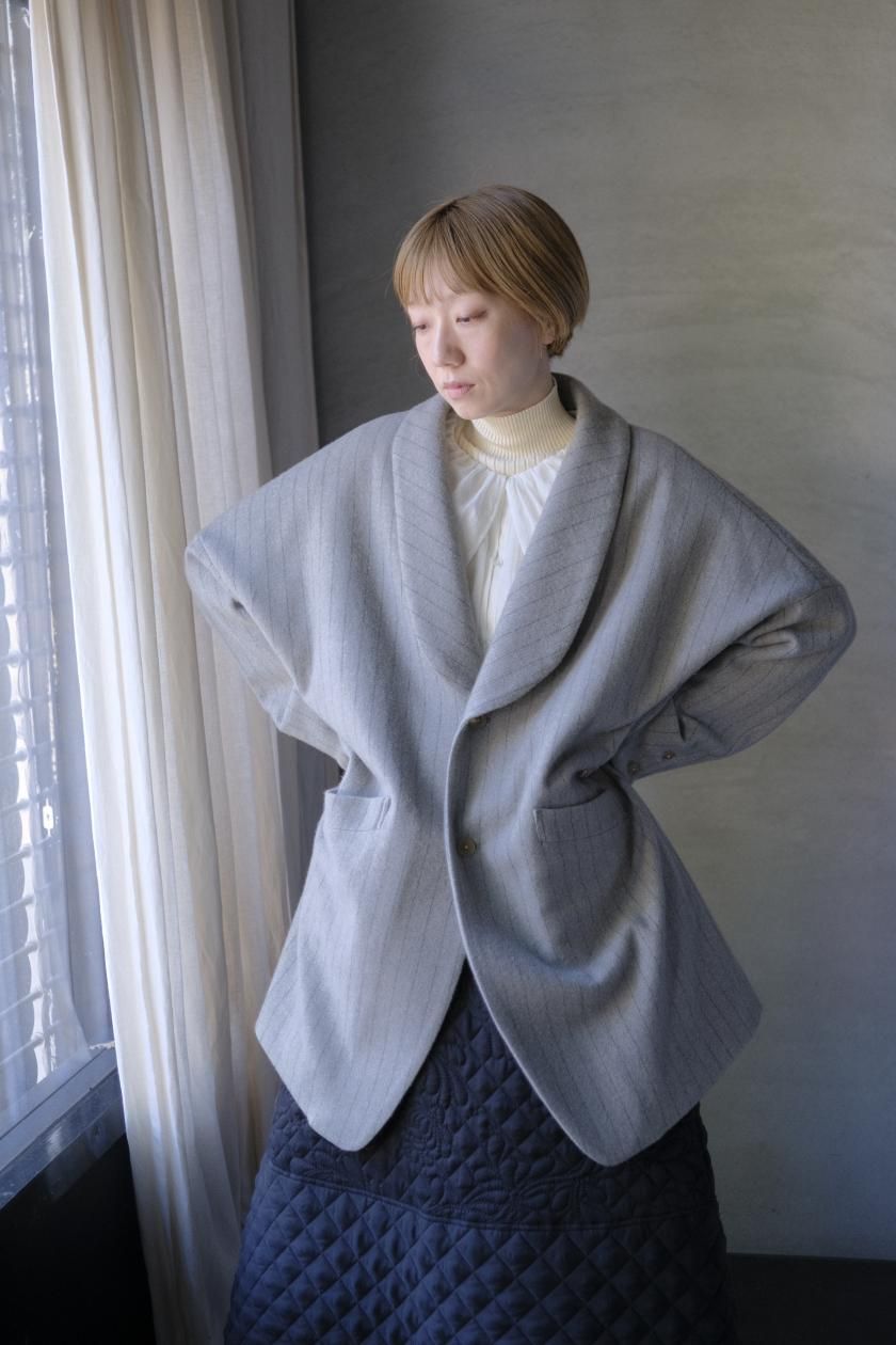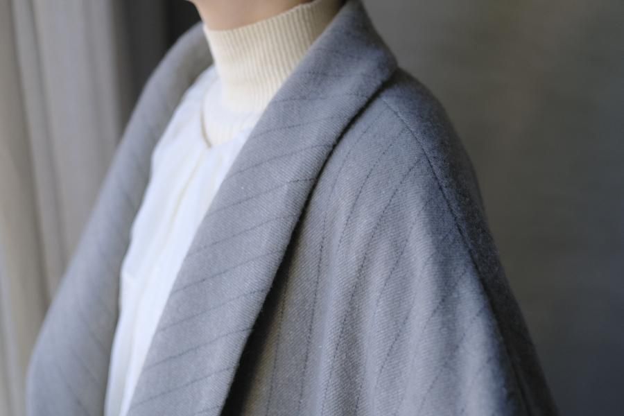 ショールカラーのロングジャケット。オーバーサイズのデザインです。コクーンシルエットでこなれた印象に。