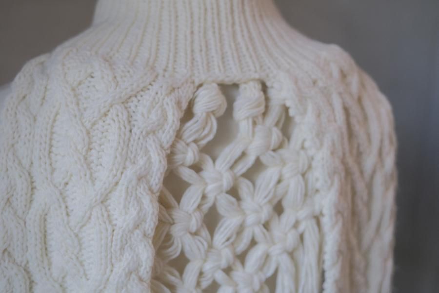 今シーズンはマクラメやタッセルに加え、毎シーズン共通する複雑な編地からコレクションを展開した。