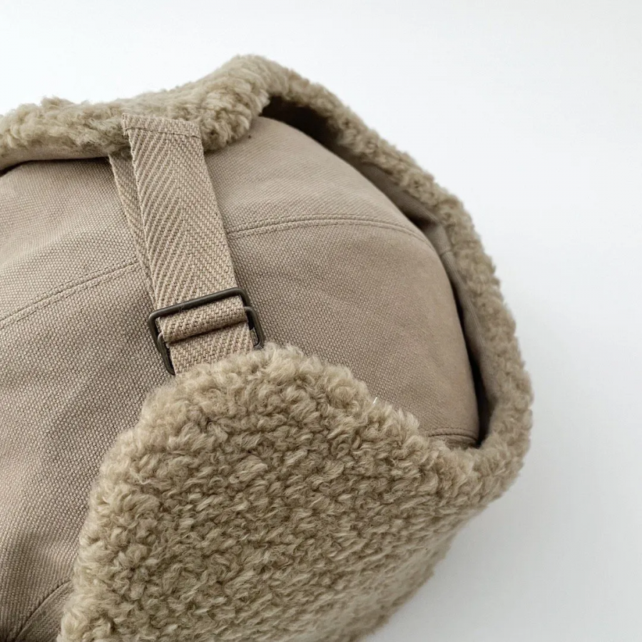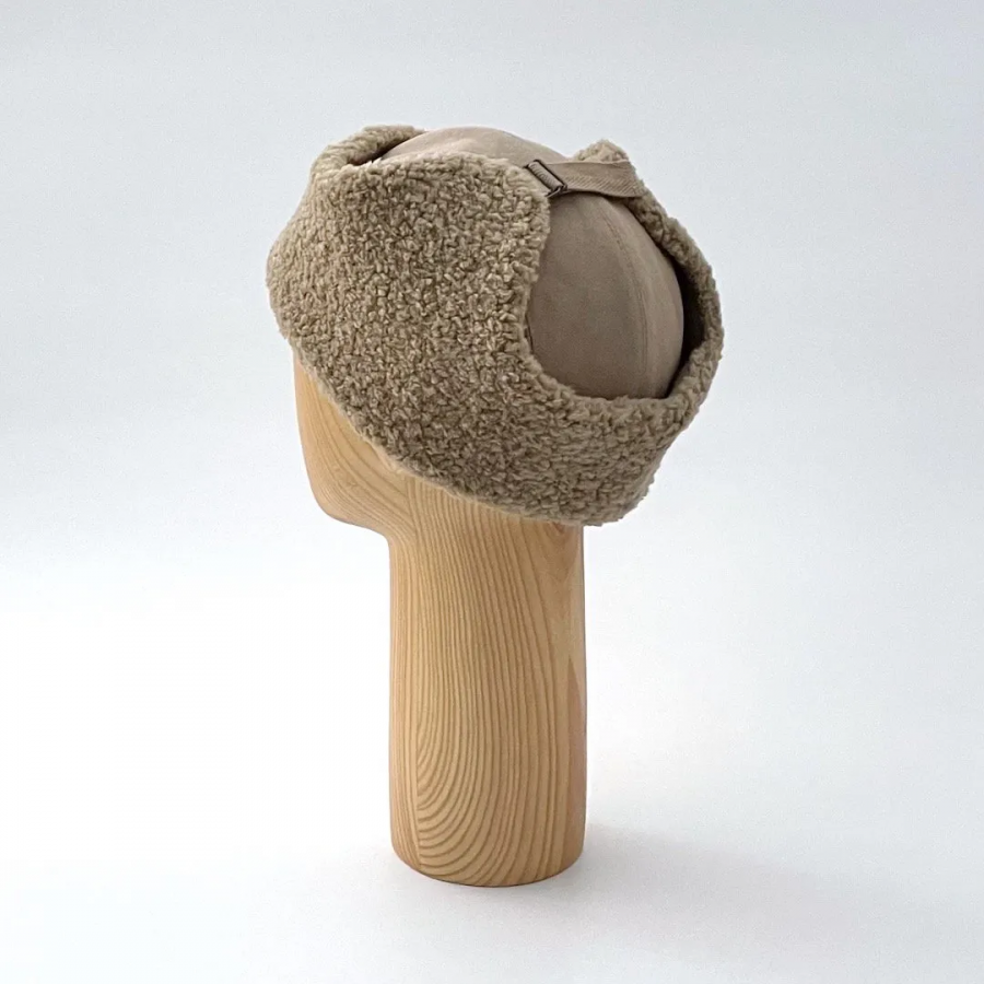 Sashikiオリジナルのトラッパーキャップです。通称、飛行帽、フライトキャップ、トラッパー帽とも言われる耳当てつきの帽子ですが、こちらの商品はツバのないタイプになります。その為、少しニットキャップのような雰囲気もあります。表地はキャンバス地、裏はフリースを使用してシープボアと組み合わせました。トップのテープなども全体的にメンズっぽいイメージでデザインしていますので、男女問わず被っていただけます。寒い日は耳まで入れるのもお勧めですので通常より少し大きめでも良いかもしれません。すっぽりと被って暖かくお過ごしください