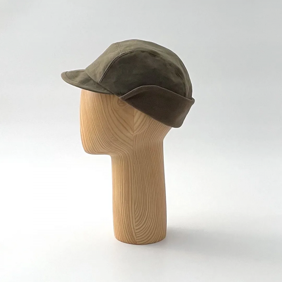 厚手のキャンパス地で製作した耳あて付きのキャップです。トップは5枚パネルのジェットキャップ型で、耳当てをサッと上げたり下げたりできるデザインになっています。耳に当たる部分と裏にはフリースを使用していますので暖かくお過ごし頂けます。表のしっかりとしたコシのある生地は日本初の本格アメリカンダック生地メーカー「ALBERTON」。1870年代当時の織企画を可能な限り現存する為、当時と同じ技術を駆使して織り上げられています。ユニセックスなデザインとなりますので男女問わず被って頂けます。